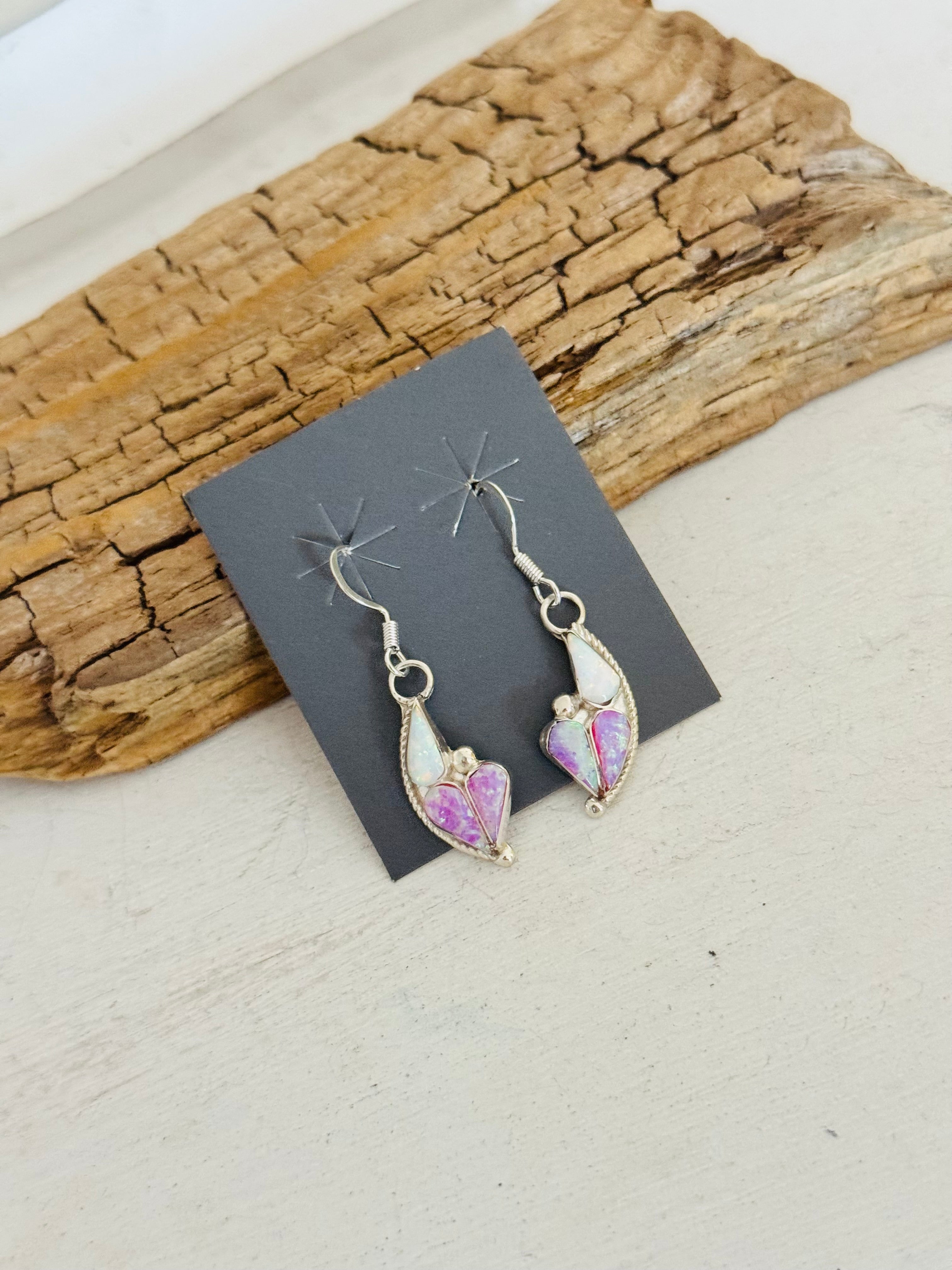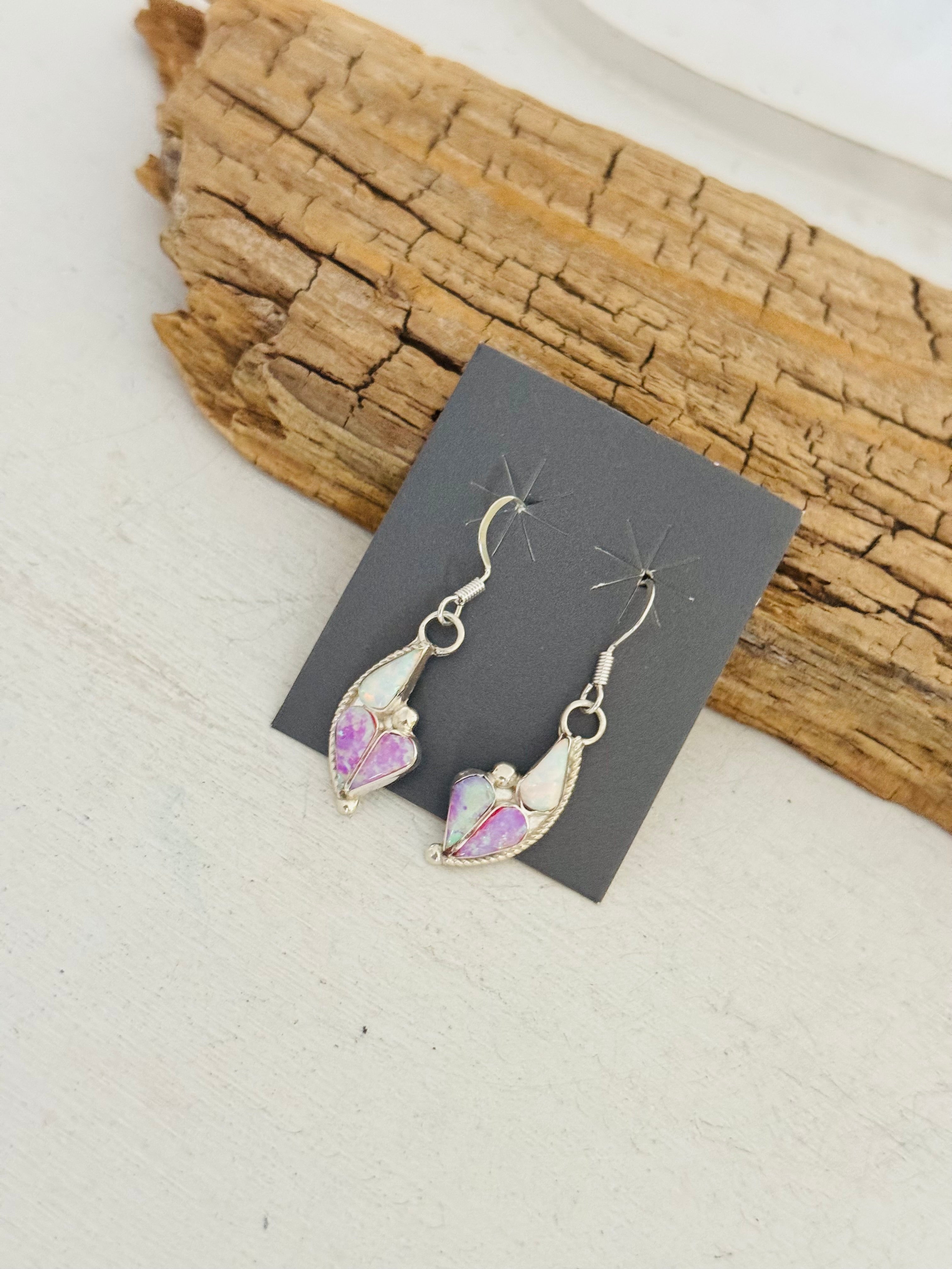 Navajo Made Opal (Man Made) & Sterling Silver Dangle Earrings