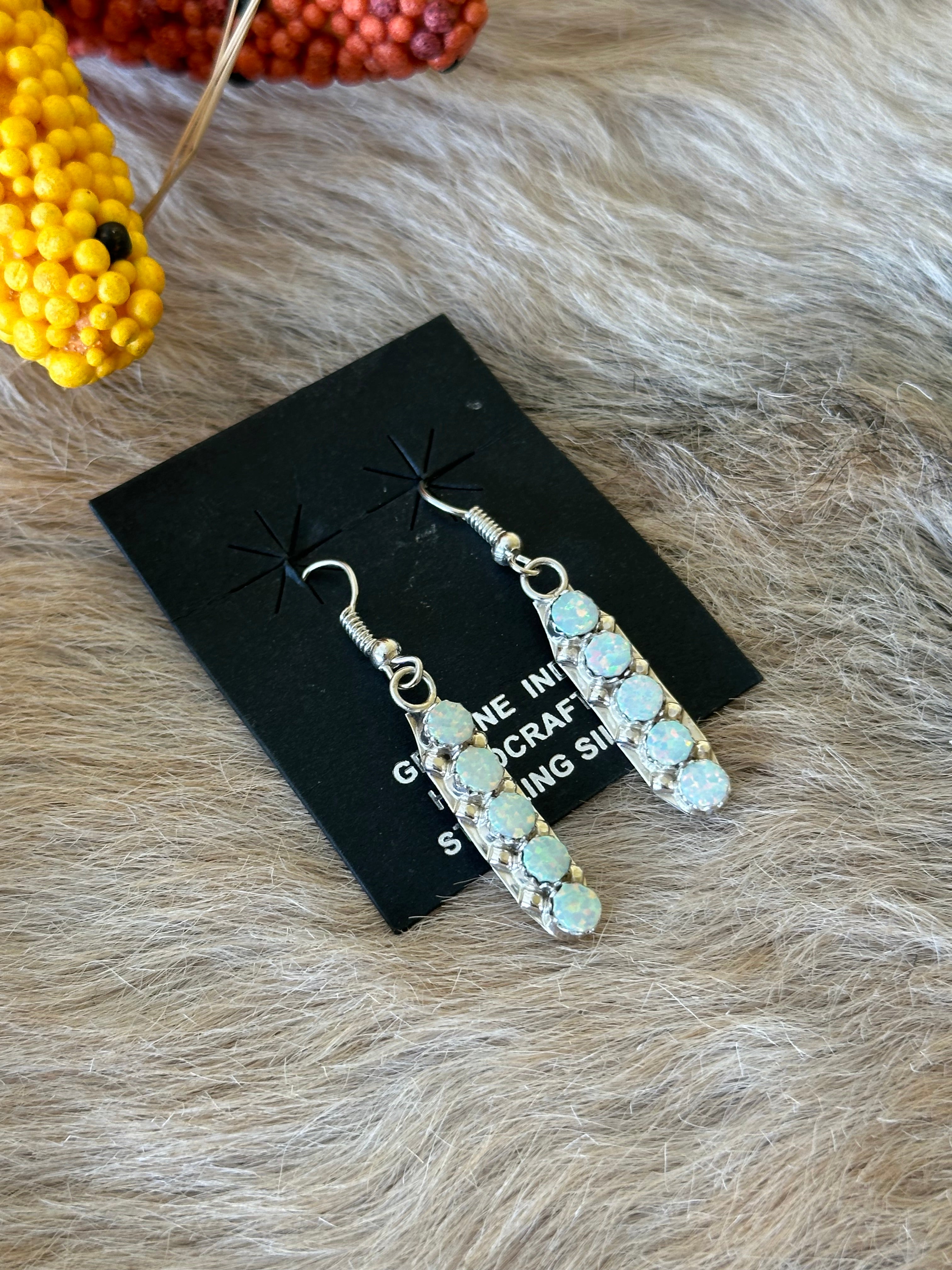 Navajo Made Opal (Man Made) & Sterling Silver Dangle Earrings