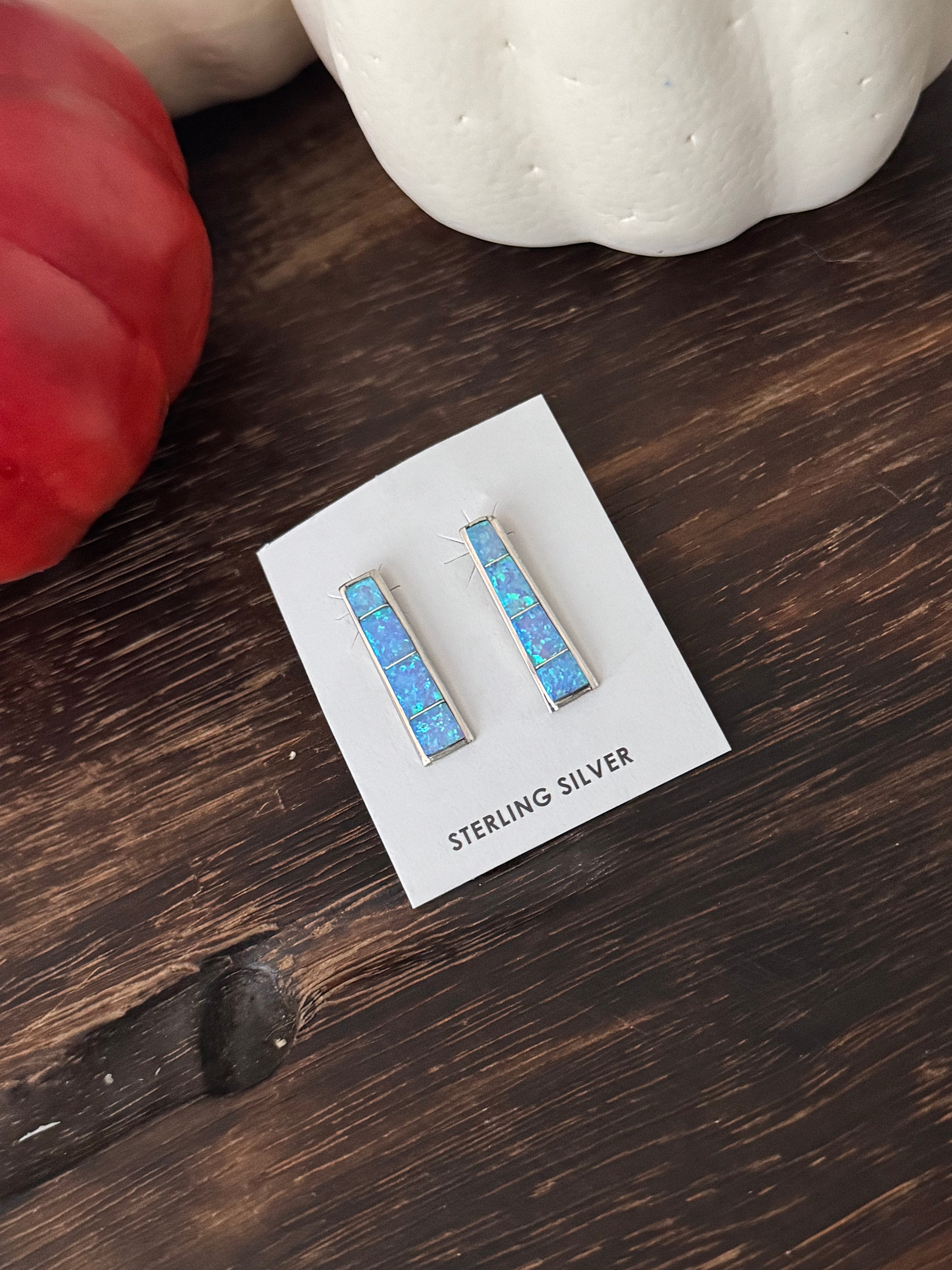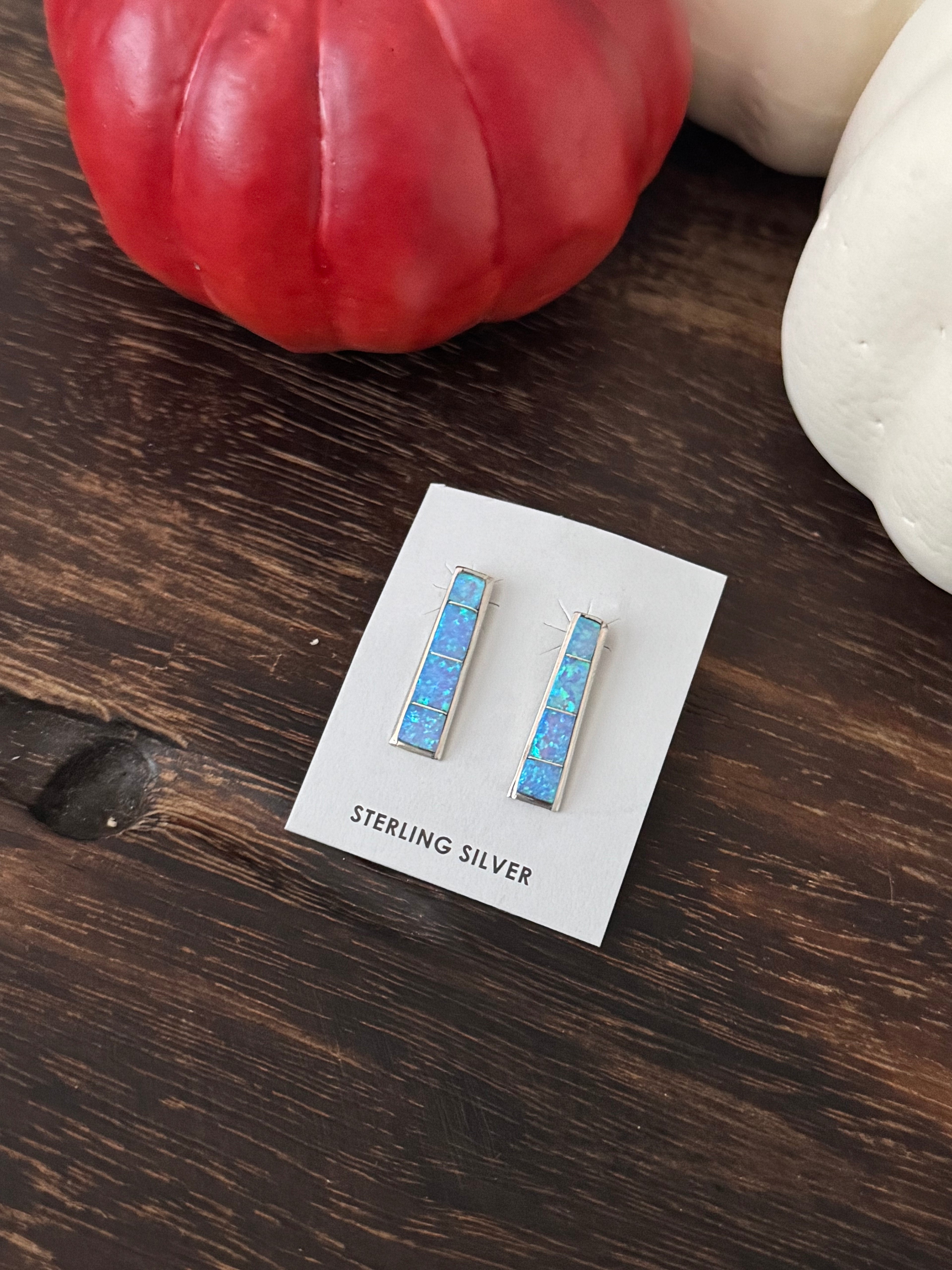 Janet Jake Opal (Man Made) & Sterling Silver Post Dangle Earrings
