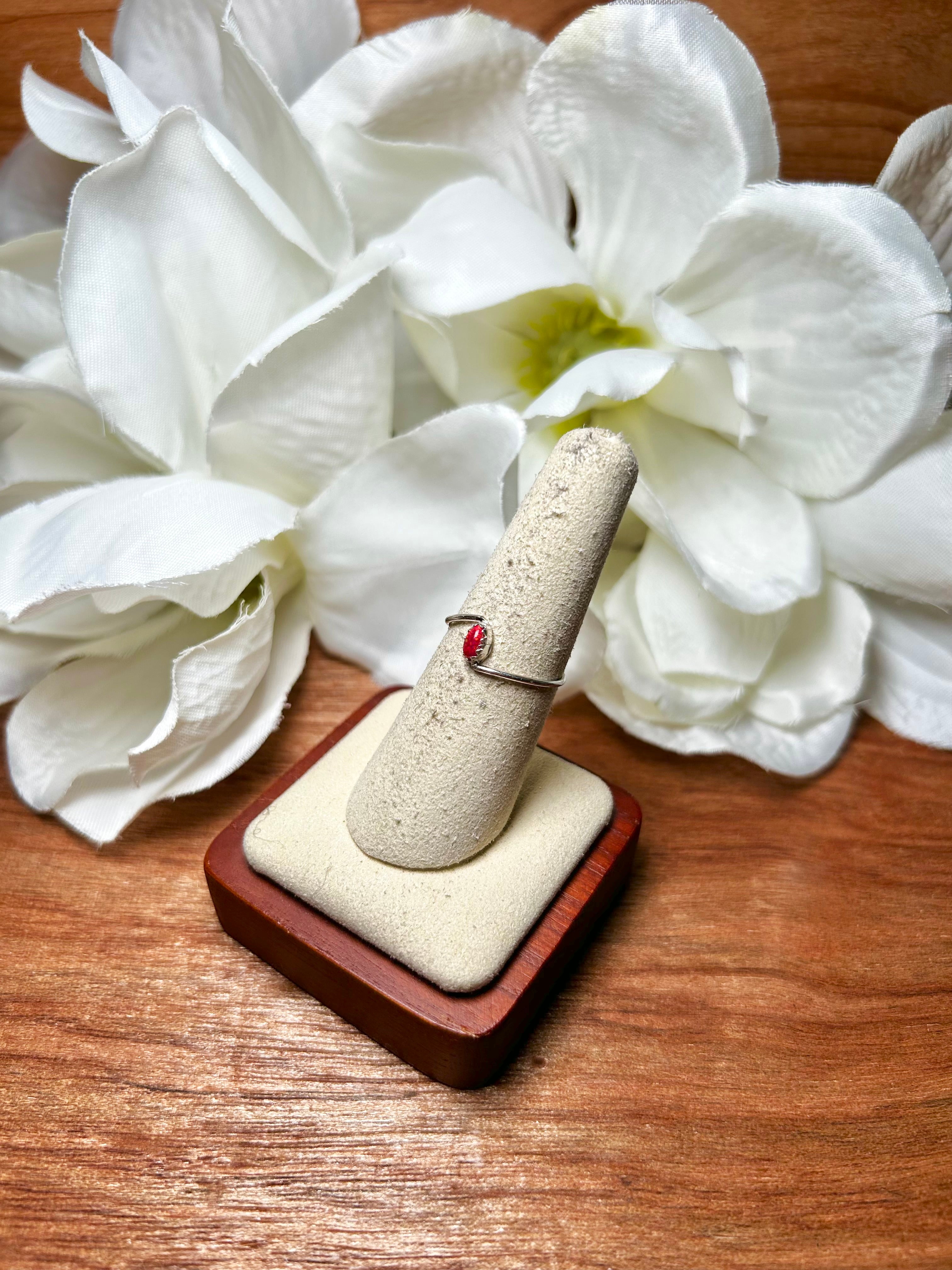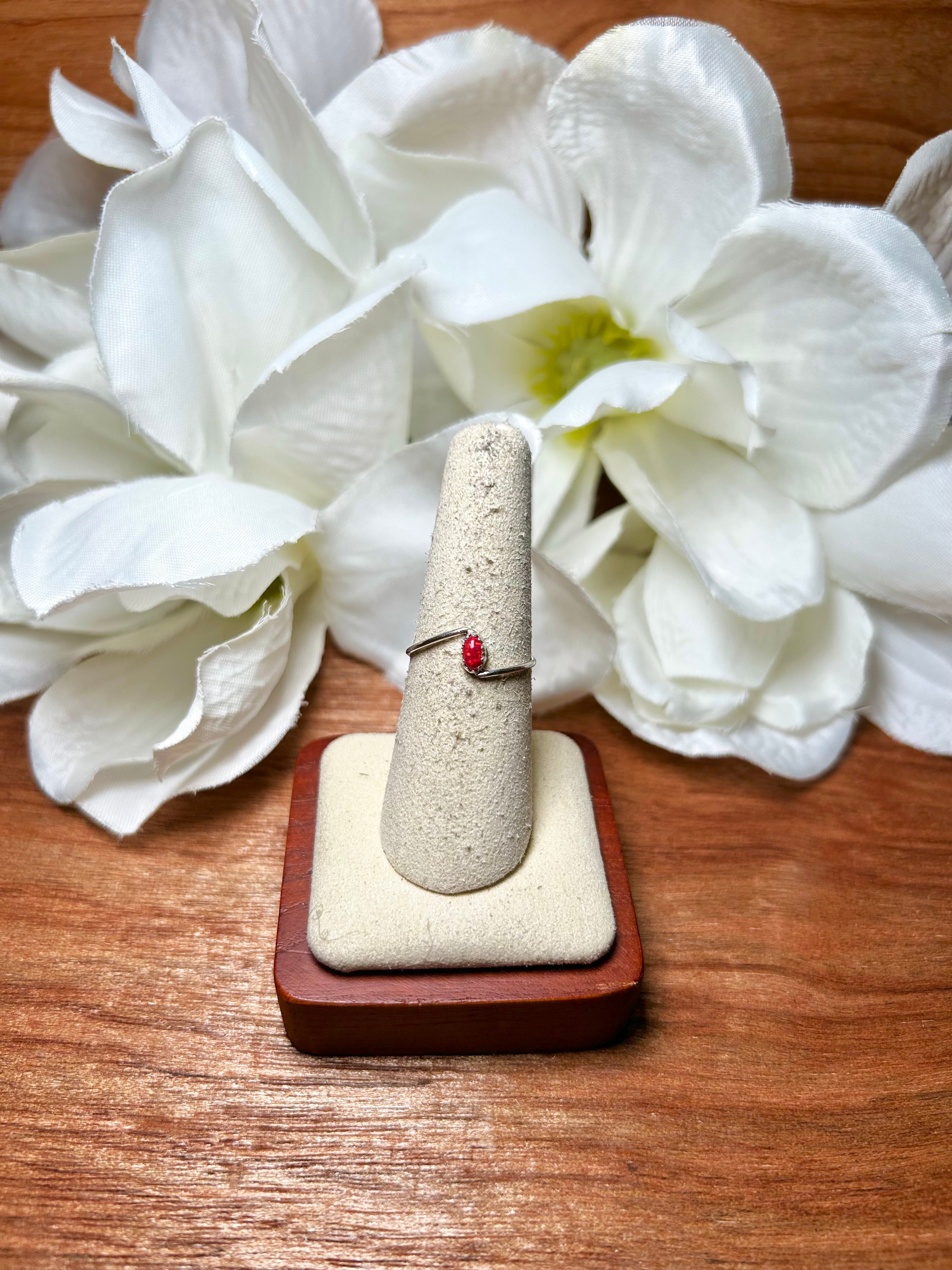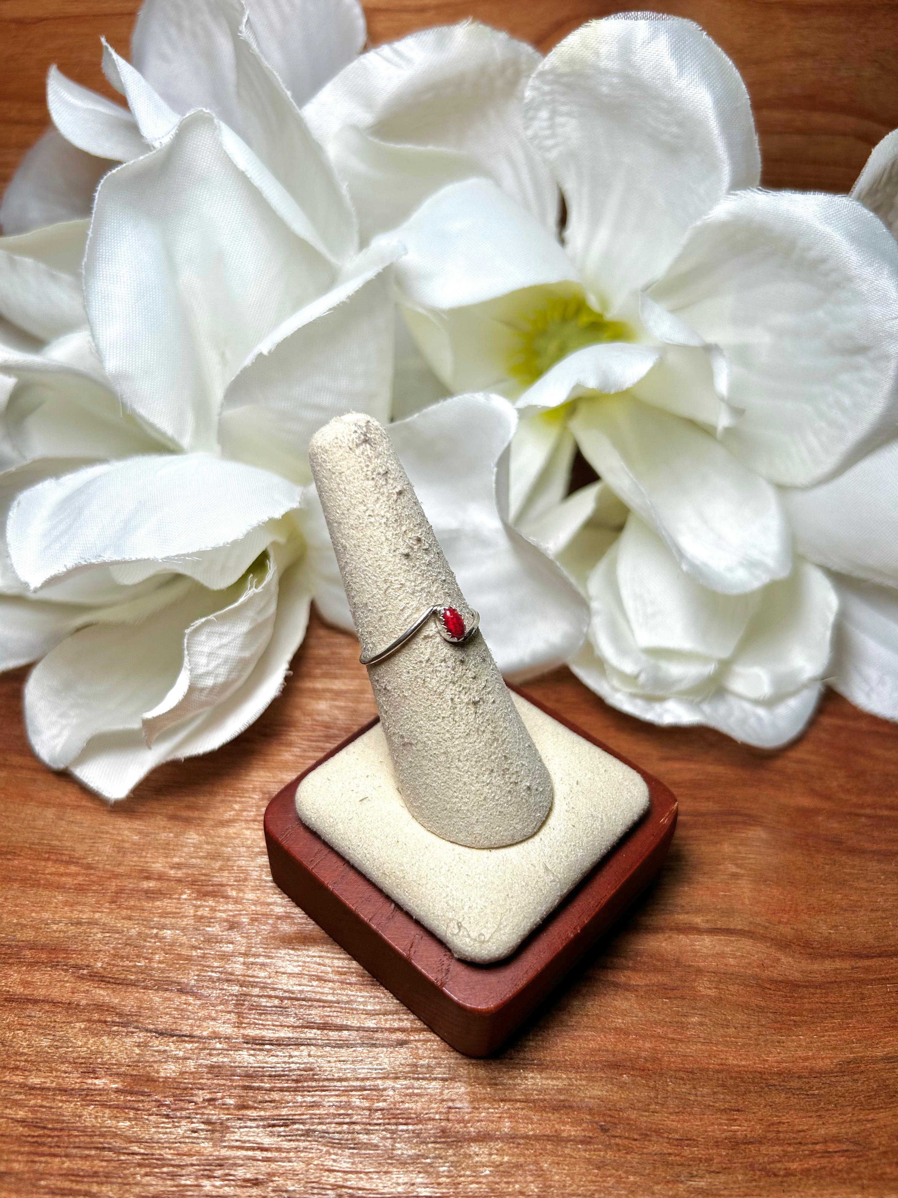Navajo Man- Made Opal & Sterling Silver Cluster Ring. It measures 3/8 of an inch long and it measures 1/8 of an inch wide. Signed by the artist and stamped sterling silver.