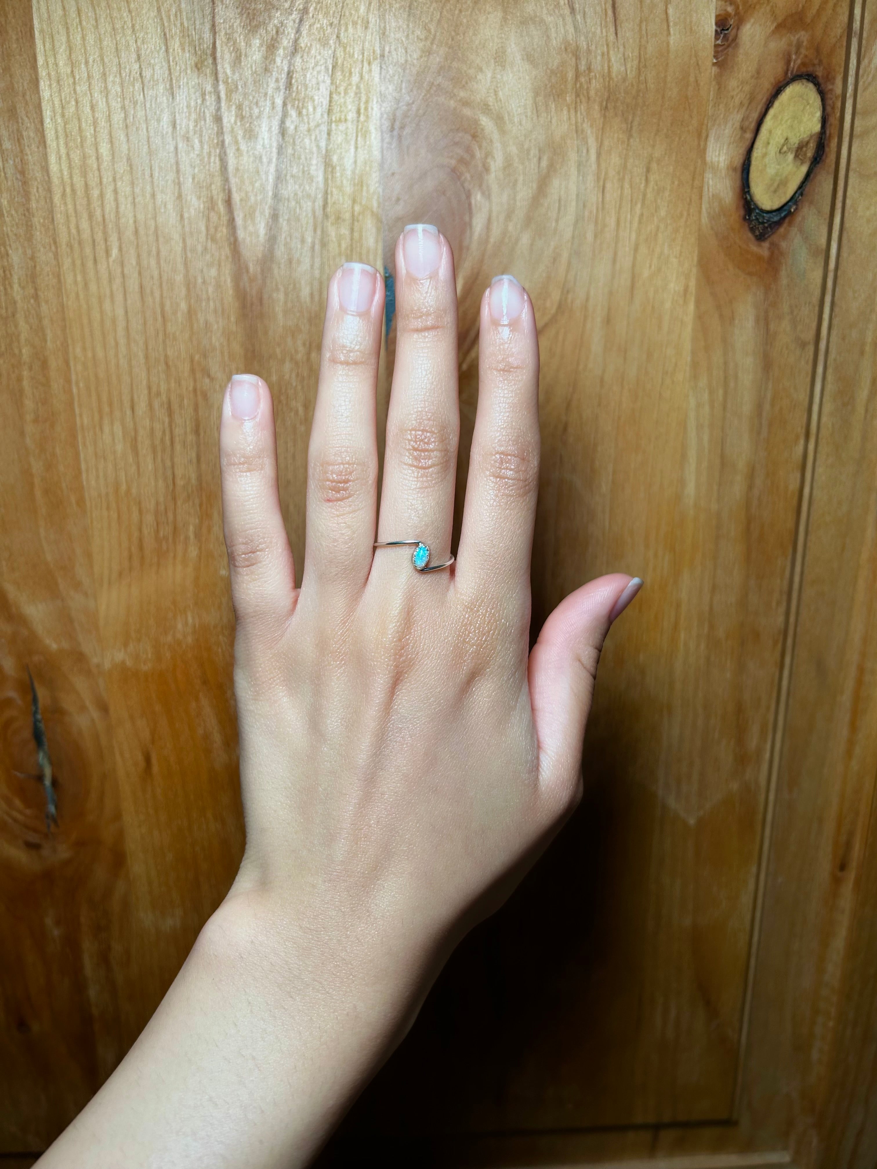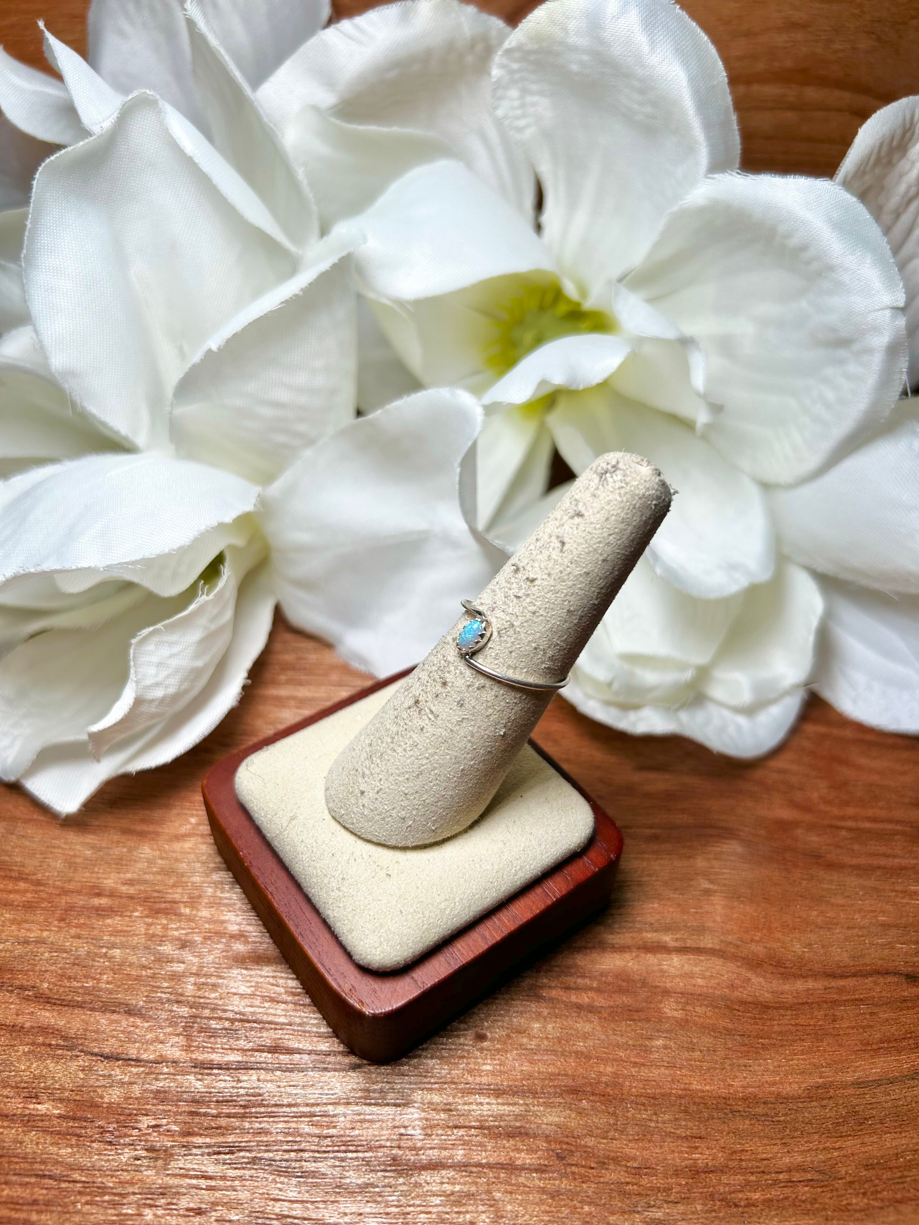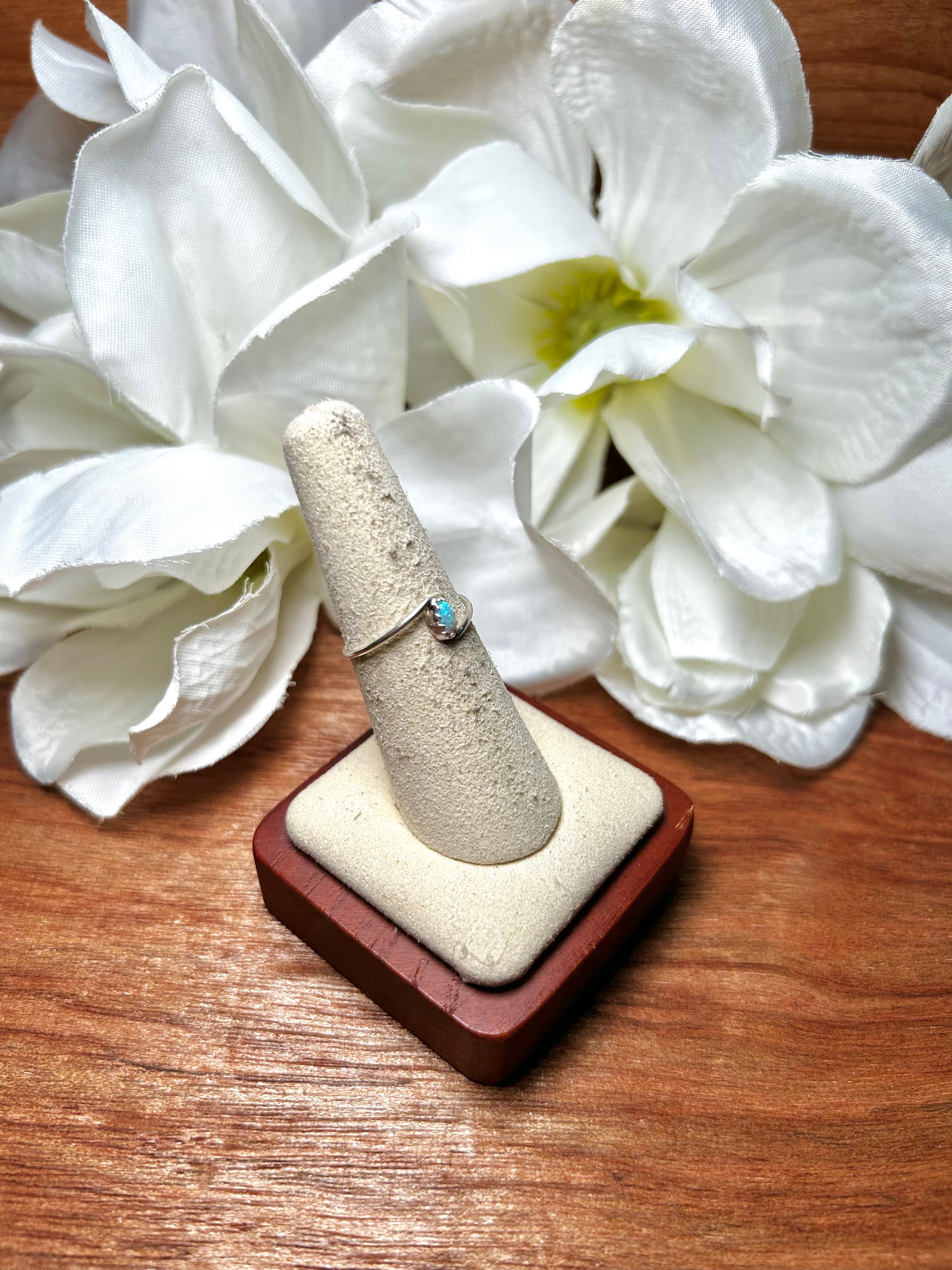 Navajo Man- Made Opal & Sterling Silver Cluster Ring Size 7. It measures 3/8 of an inch long and it measures 1/8 of an inch wide. Signed by the artist and stamped sterling silver.