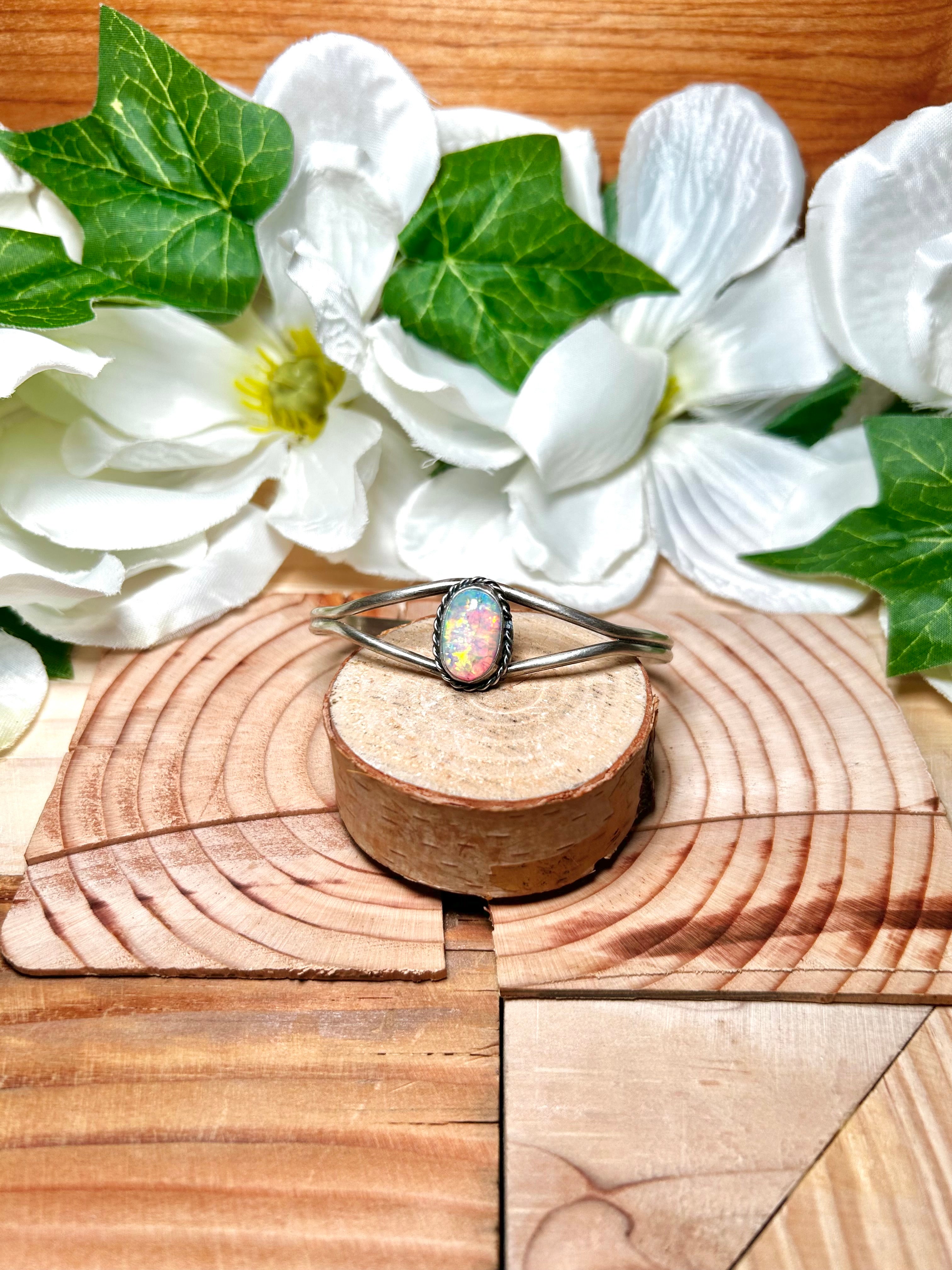 Navajo Made Opal & Sterling Silver Cuff Bracelet