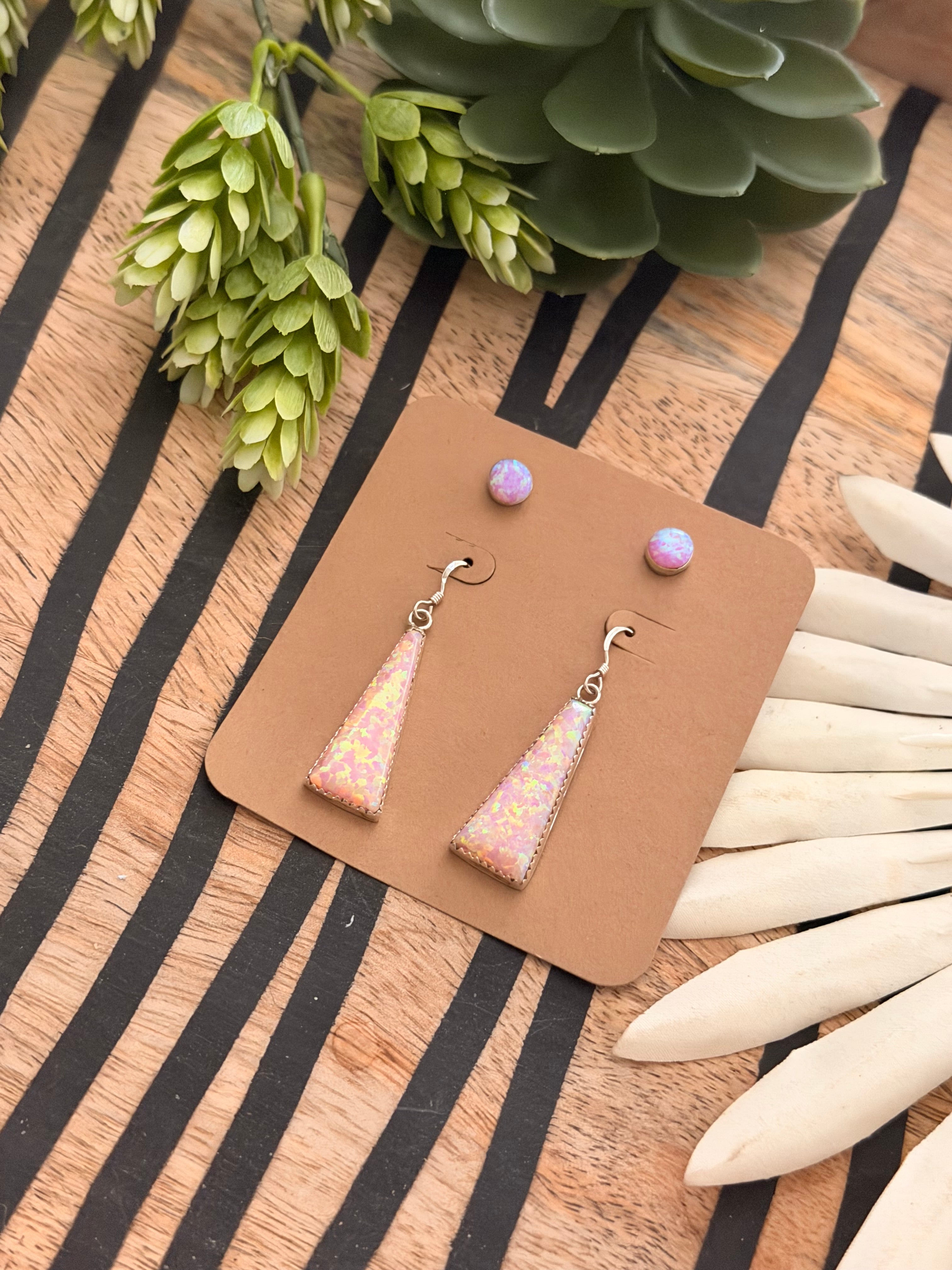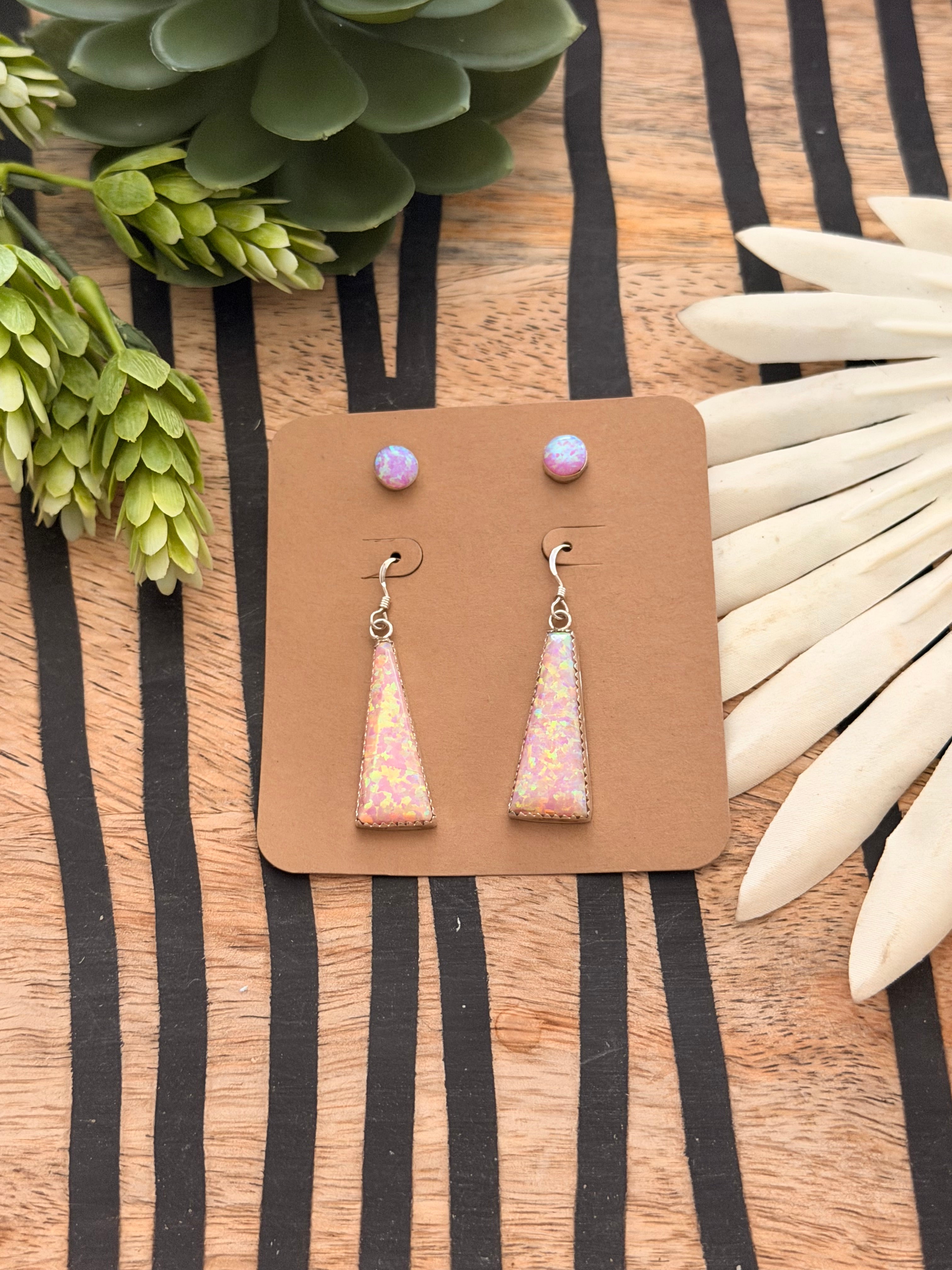 Navajo Made Opal & Sterling Silver Dangle and Stud Earring Set