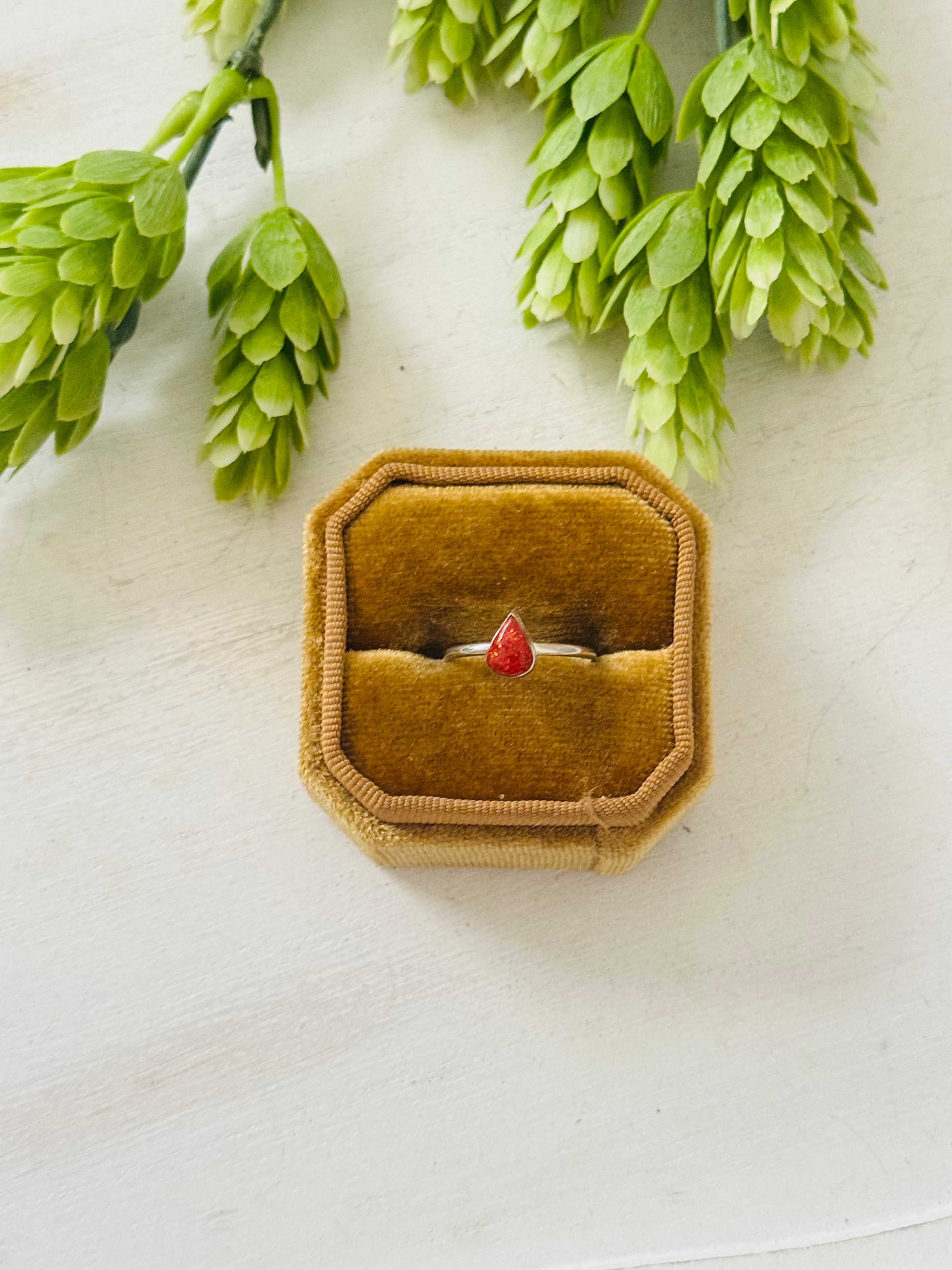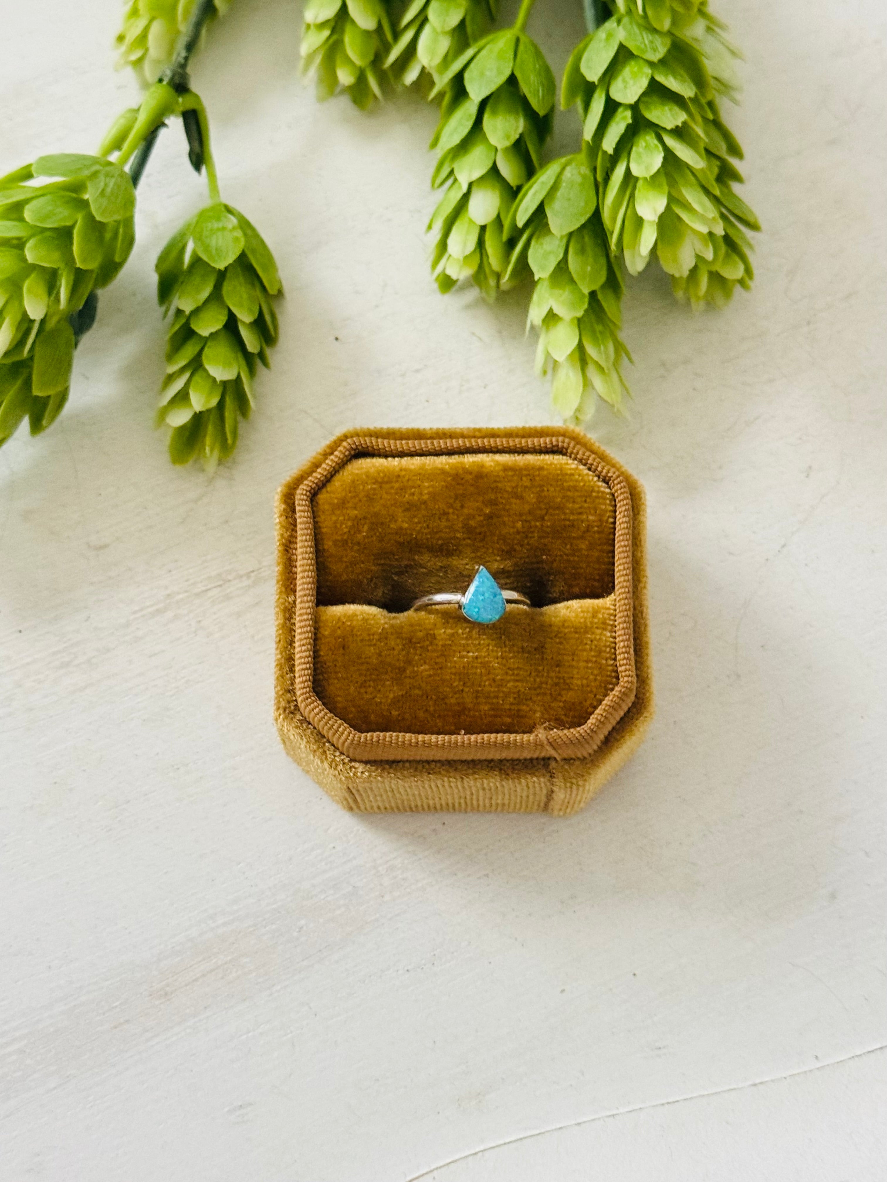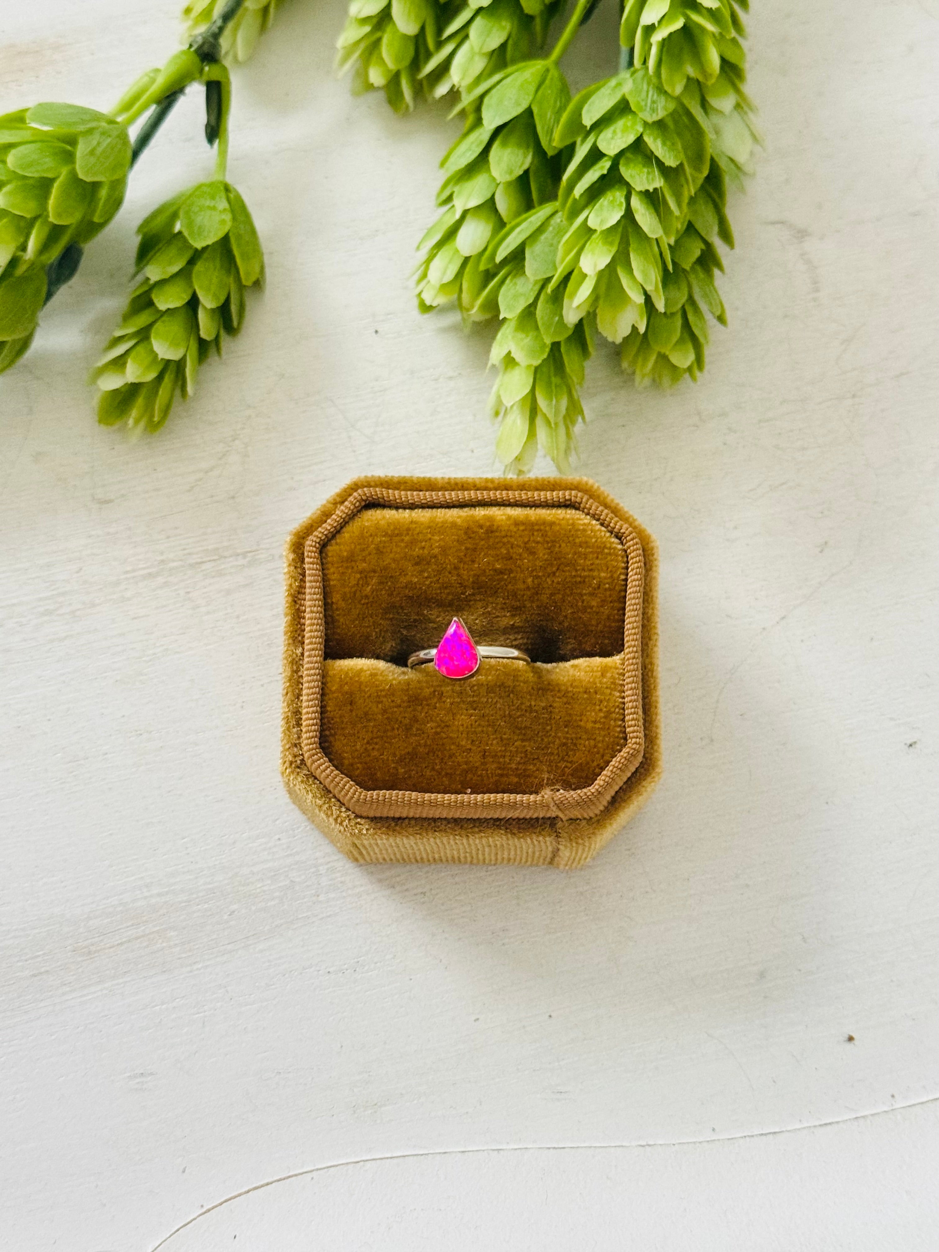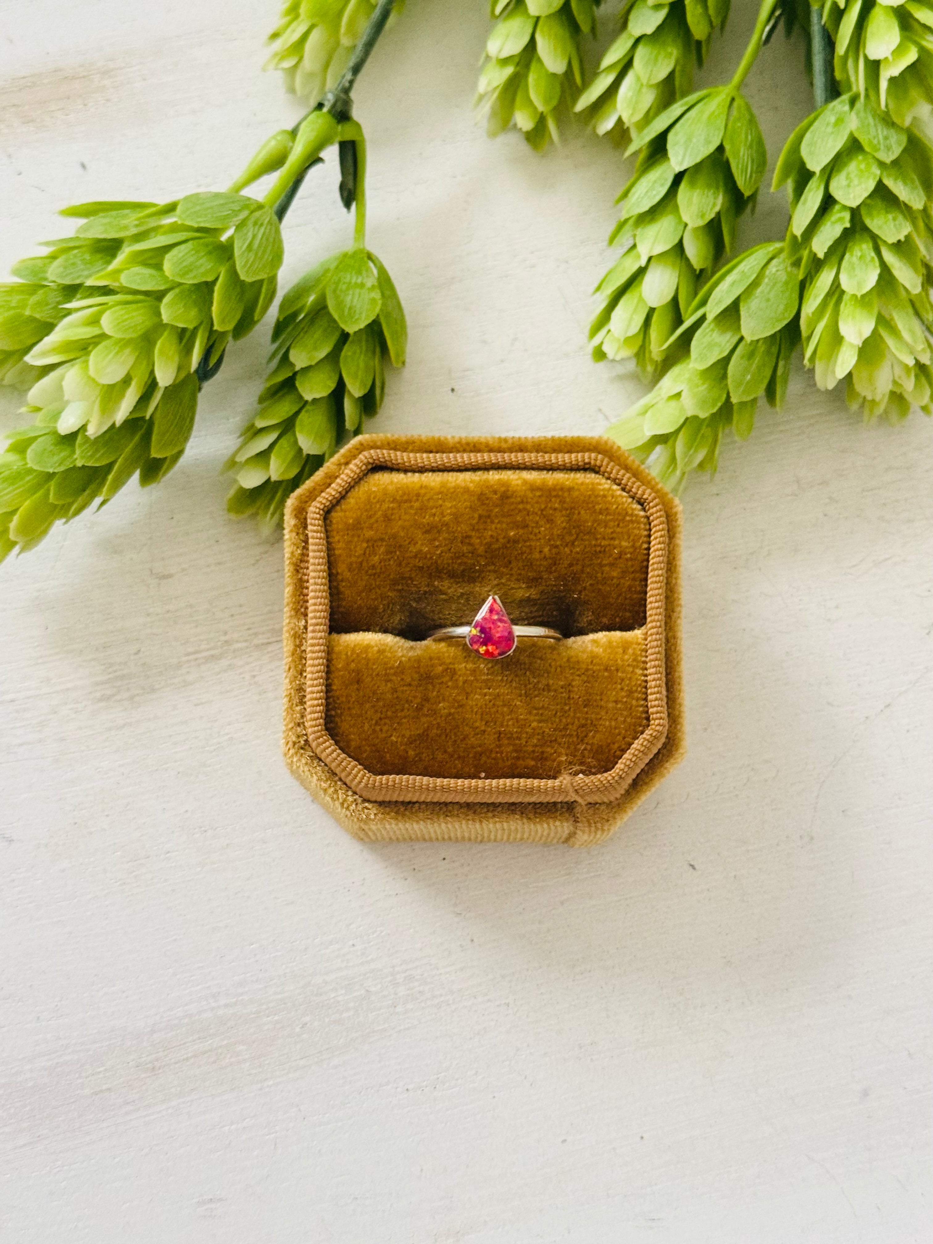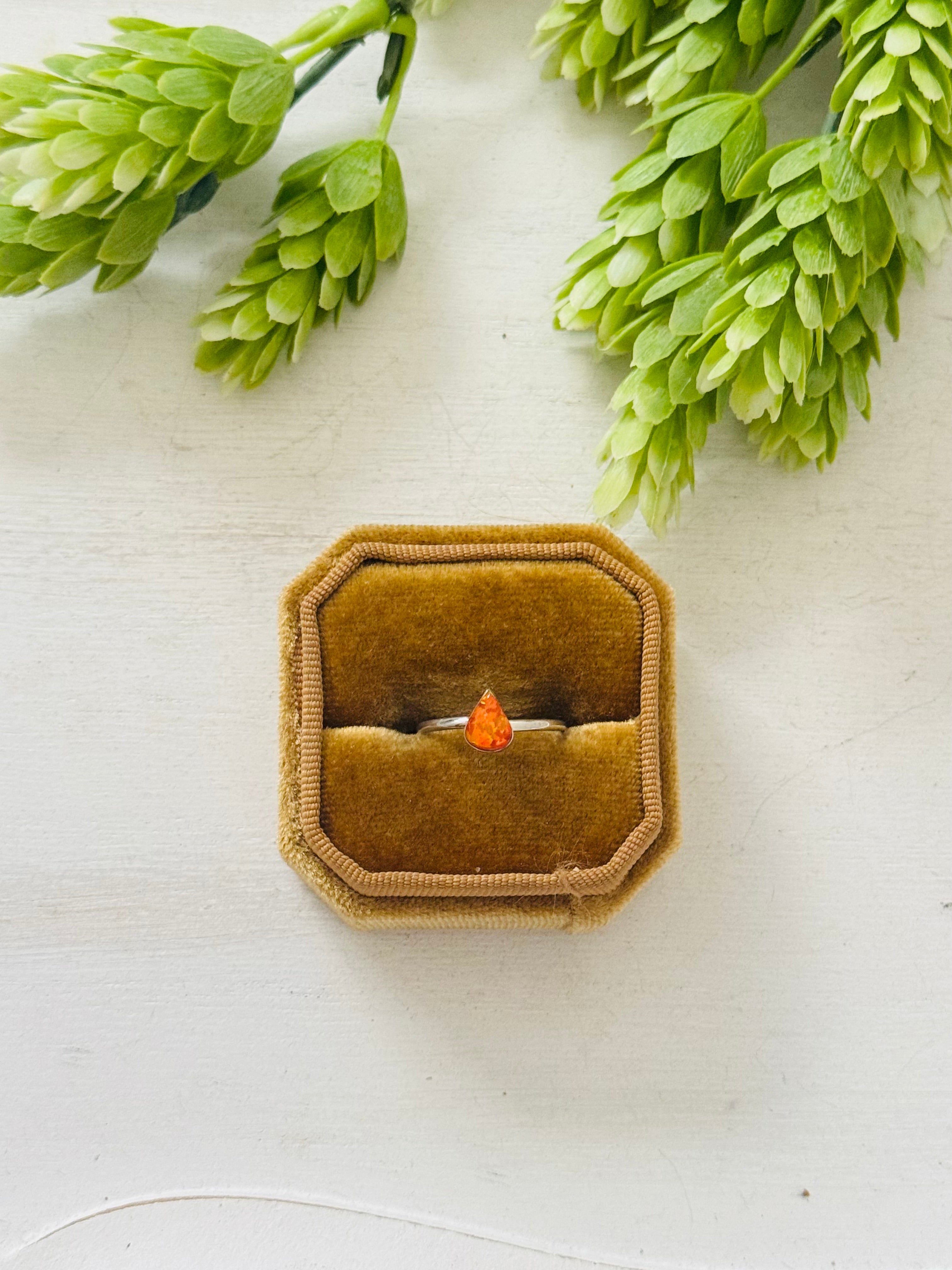 Navajo Made Opal & Sterling Silver Ring. It measures a little over 1/4 of an inch long and 1/8 of an inch wide. Signed by the artist and stamped sterling silver.