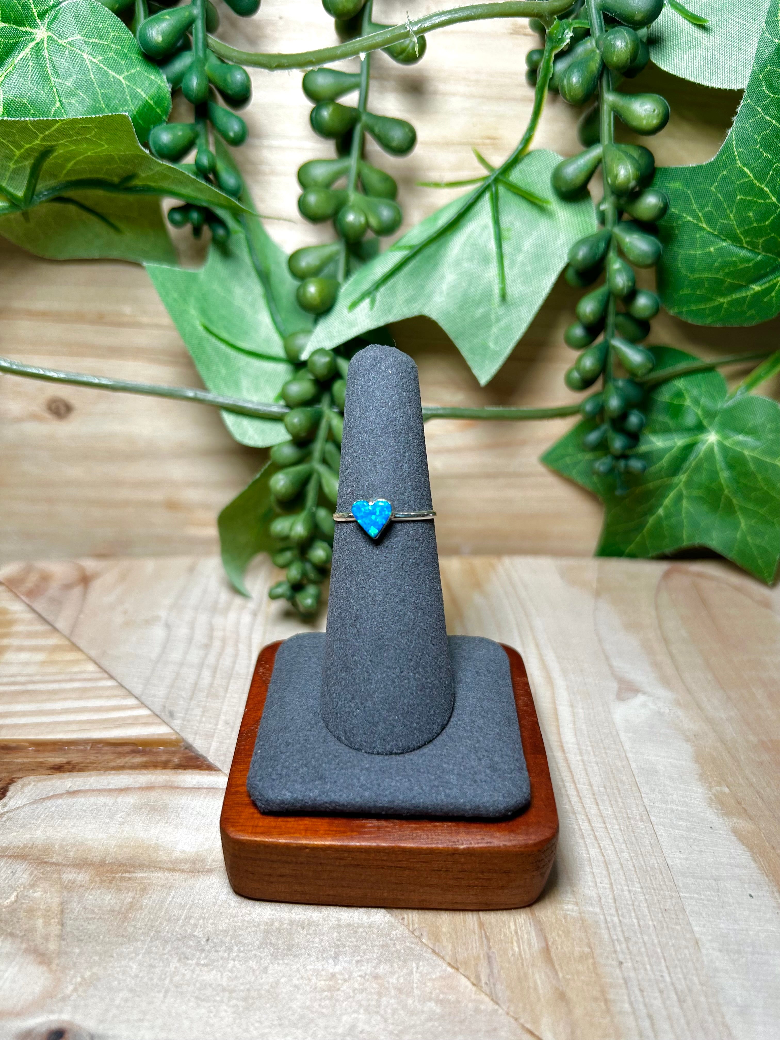 Navajo Man-Made Opal & Sterling Silver Ring Size 6. It measures 1/4 of an inch long and 1/4 of an inch wide. Signed by the artist and stamped sterling silver.