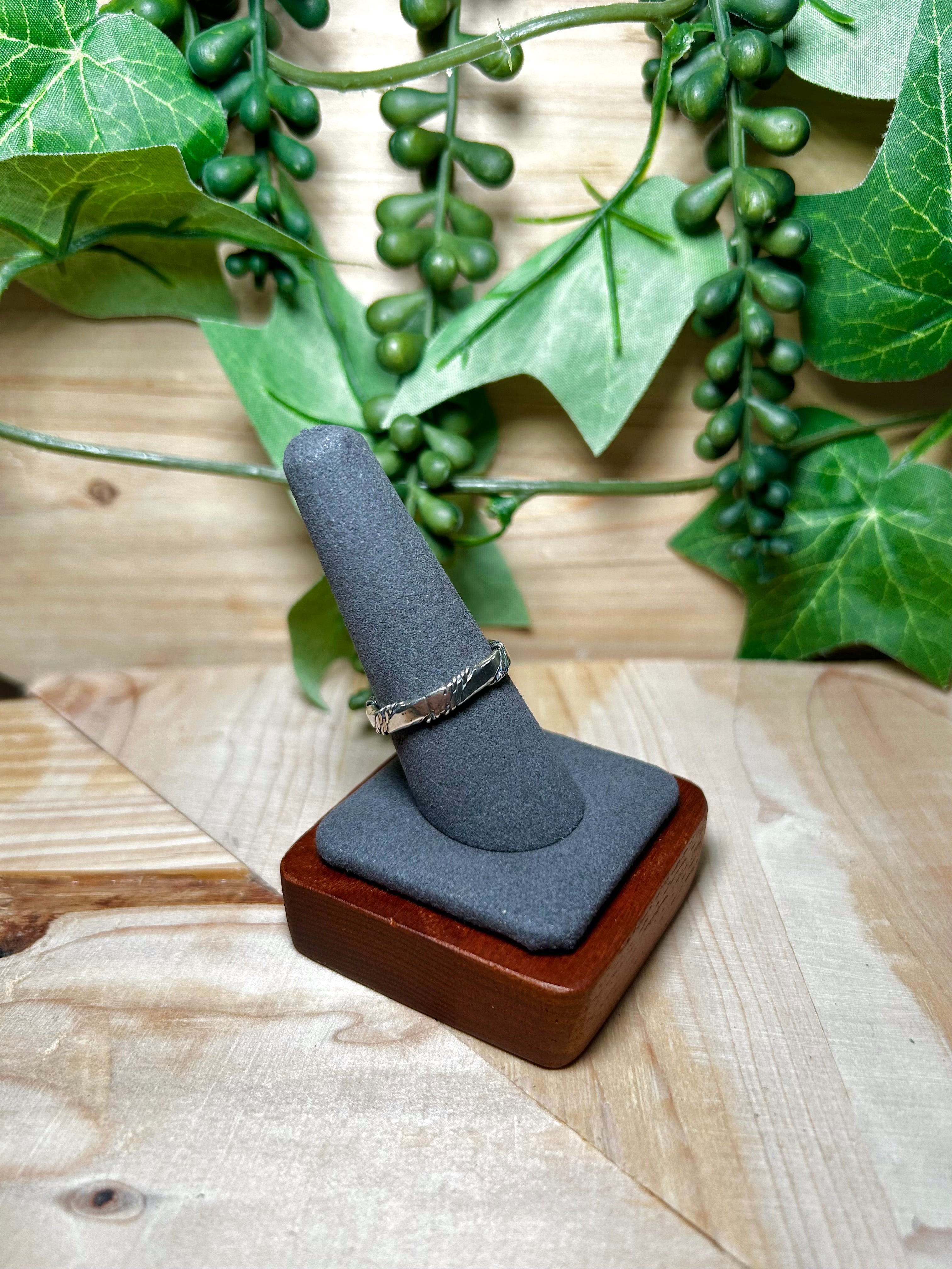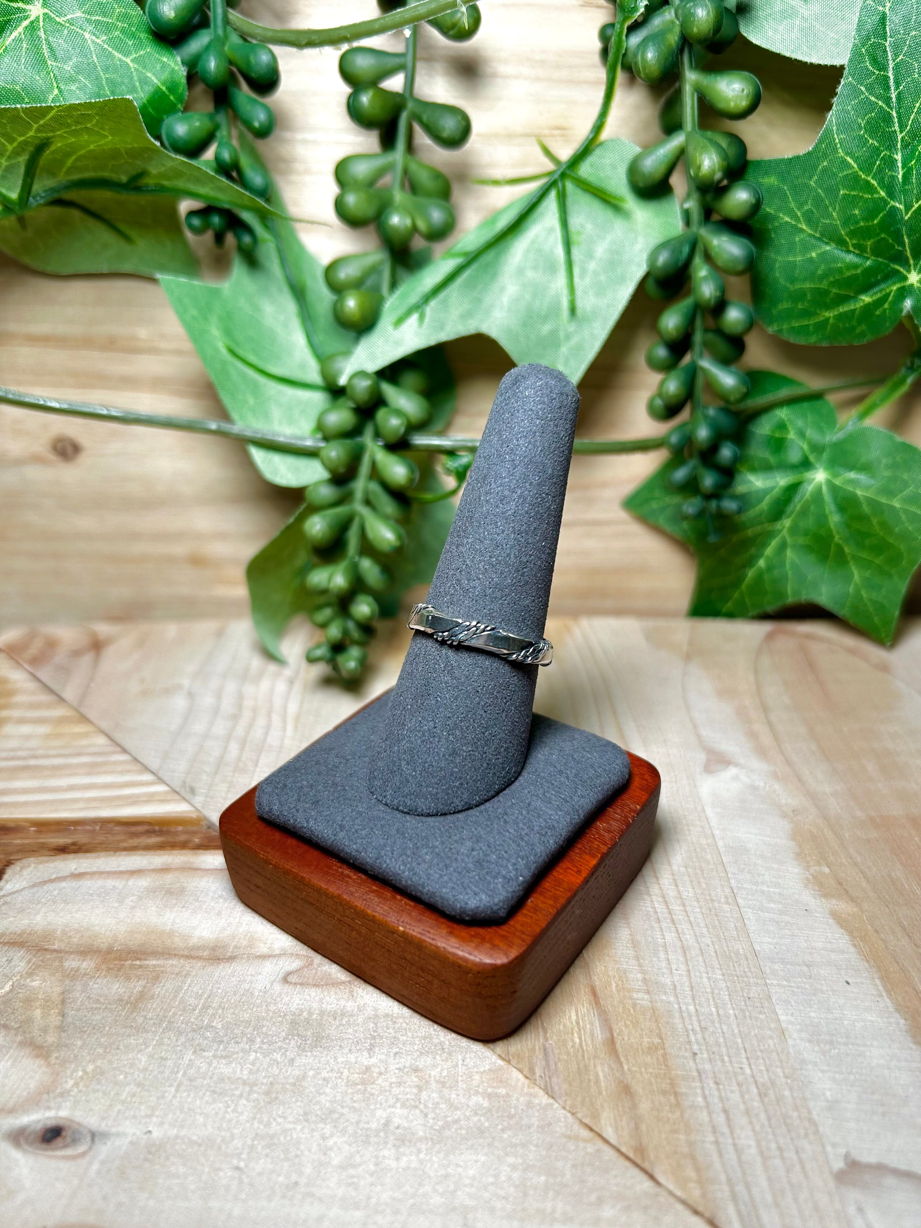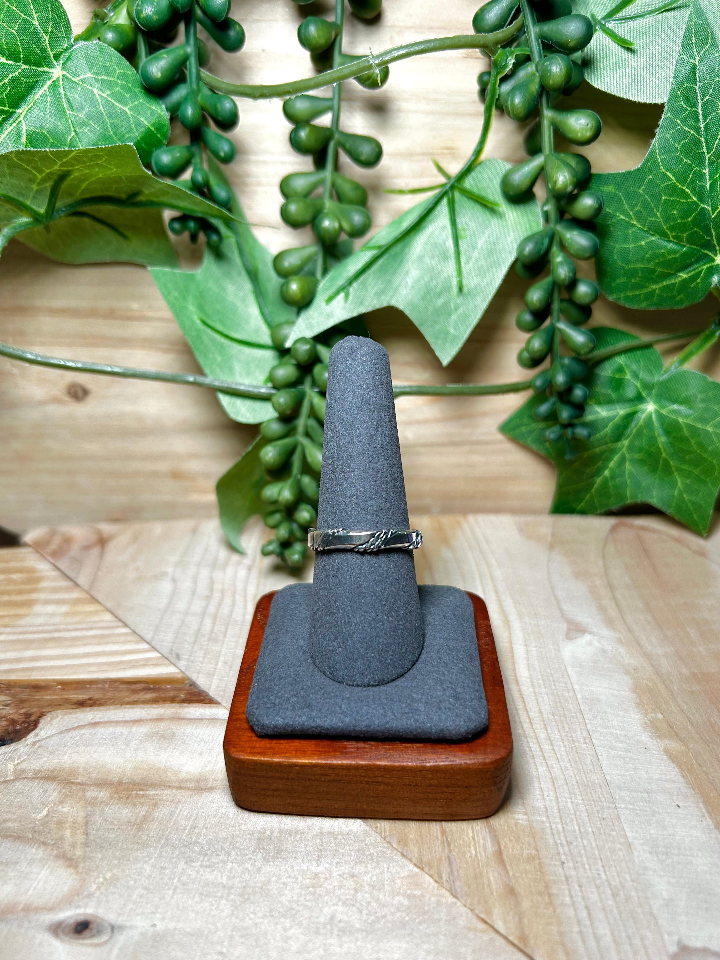 Navajo Made Sterling Silver Ring. It measures 1/8 of an inch wide. Signed by the artist and stamped sterling silver.