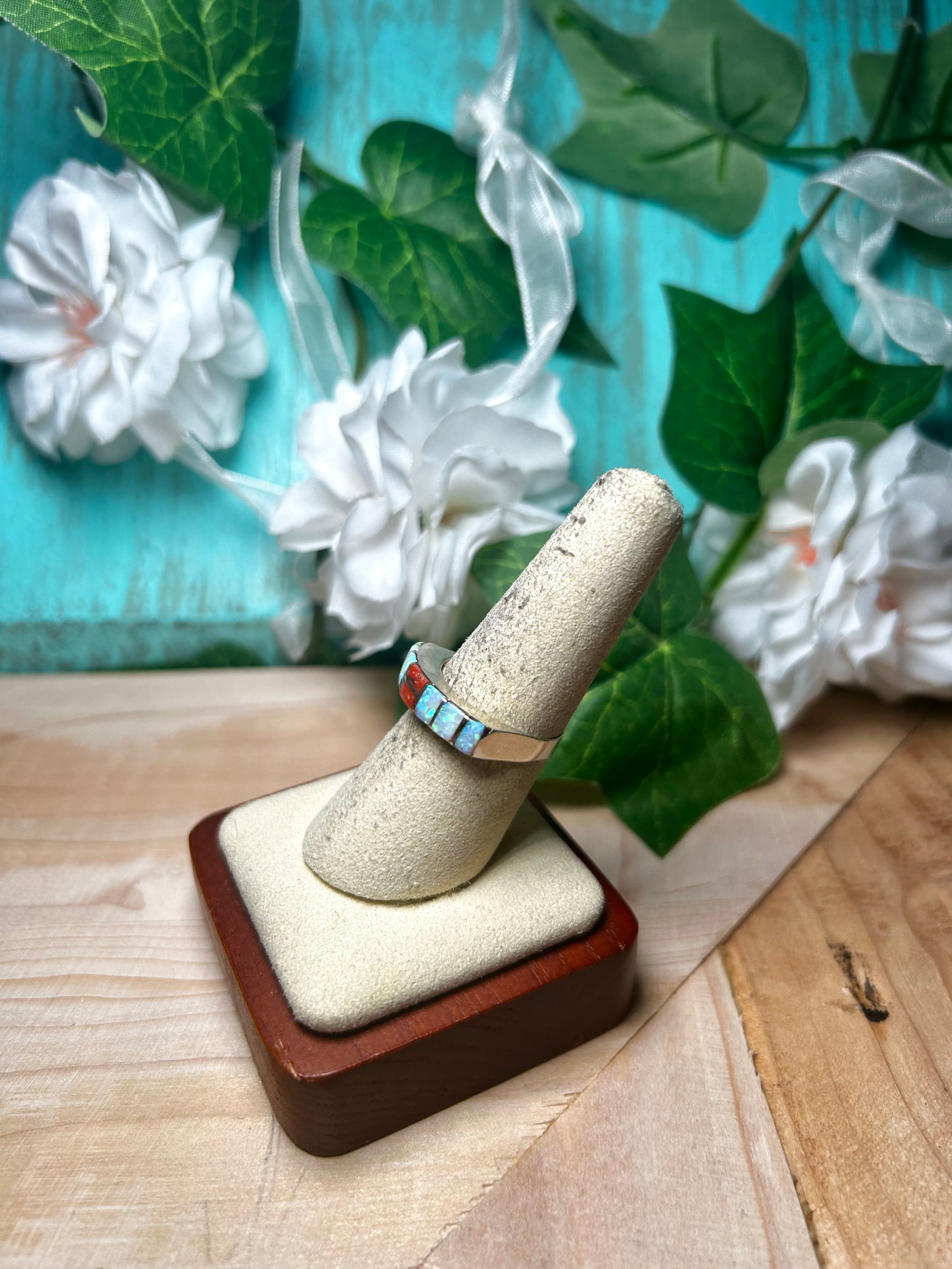Navajo Made Multi Stone & Sterling Silver Ring Size 8