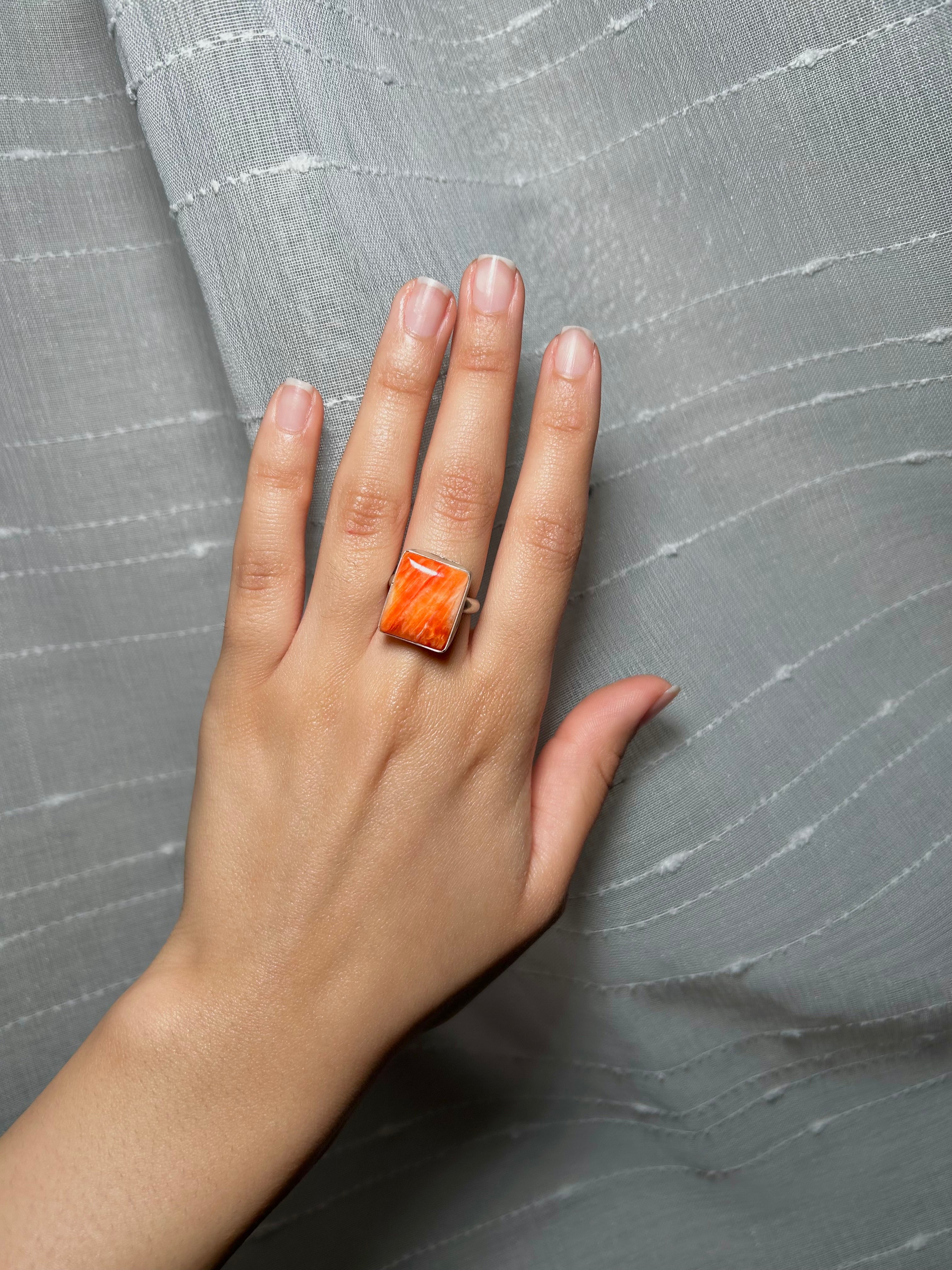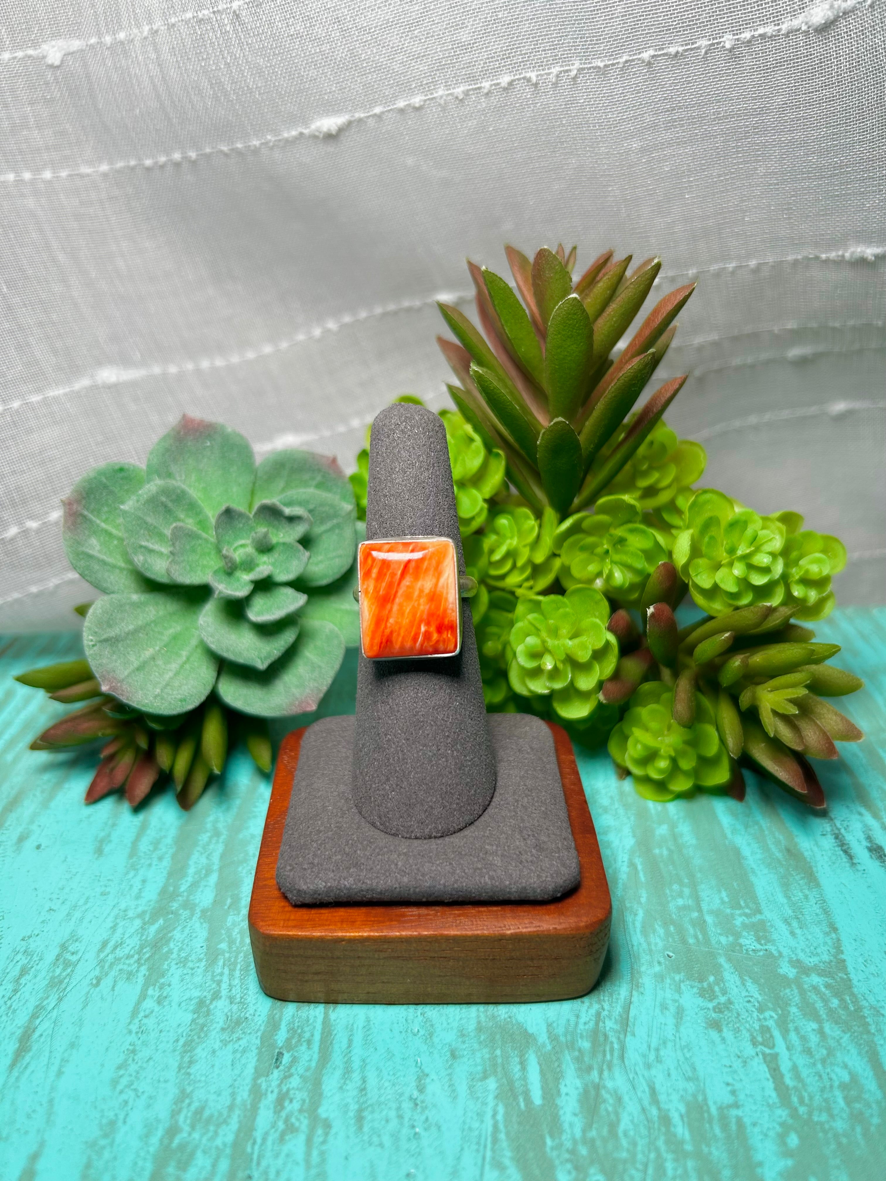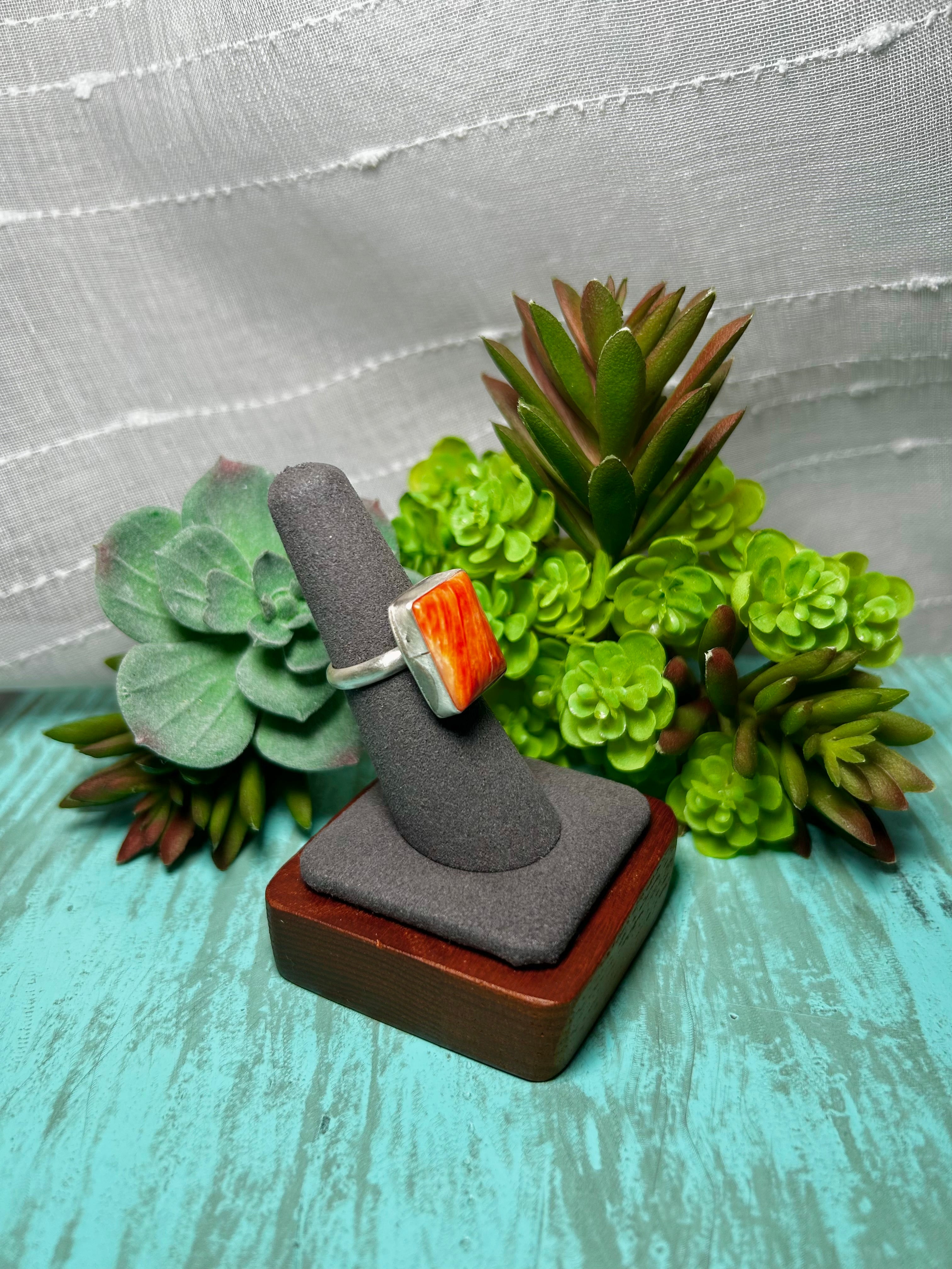 Navajo Made Spiny Oyster & Sterling Sliver Ring Size 6.25