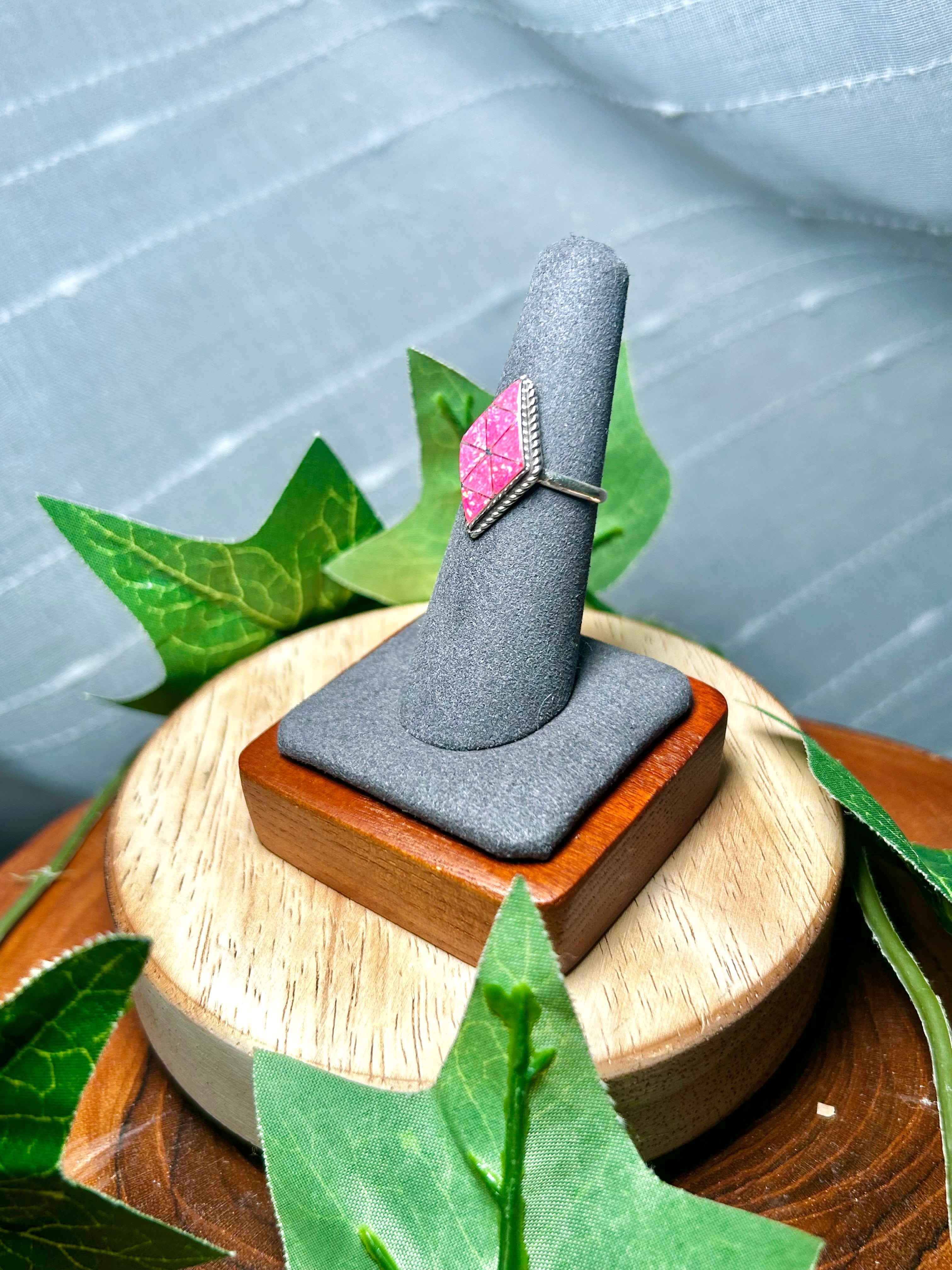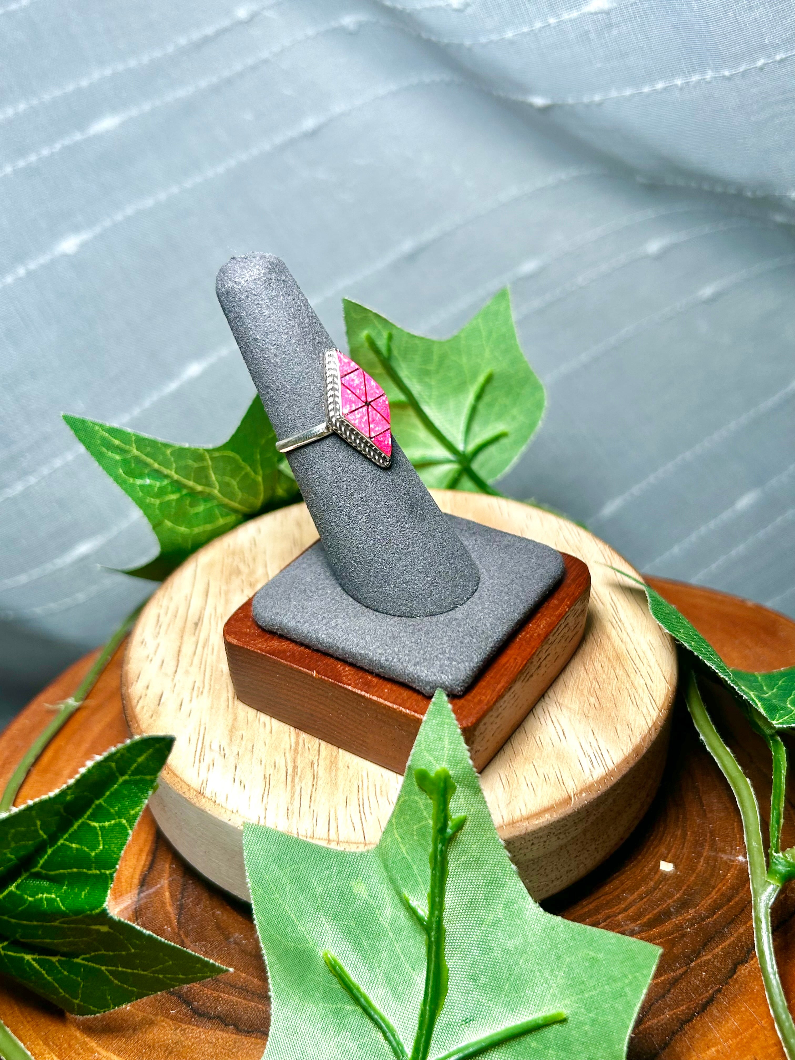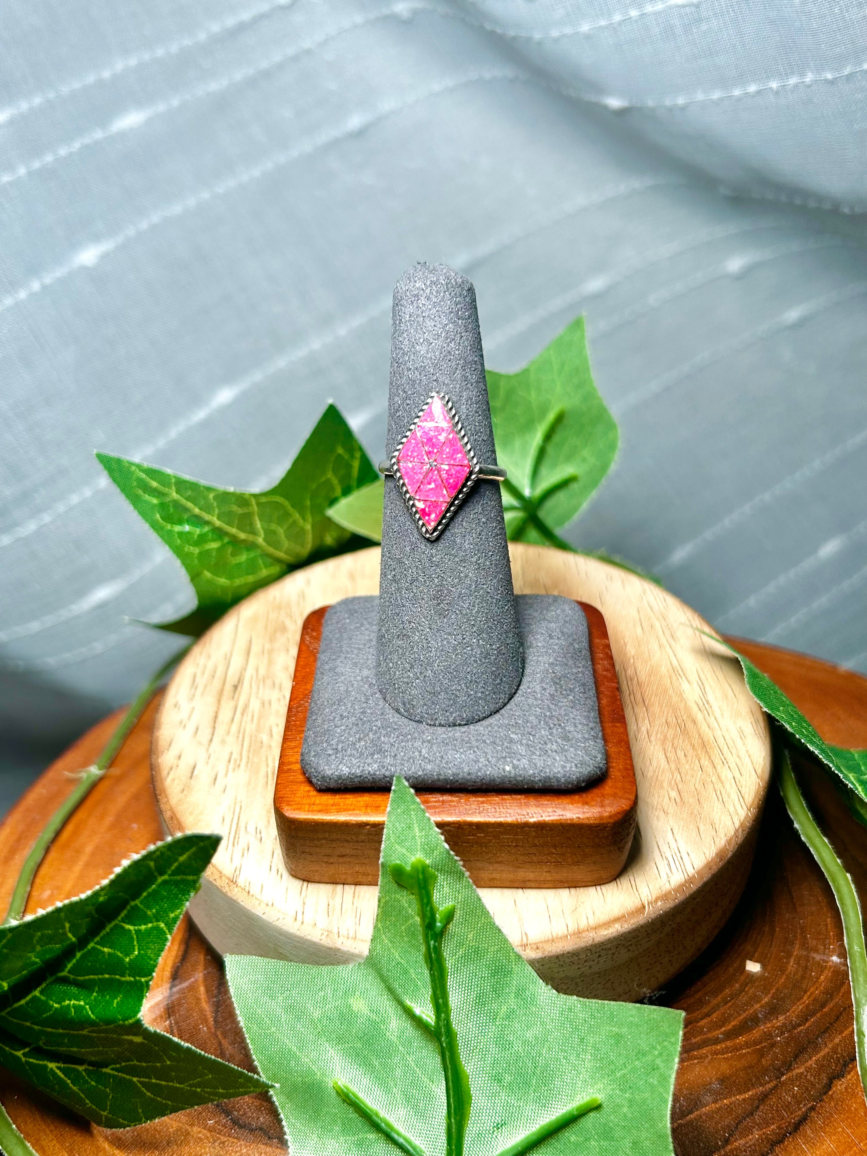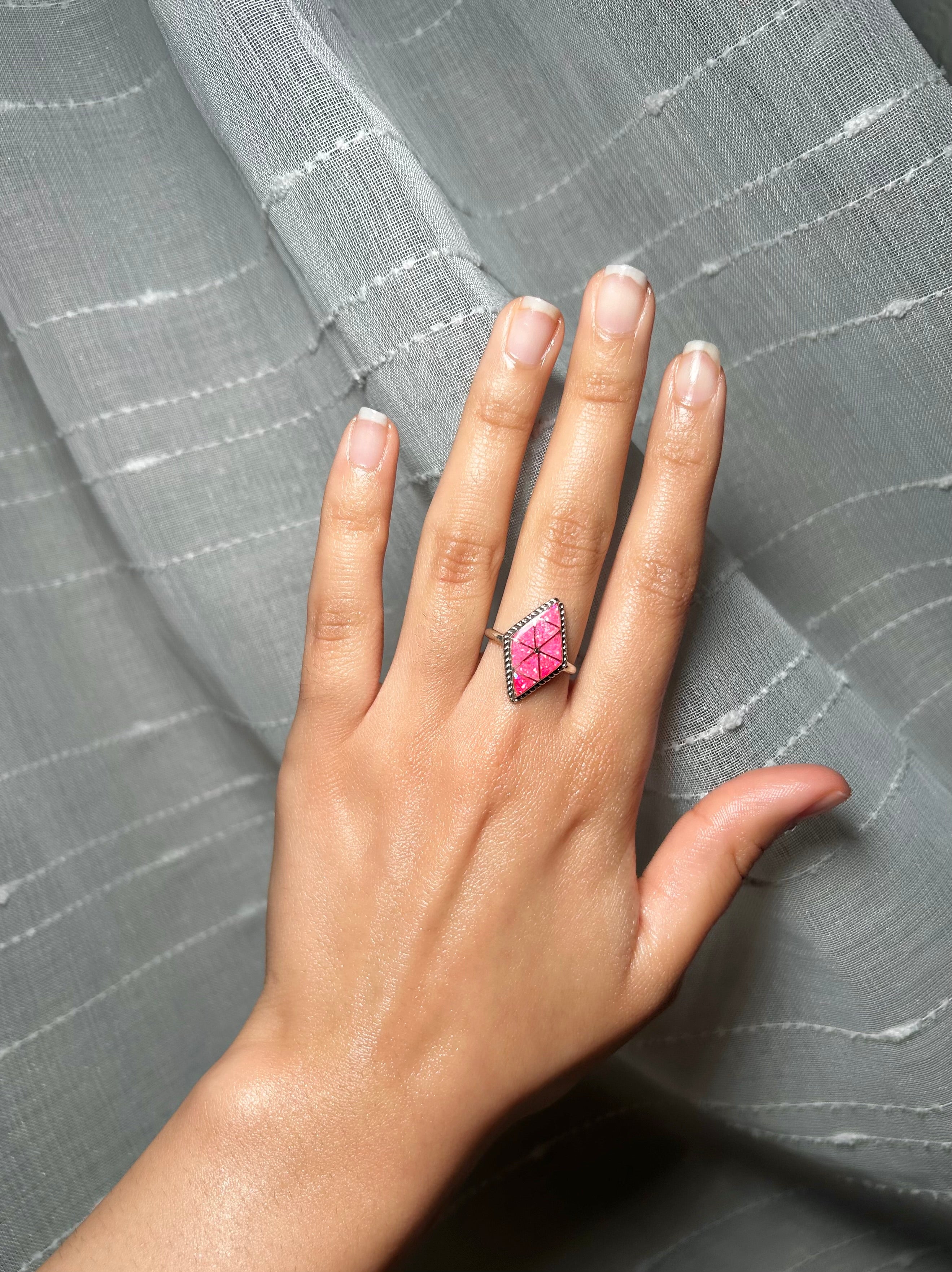 Zuni Made Opal & Sterling Silver Ring Size 7. It measures 7/8 of an inch long and 1/2 of an inch wide. Signed by the artist and stamped sterling silver.