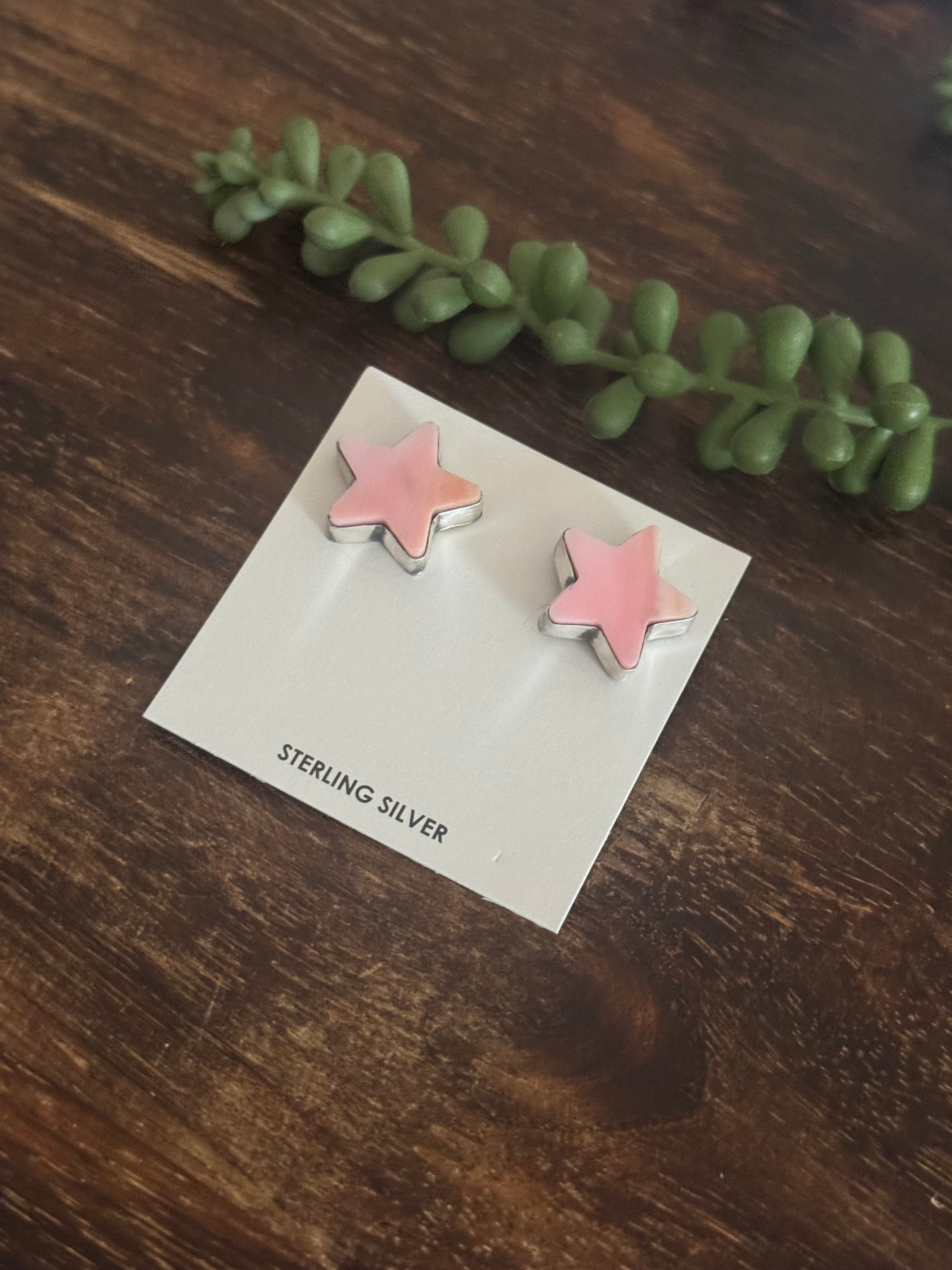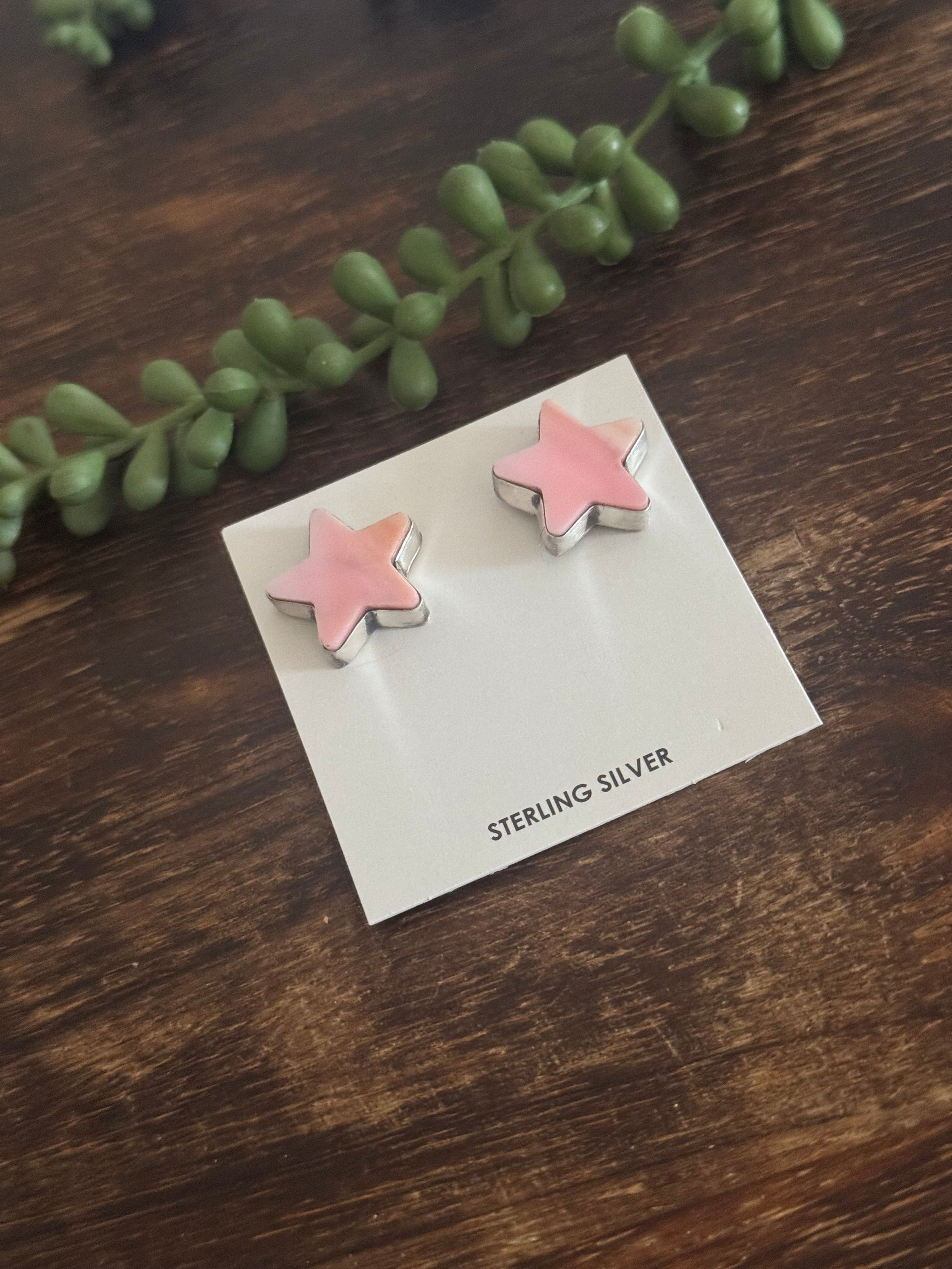 Larson Chee Pink Conch & Sterling Silver Post Star Earrings