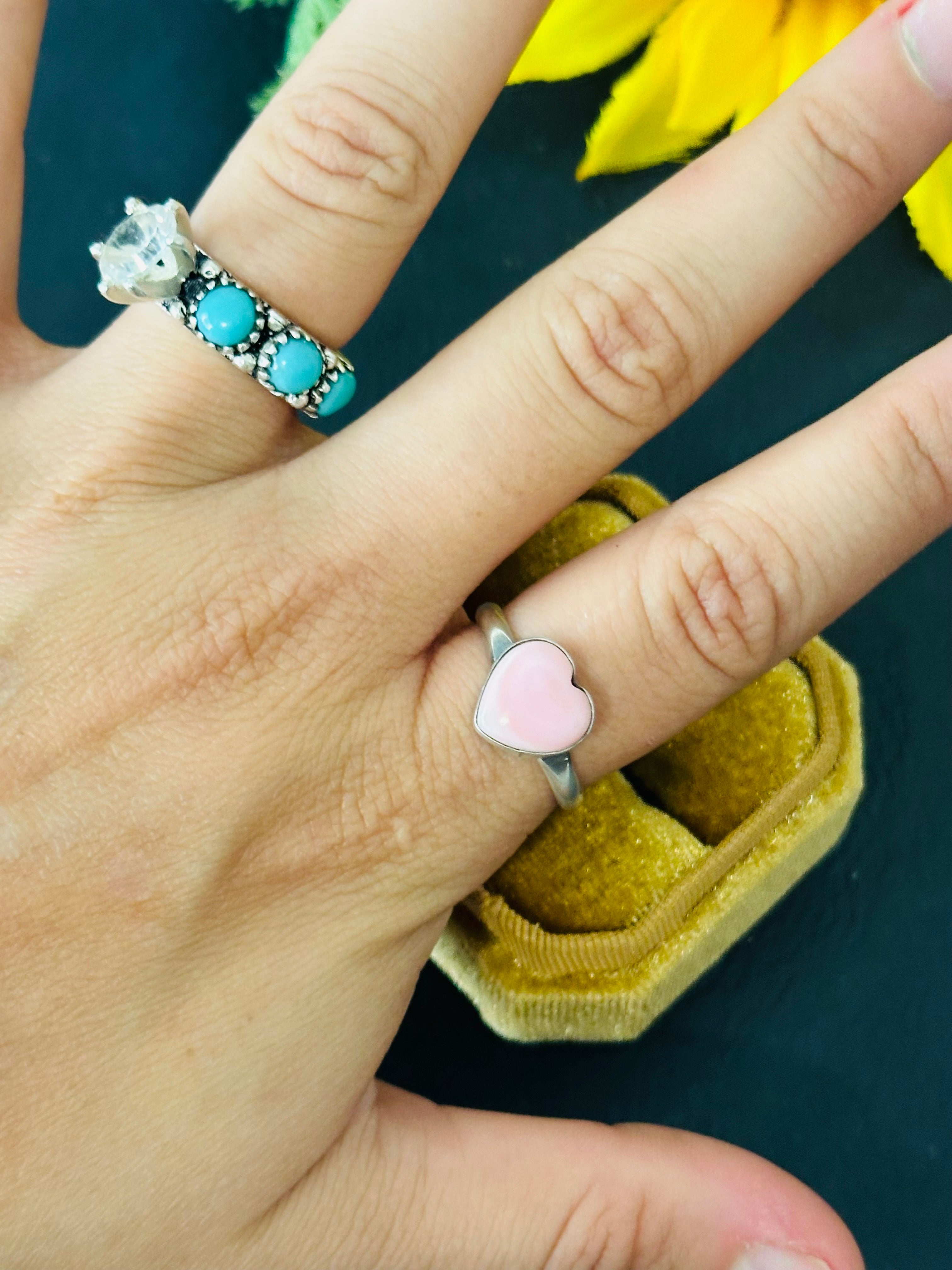 Navajo Made Pink Conch & Sterling Silver Ring Size 8