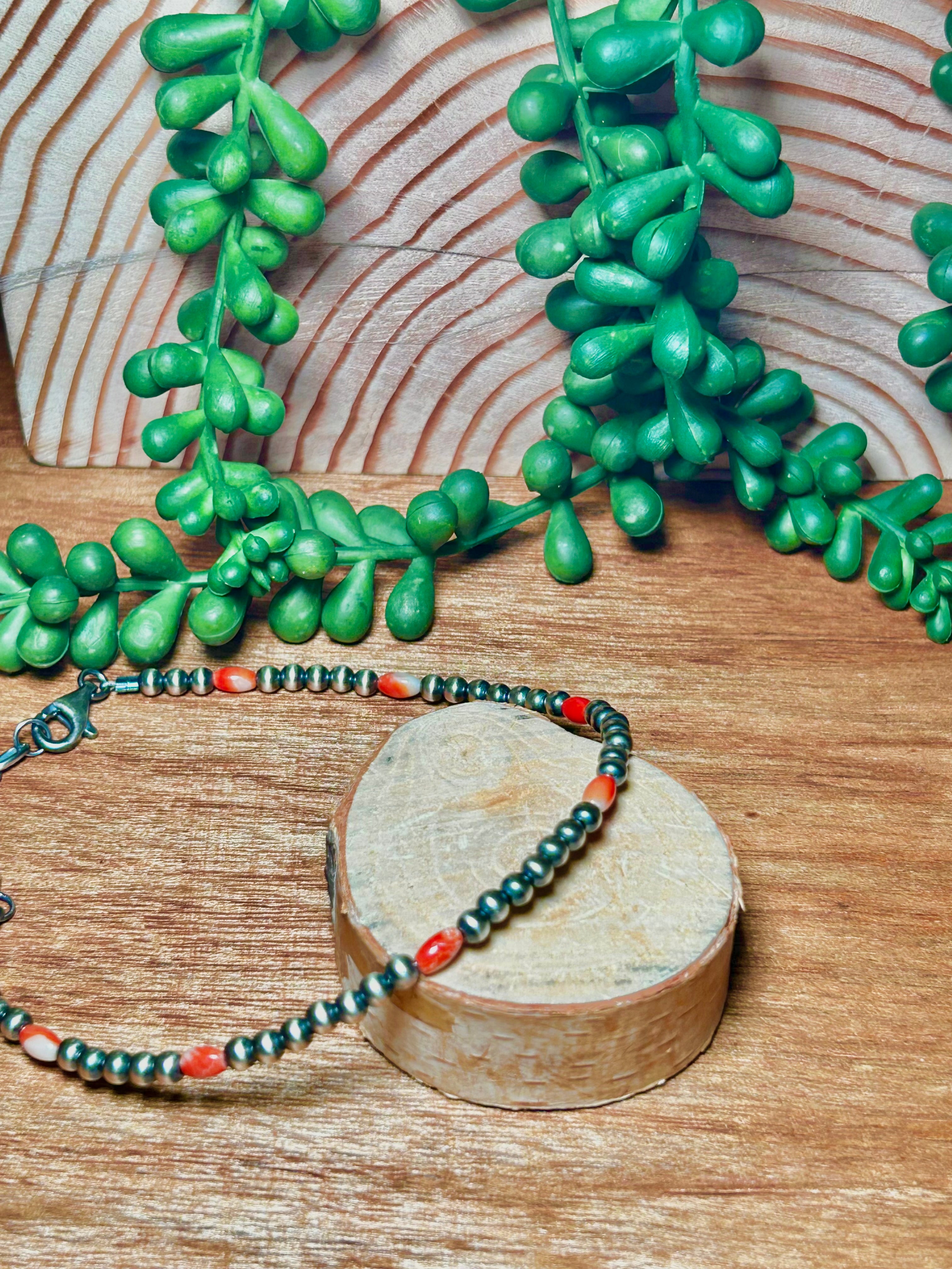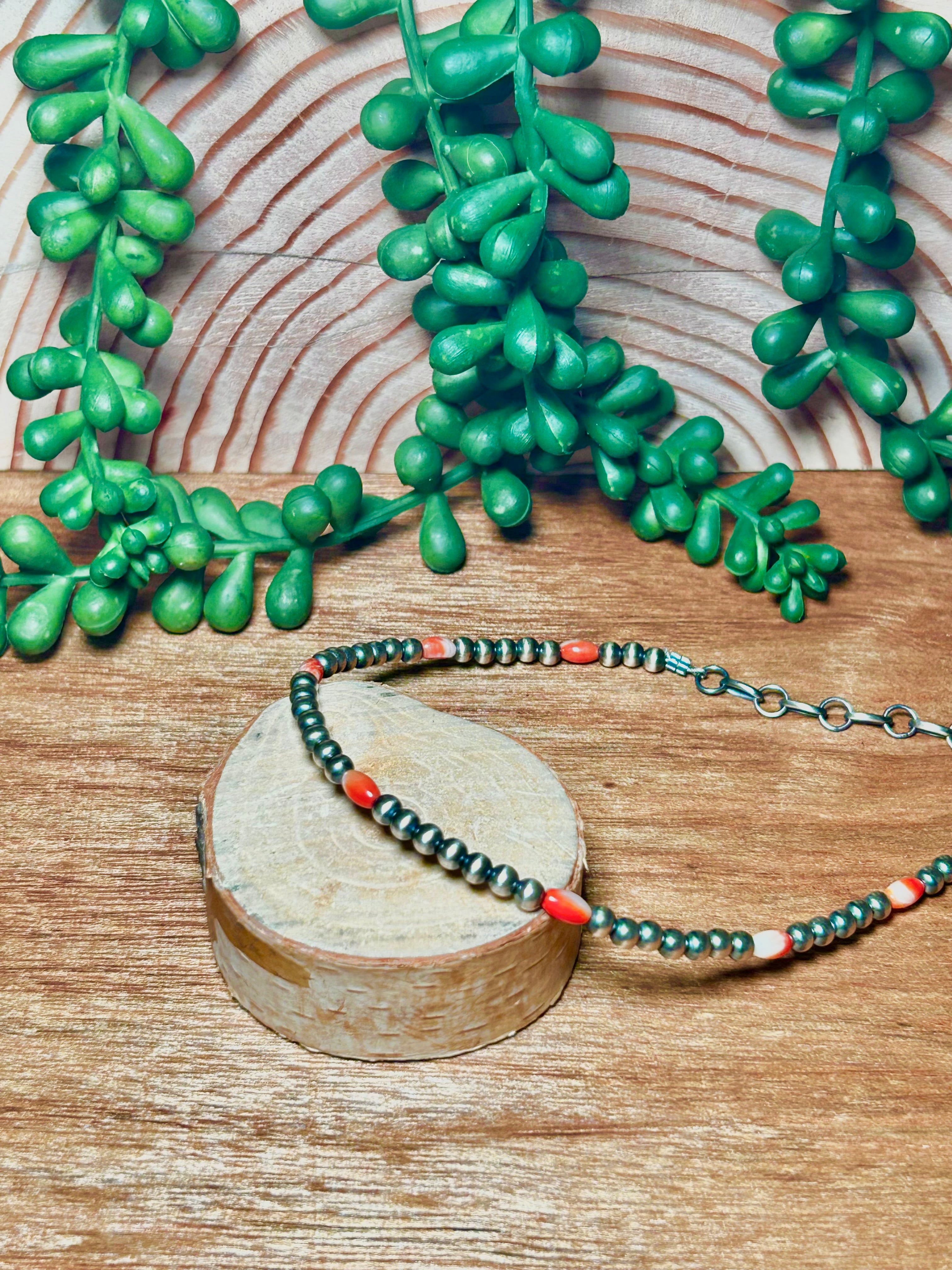 Navajo Made Spiny Oyster & Sterling Silver Strung 4 MM Anklet