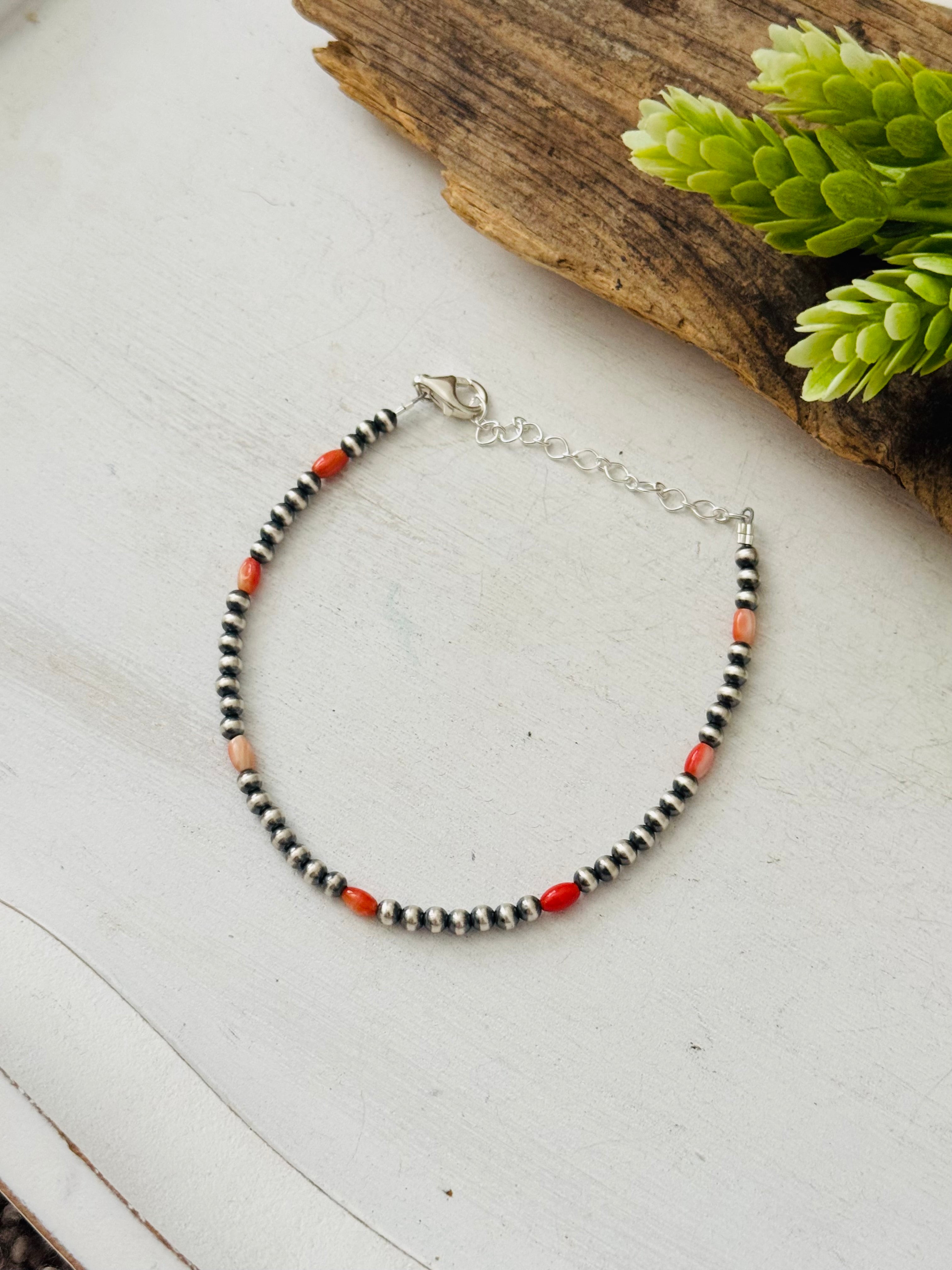 Navajo Made Spiny Oyster & Sterling Silver Strung Anklet