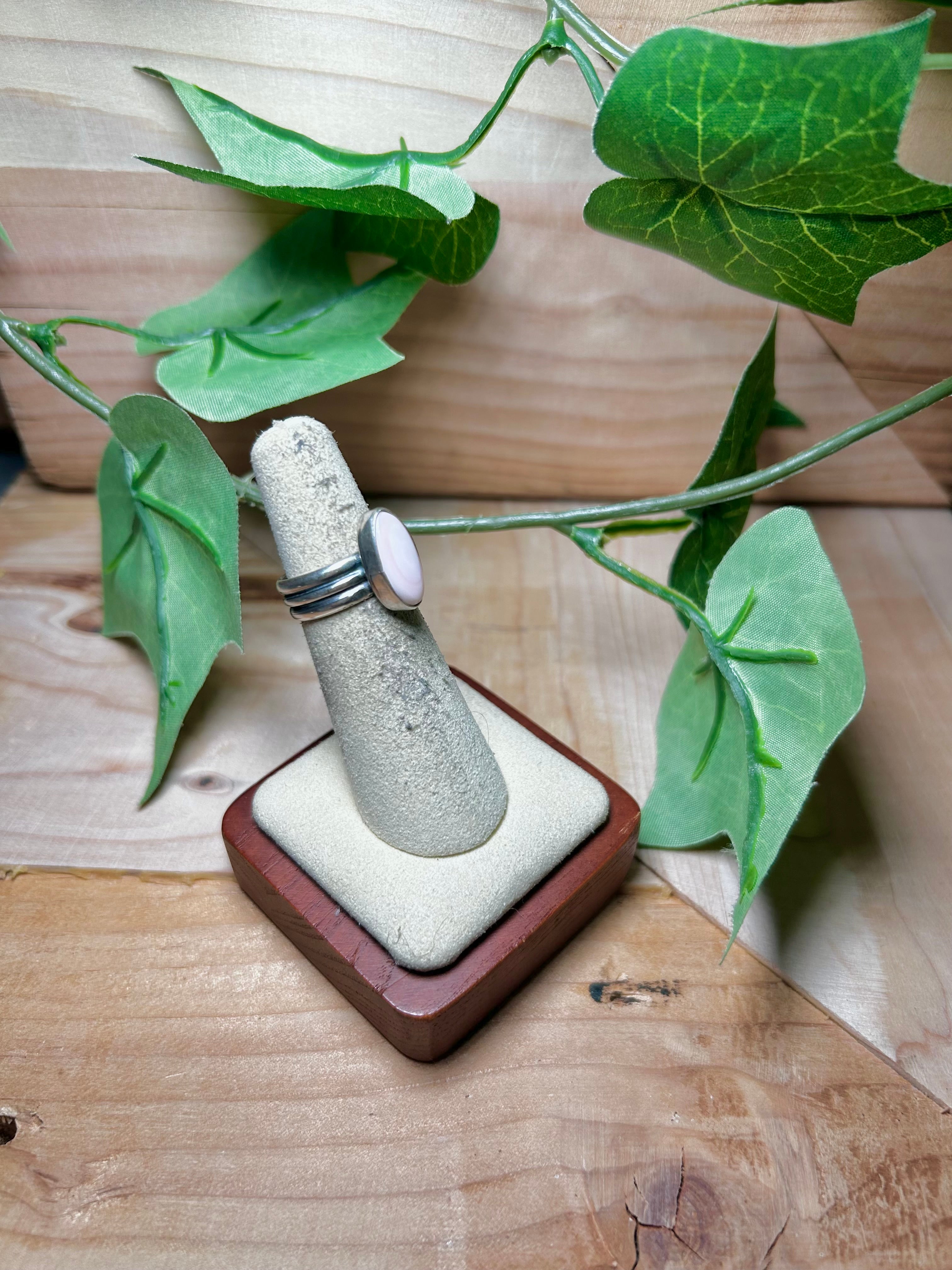 Navajo Made Pink Conch & Sterling Sliver Cluster Ring Size 4.75