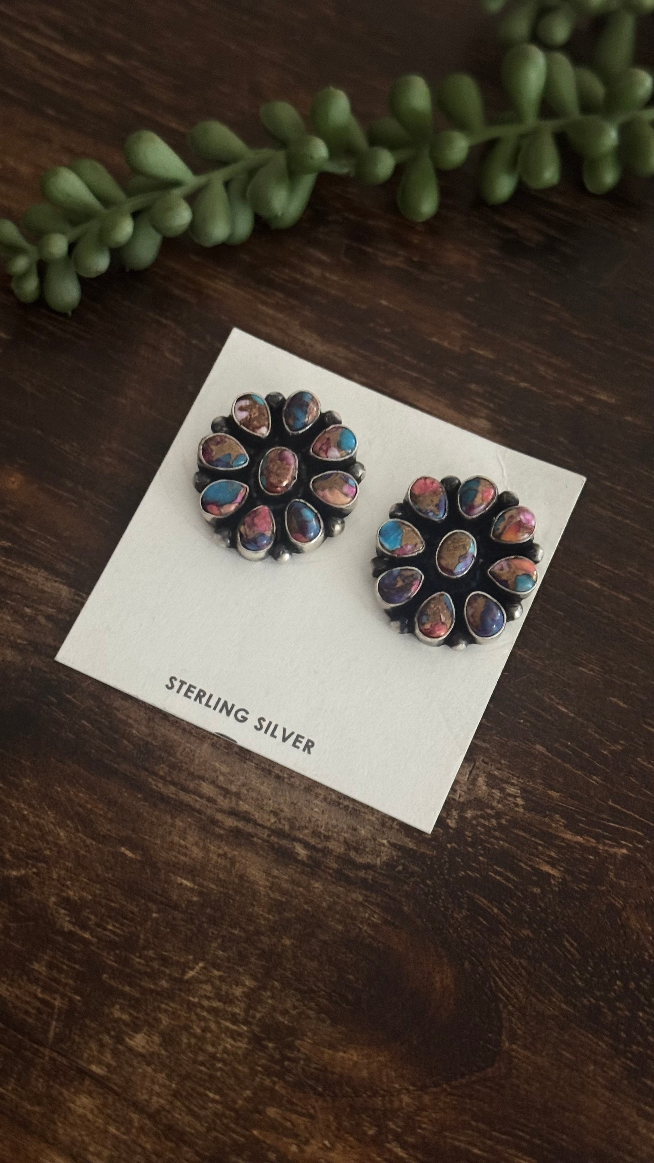 Navajo Made Pink Mohave Turquoise & Sterling Silver Post Cluster Earrings