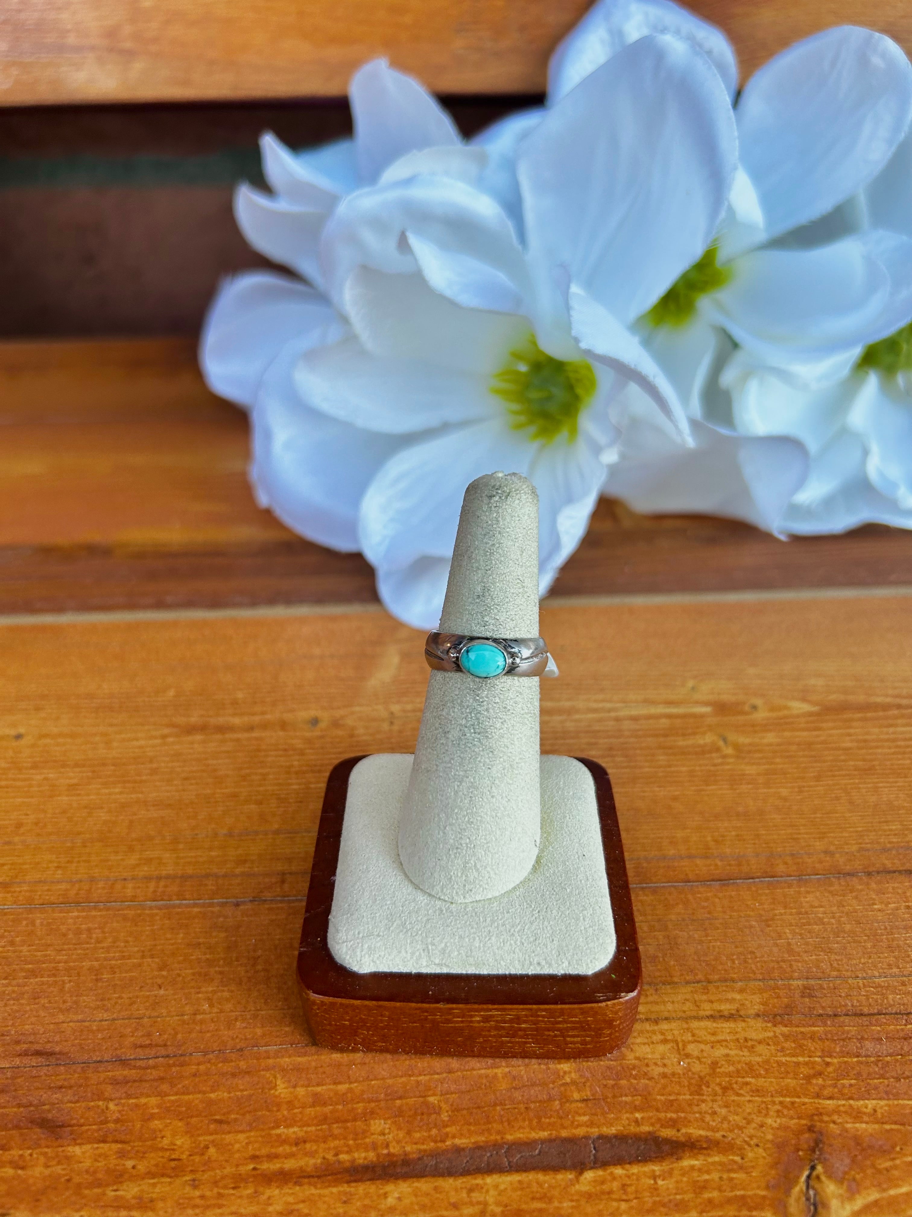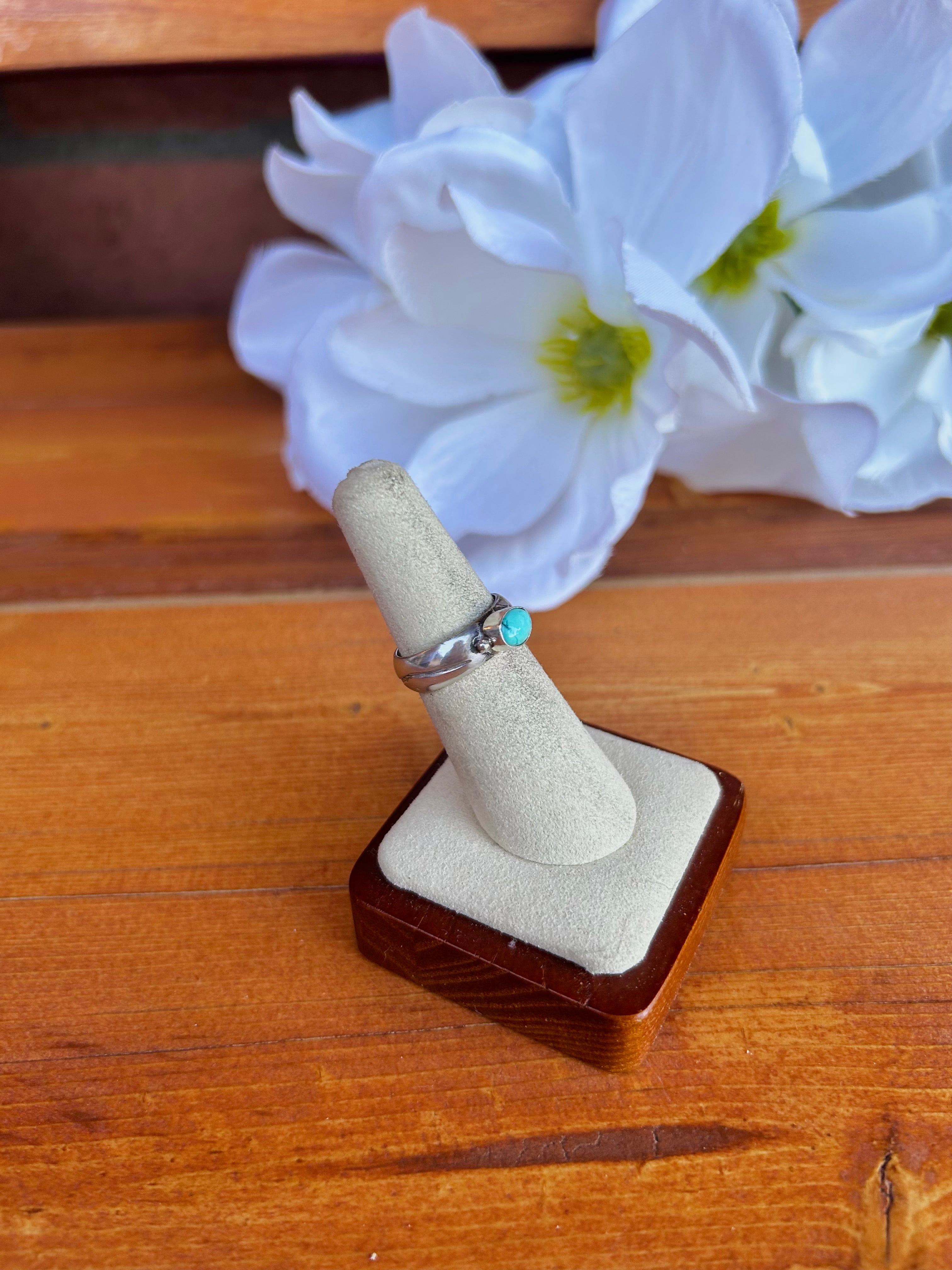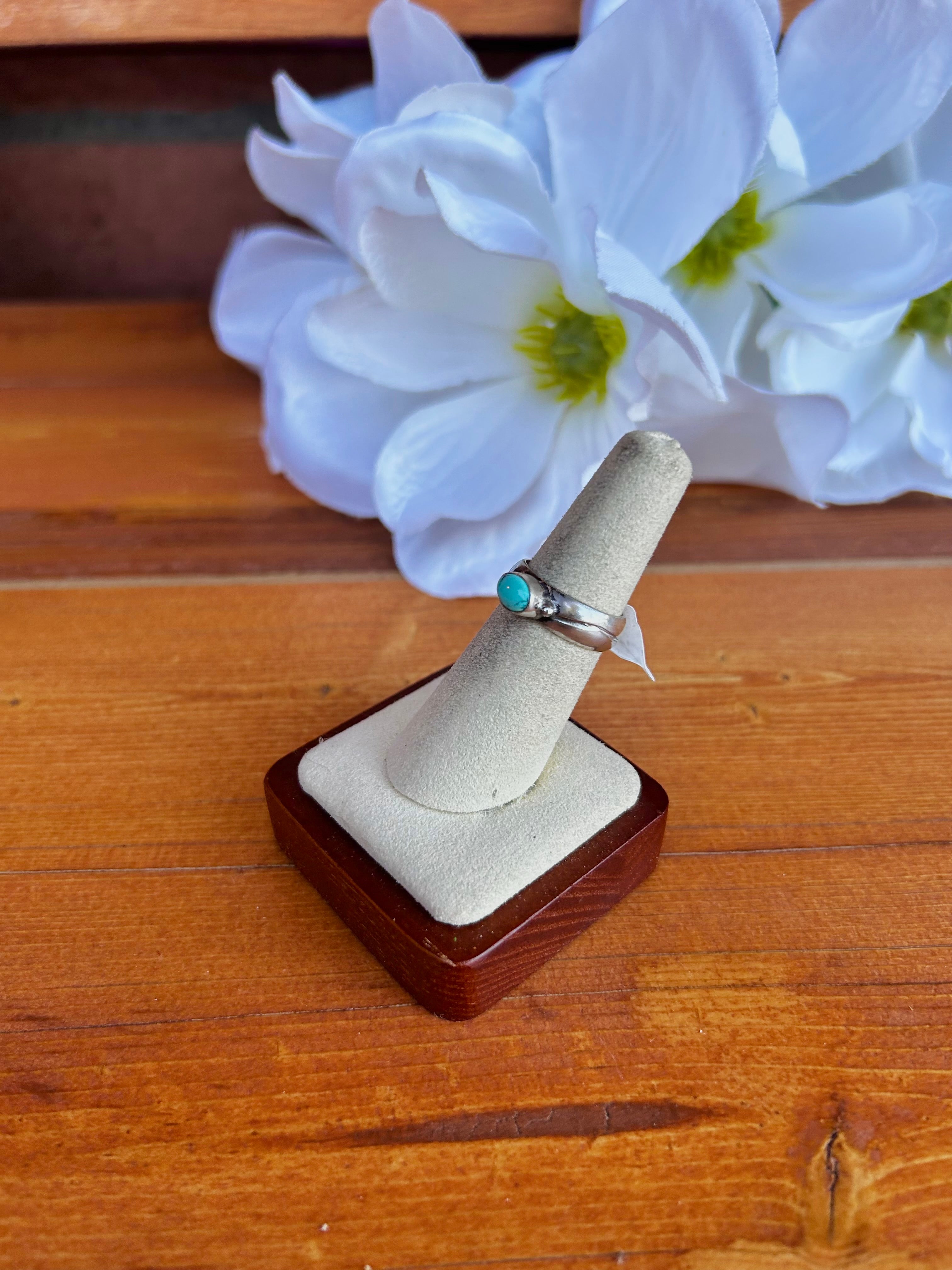 Navajo Made Kingman Turquoise & Sterling Silver Ring Size 6