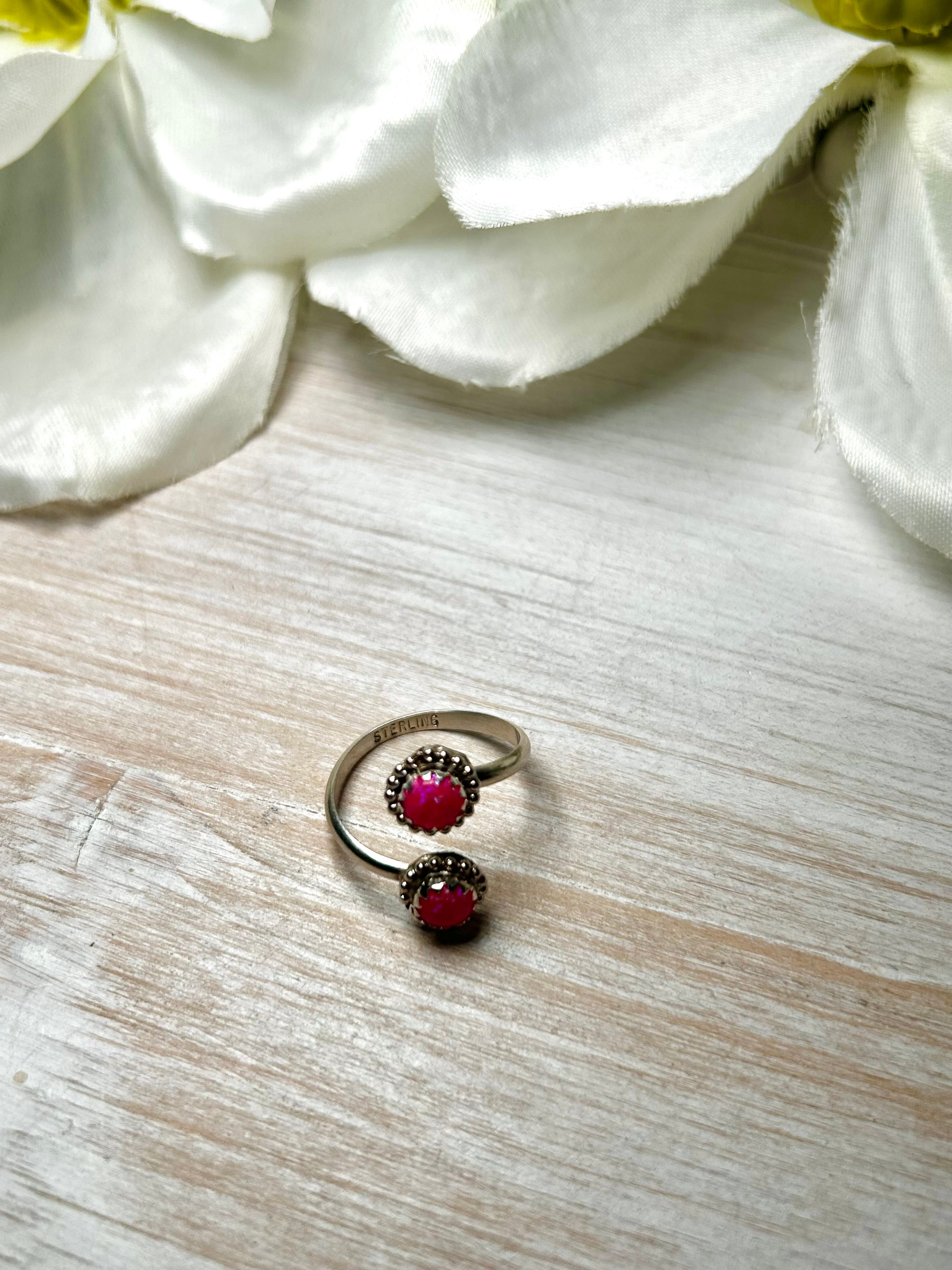 Navajo Made Pink Opal & Sterling Silver Adjustable Ring