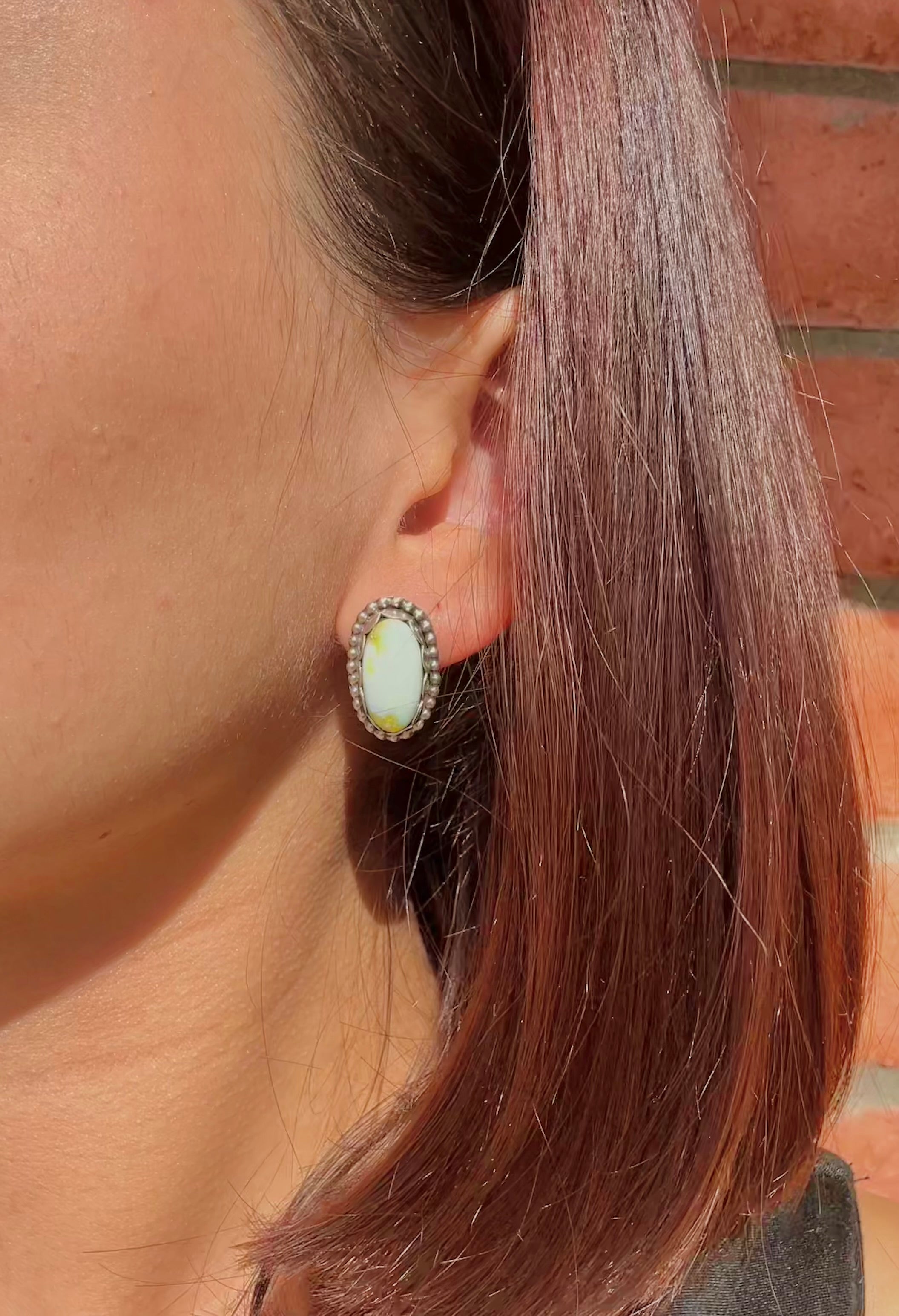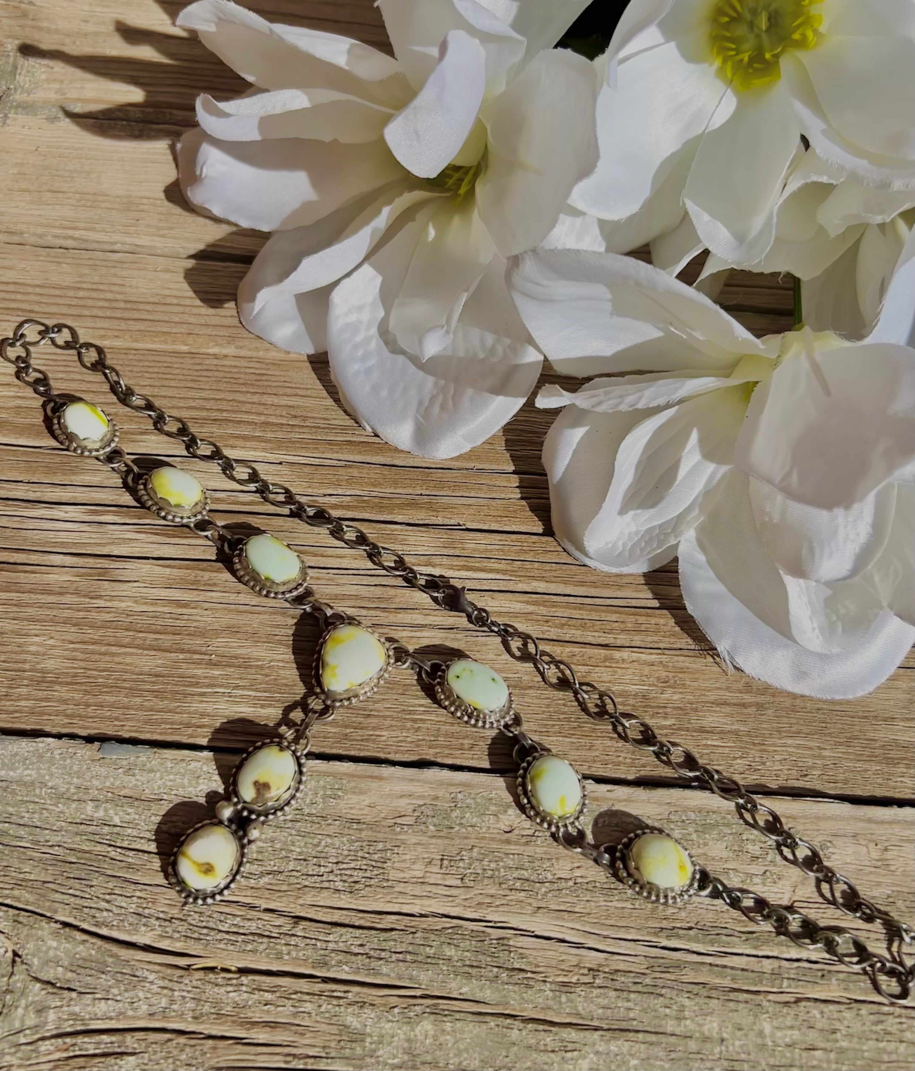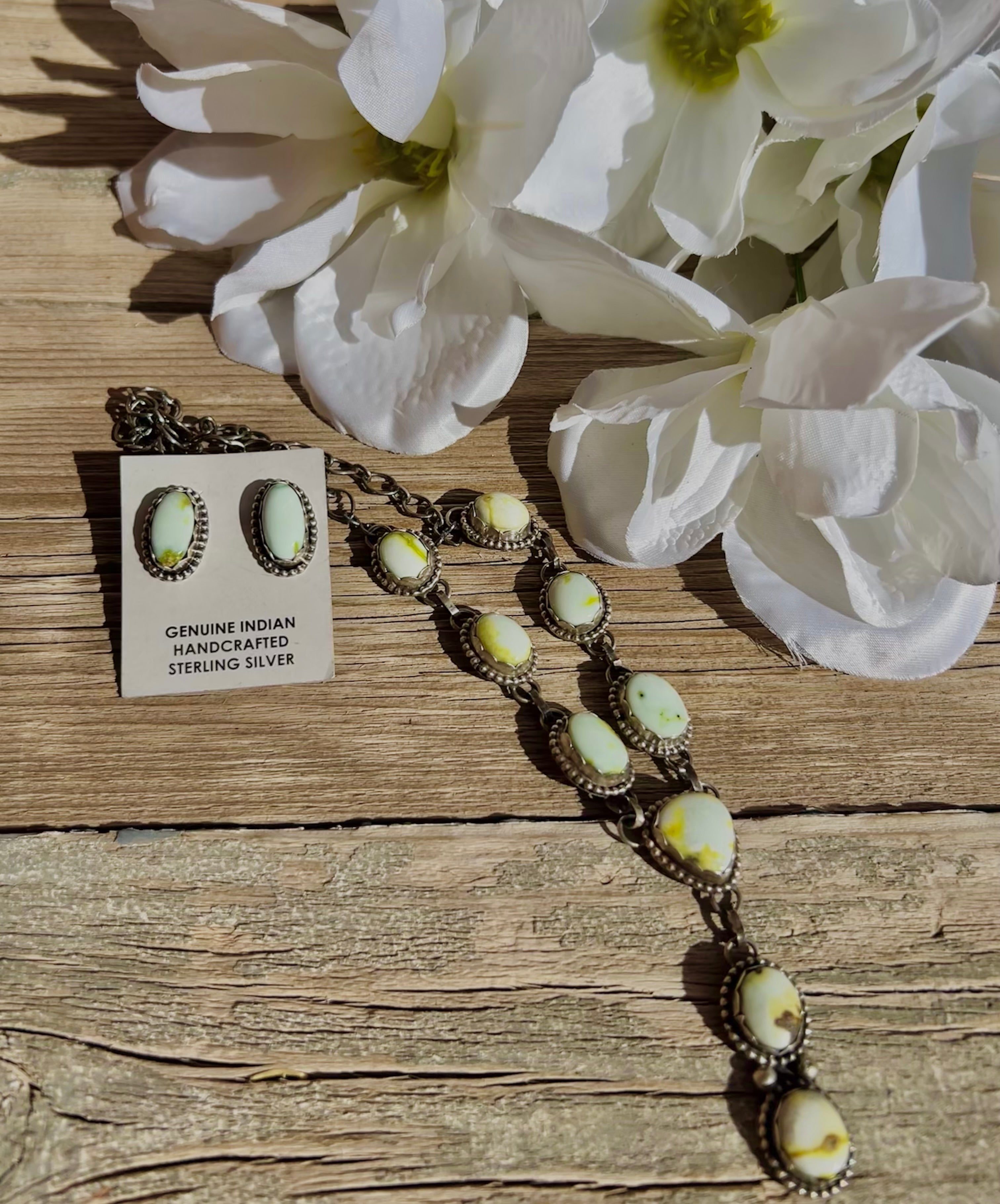 Betta Lee Palomino & Sterling Silver Cluster Necklace Set. It measures 25 1/2 inches long with hang while the chain by itself measures 20 inches long. Earring measure 1 inch long and 1/2 of an inch wide. Signed by the artist and stamped sterling silver.
