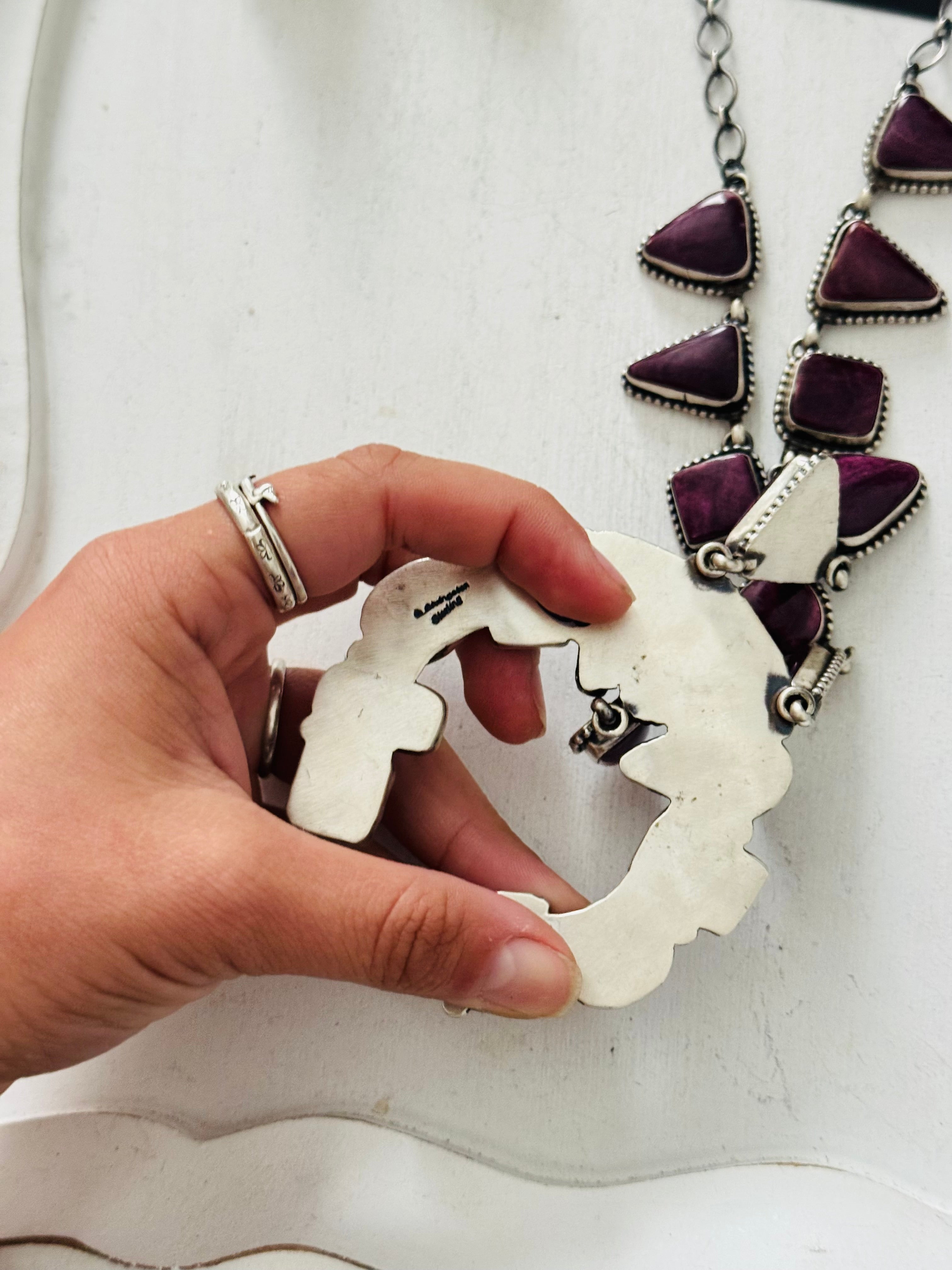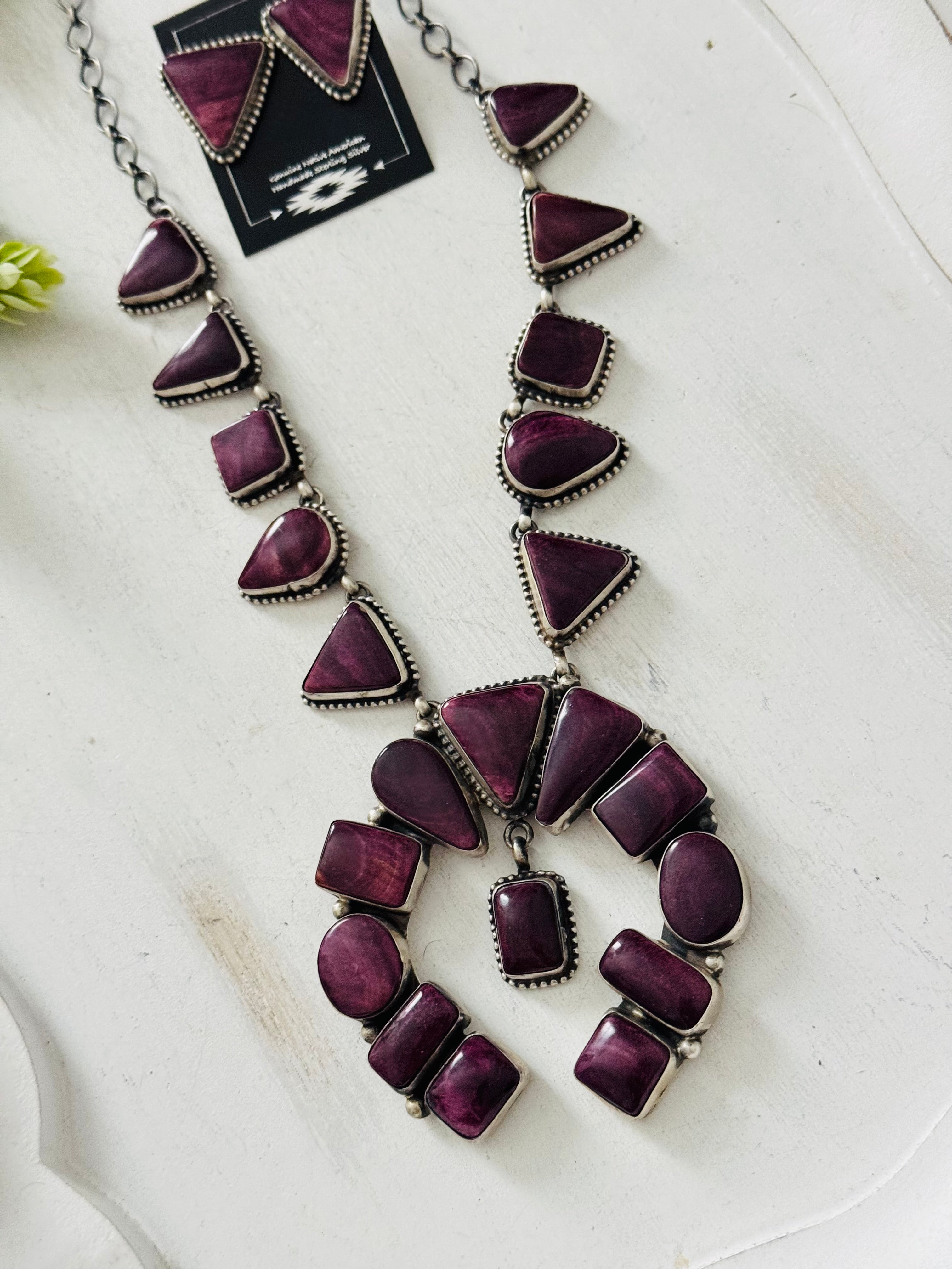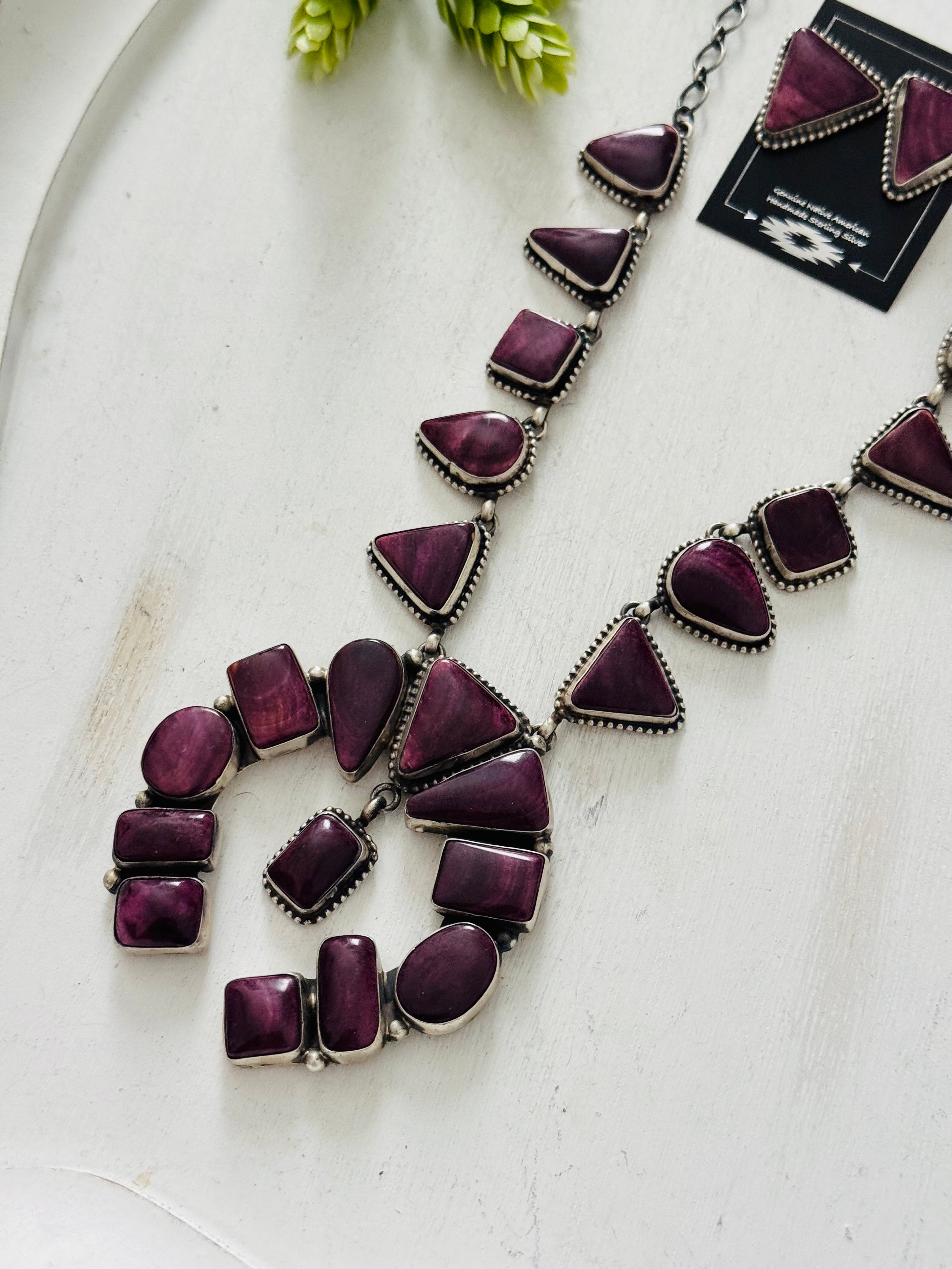 Navajo Made Purple Spiny Oyster & Sterling Silver Cluster Necklace Set