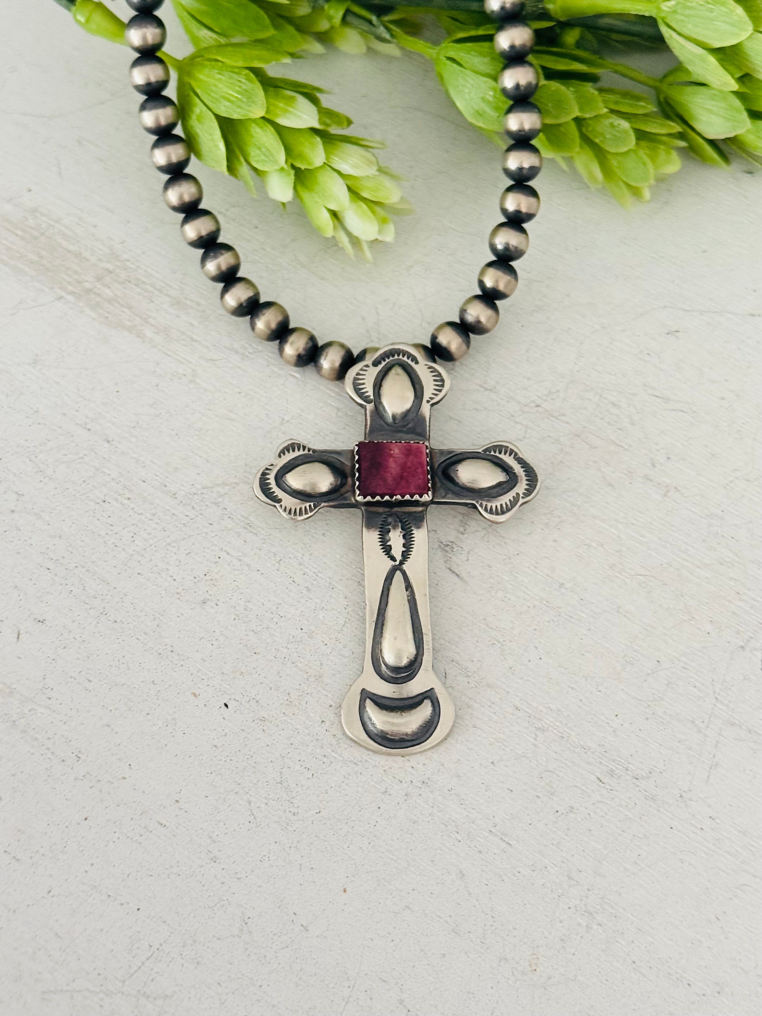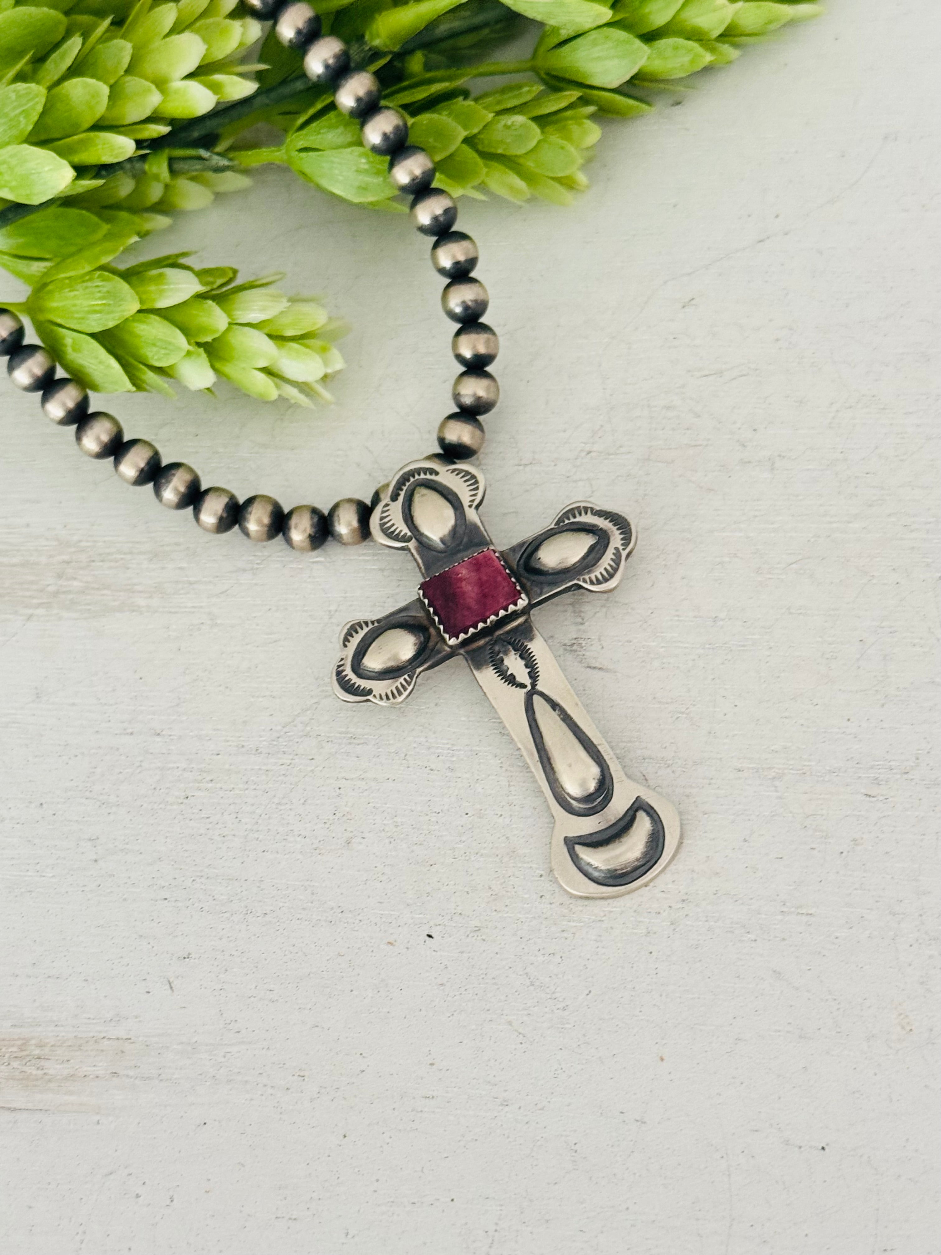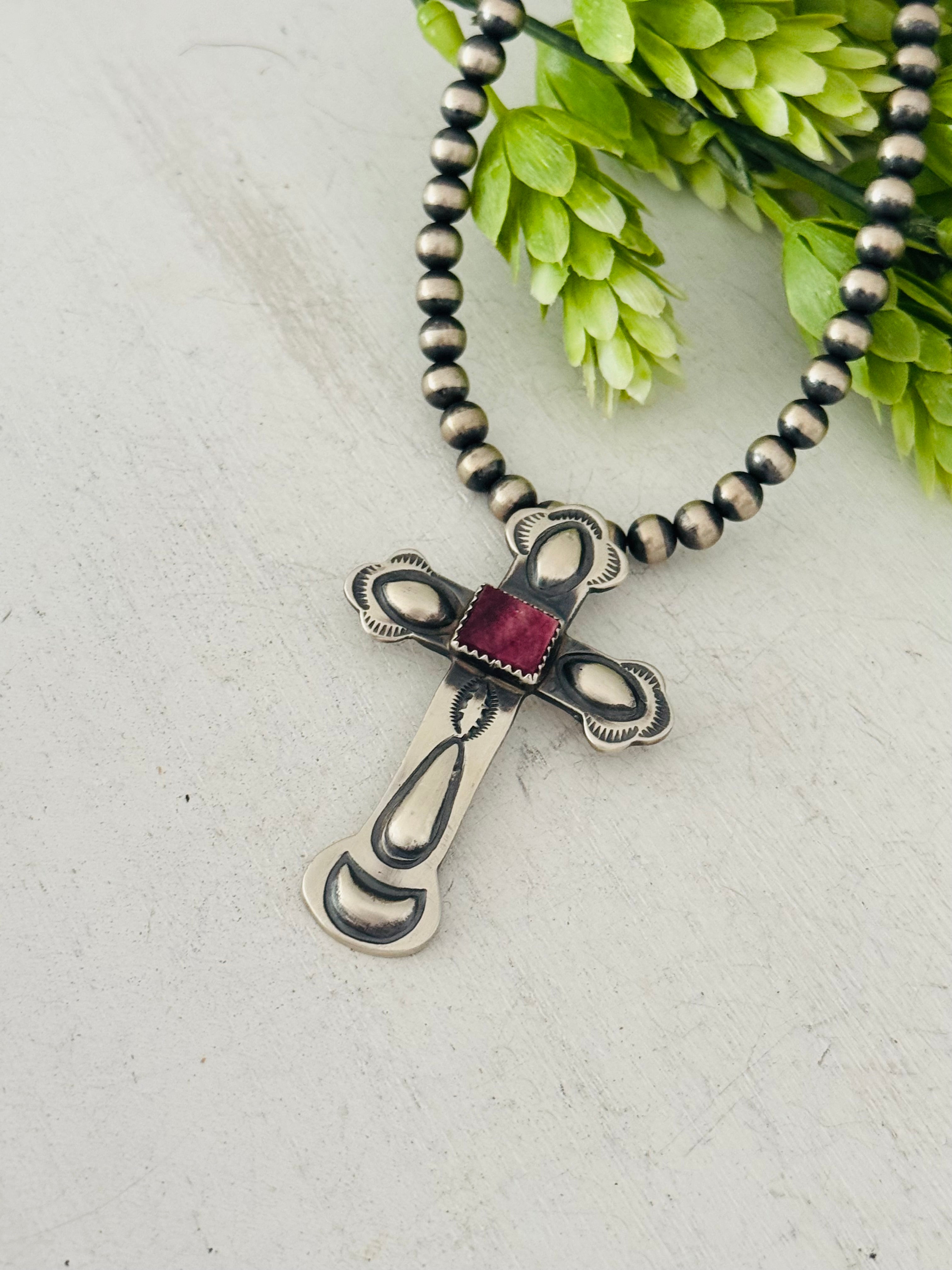 Navajo Made Purple Spiny Oyster & Sterling Silver Cross Pendant