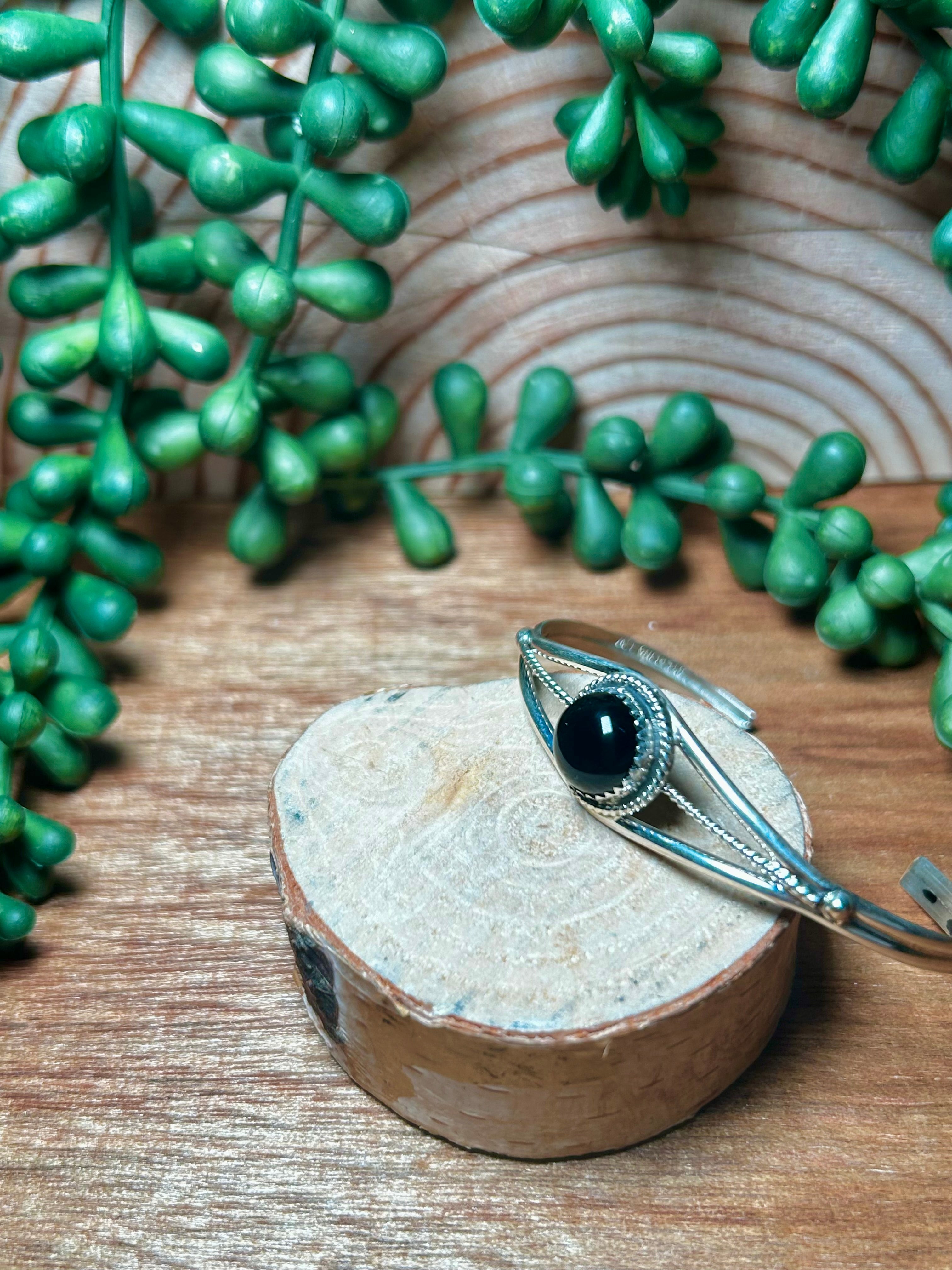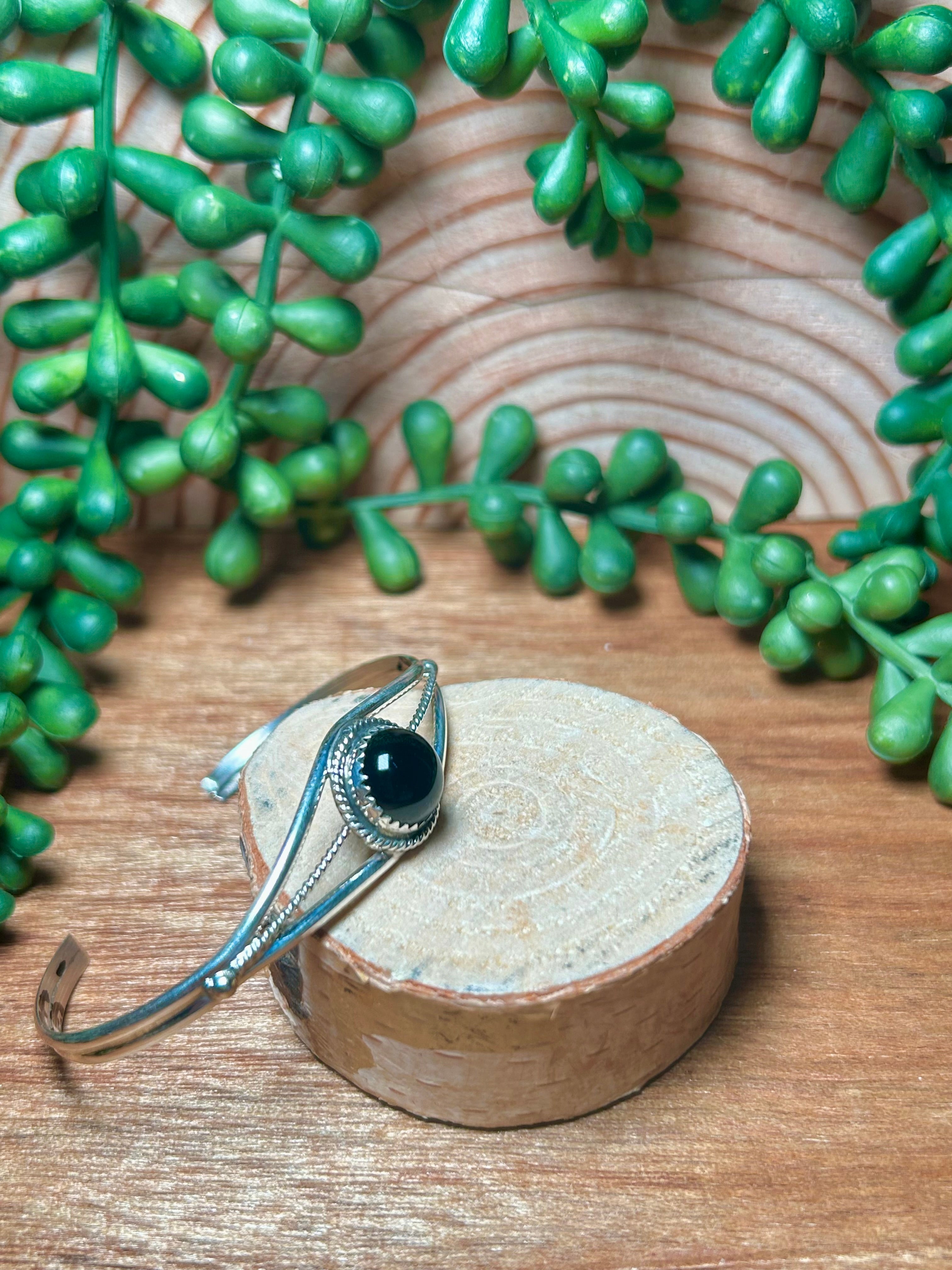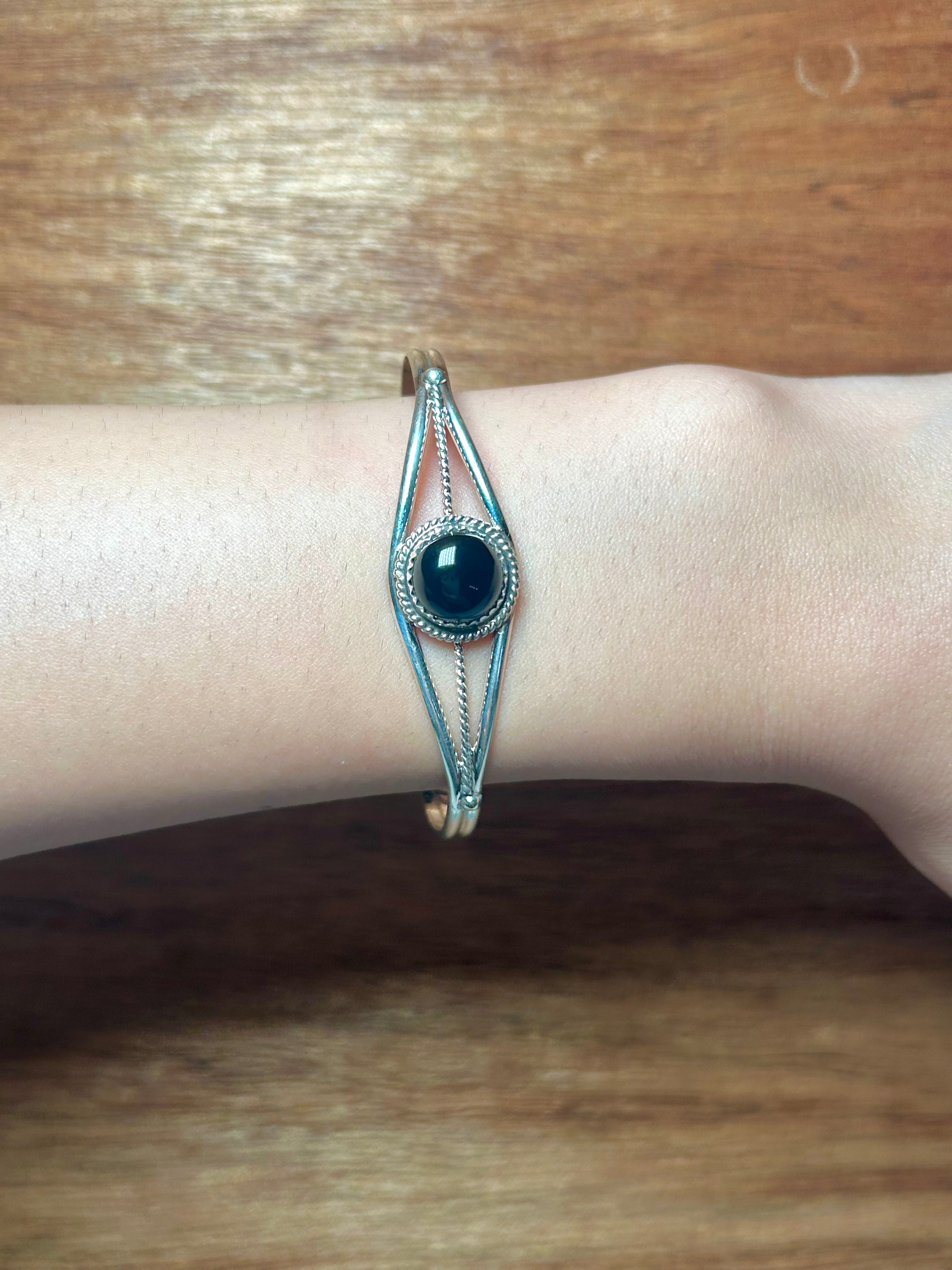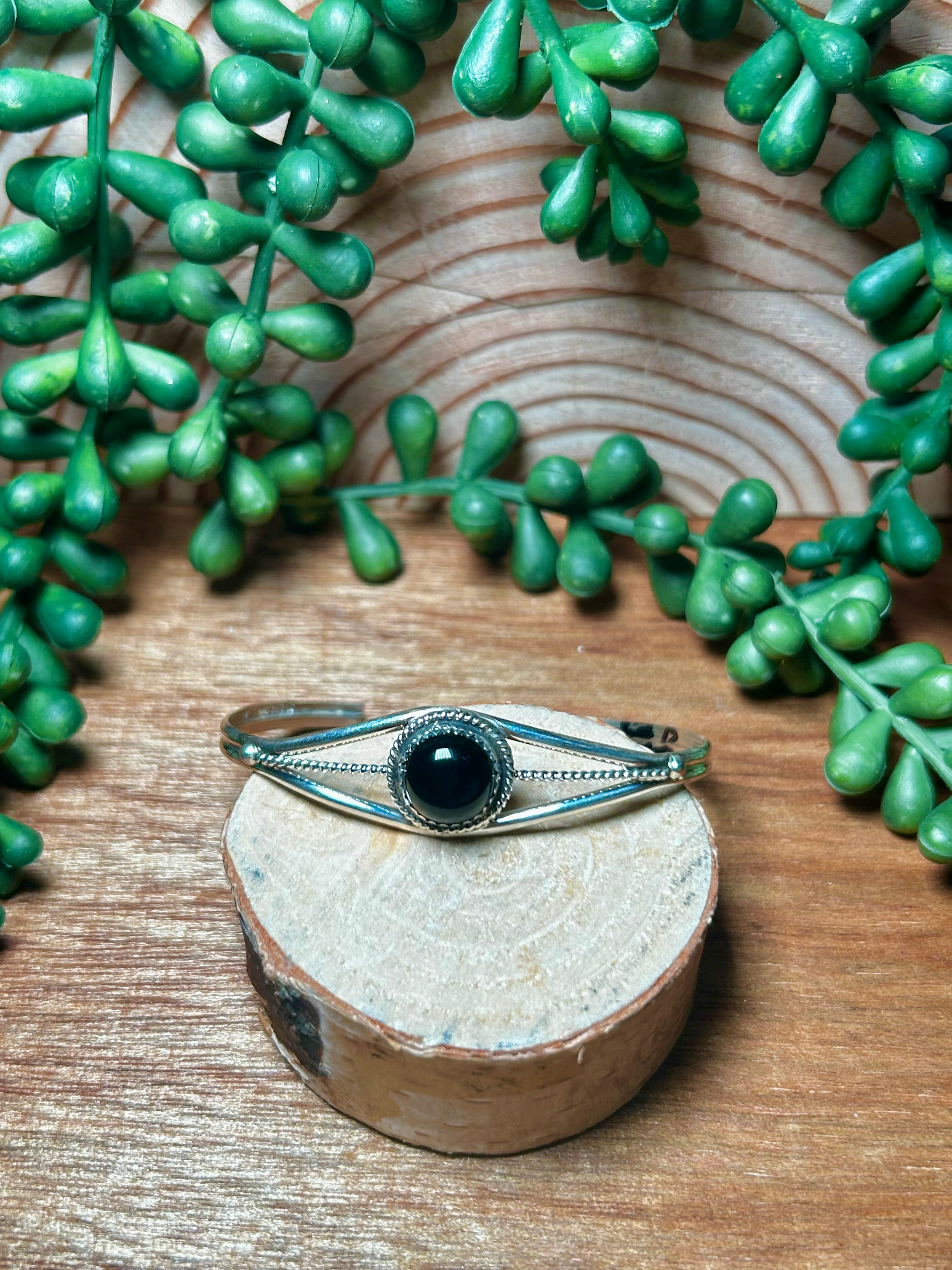 Navajo Made Onyx & Sterling Silver Cuff Bracelet