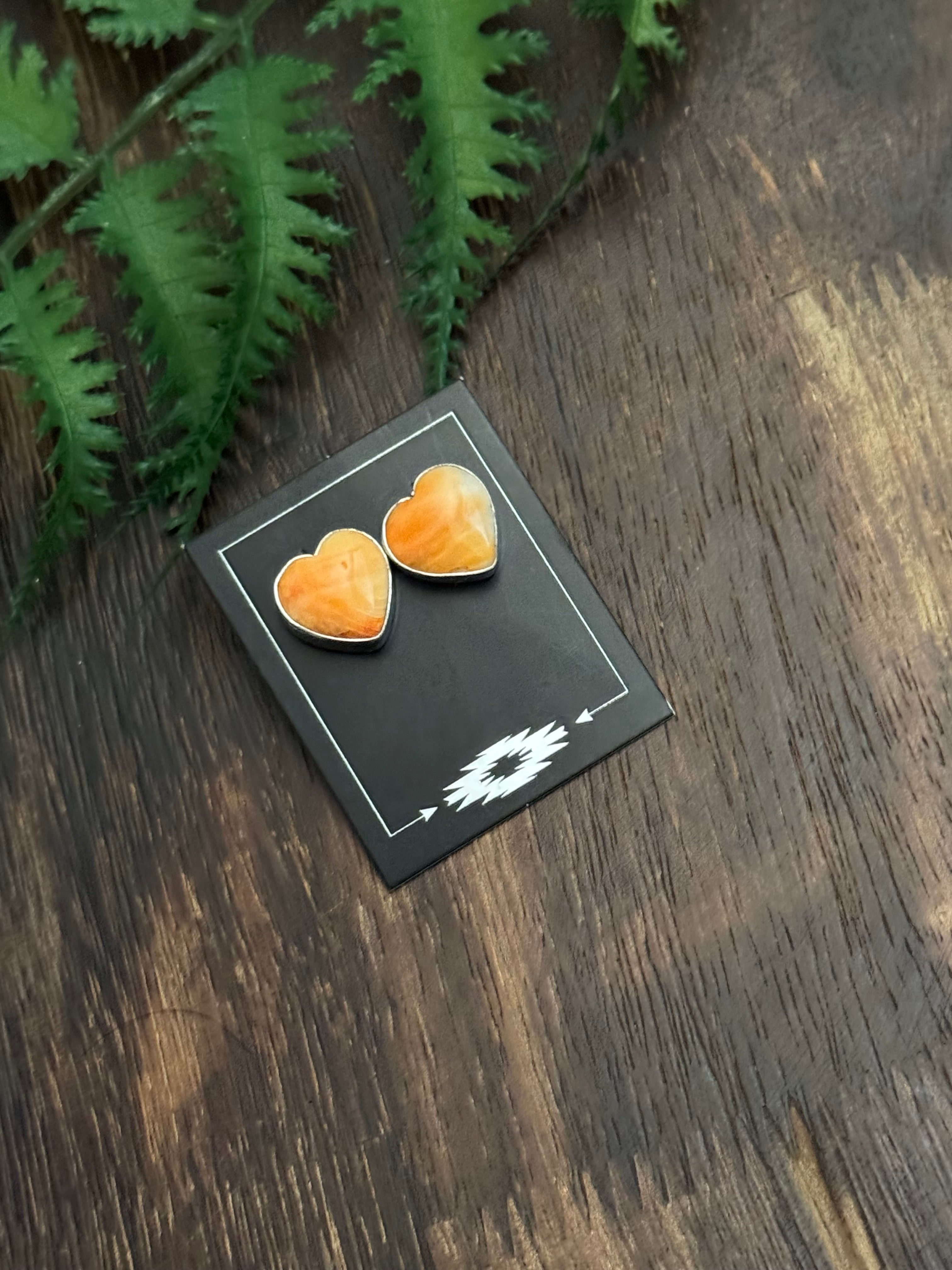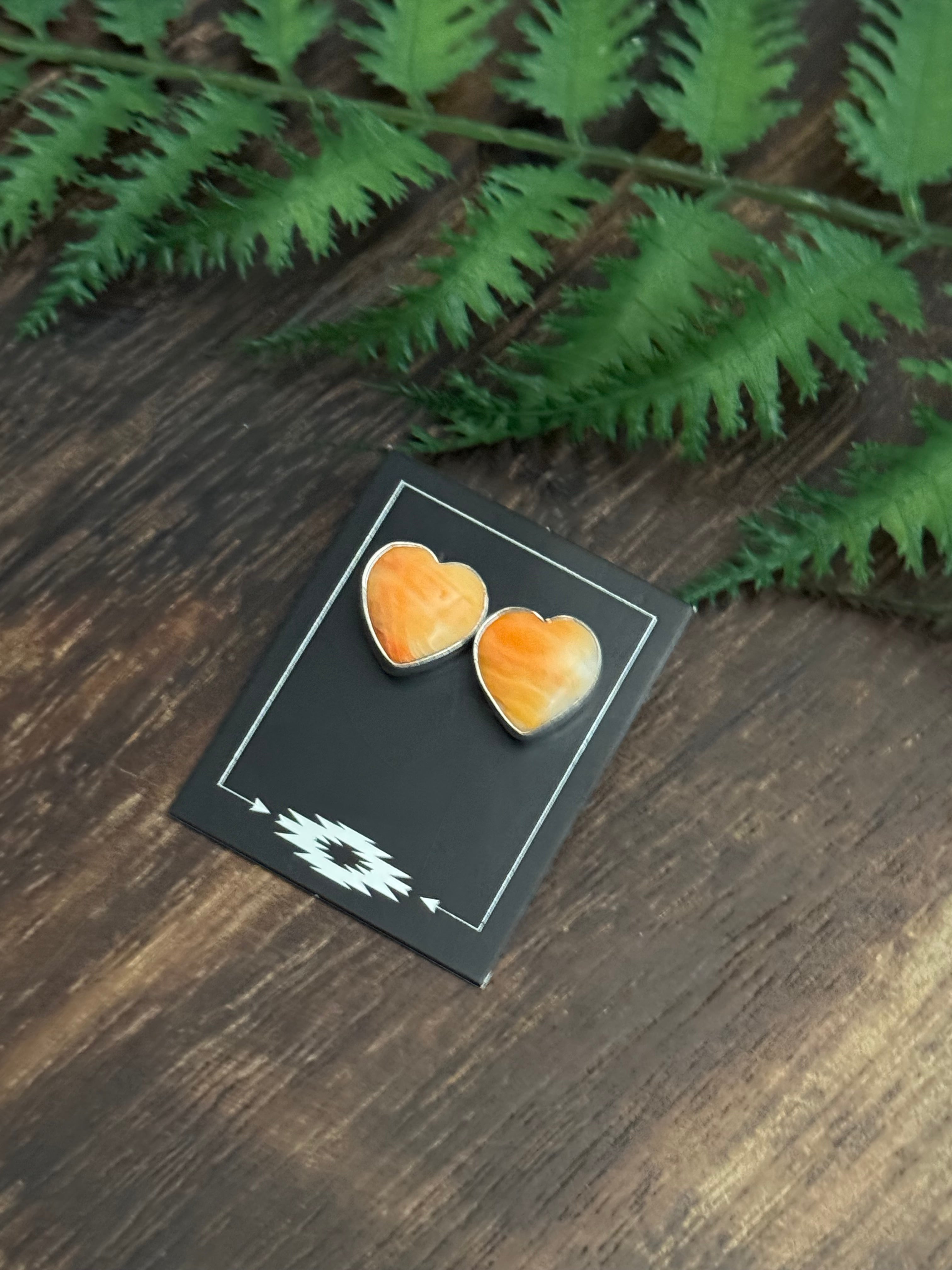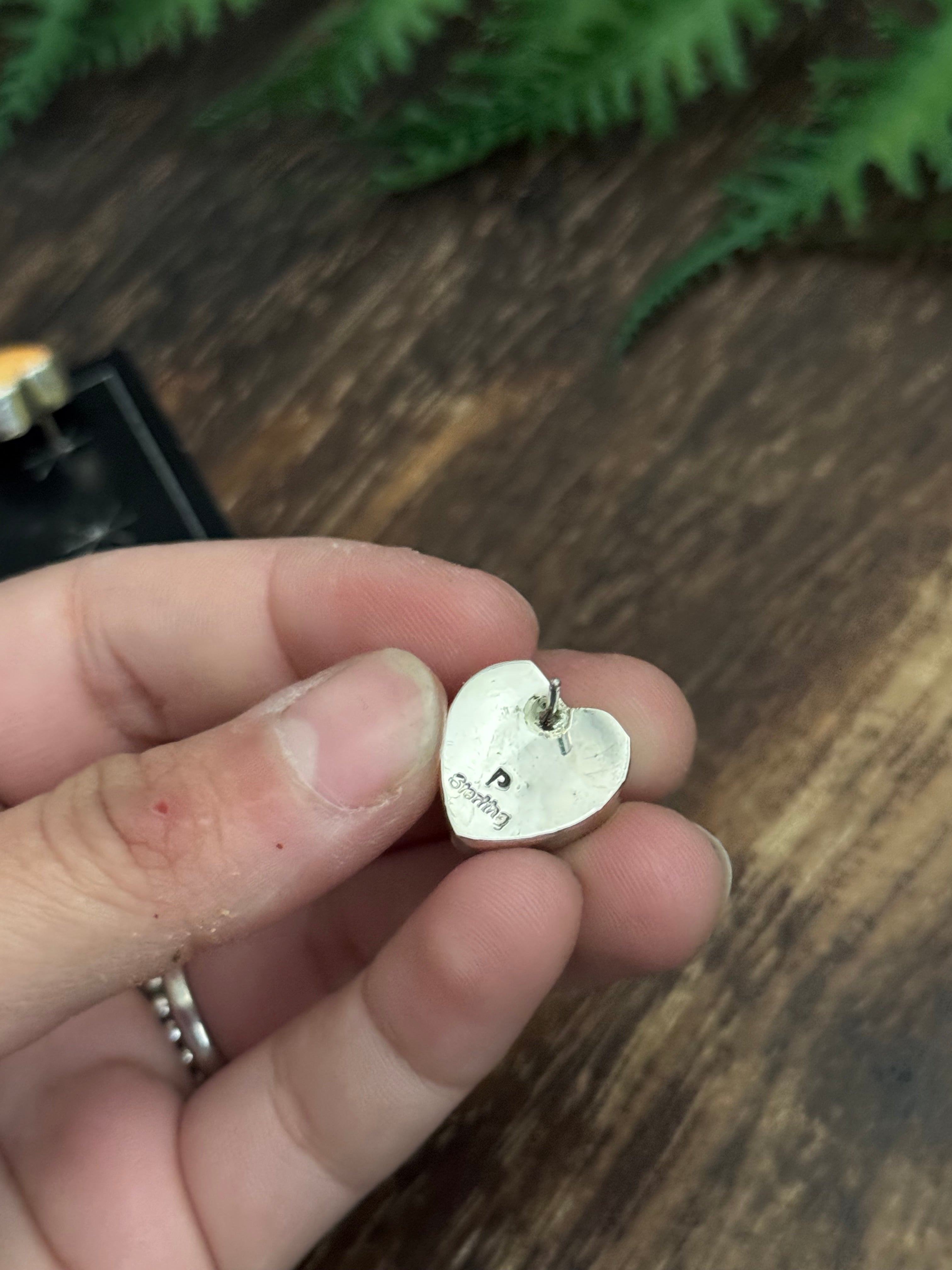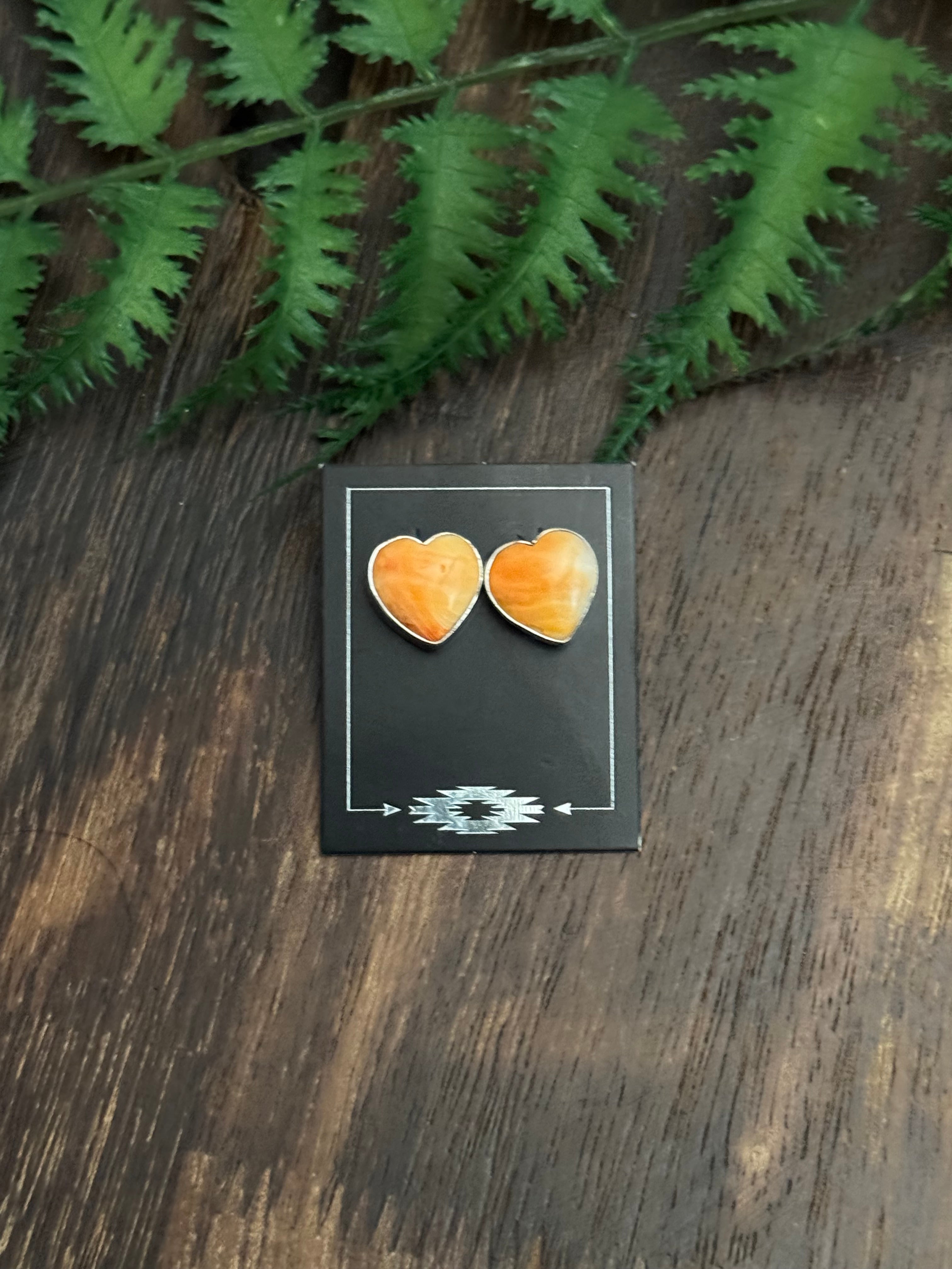 Navajo Made Spiny Oys & Sterling Silver Post Heart Earrings
