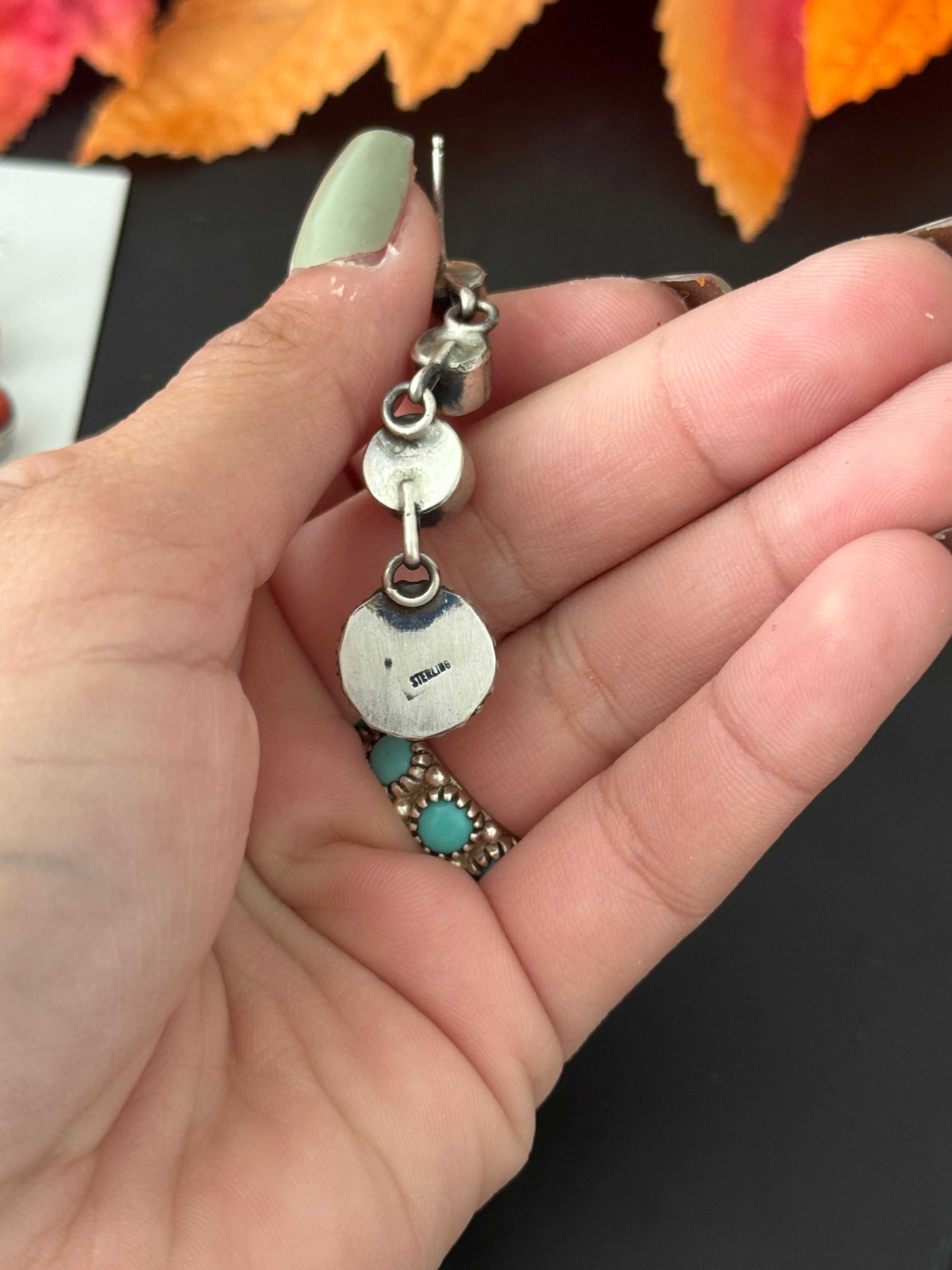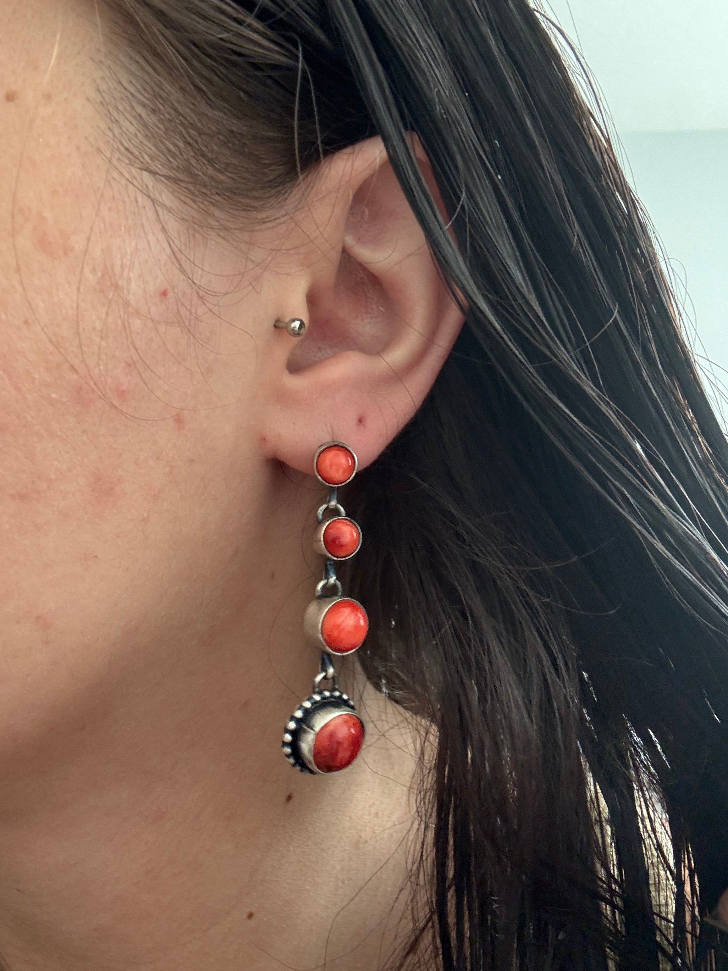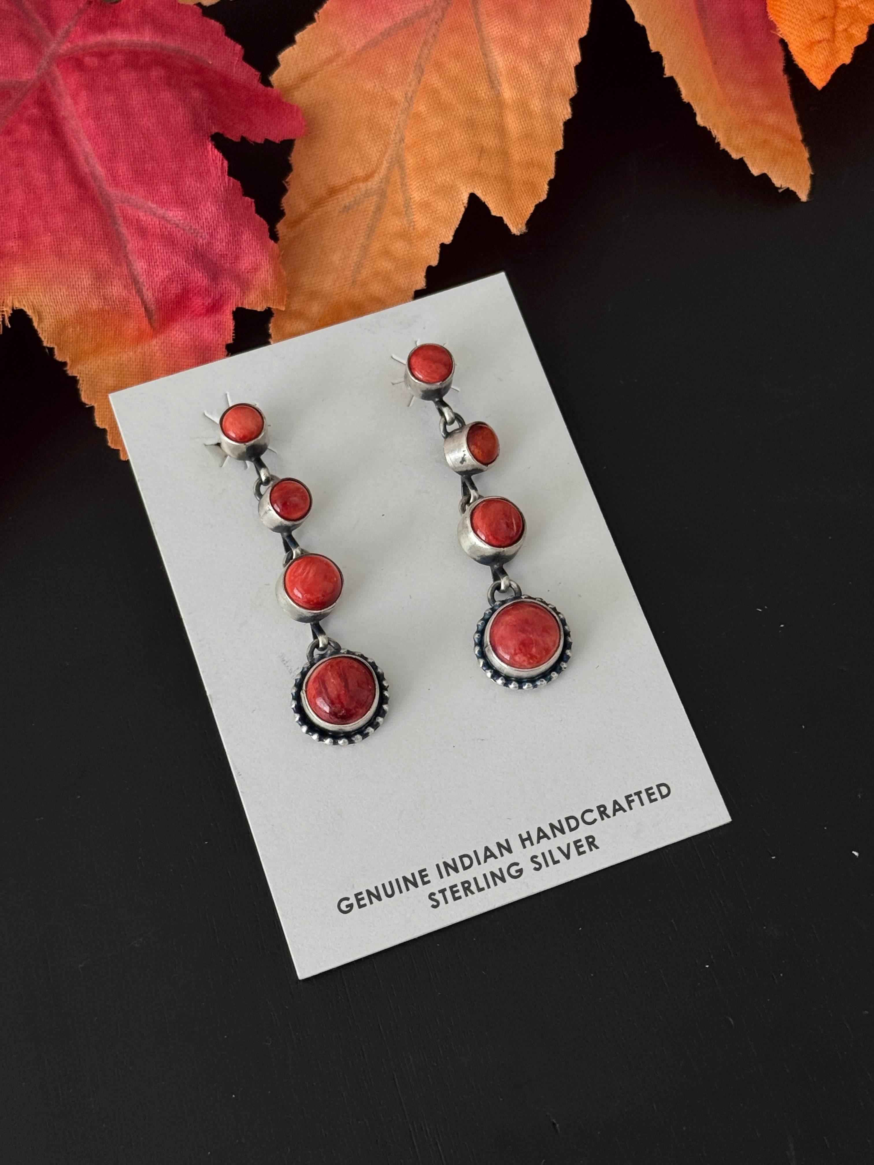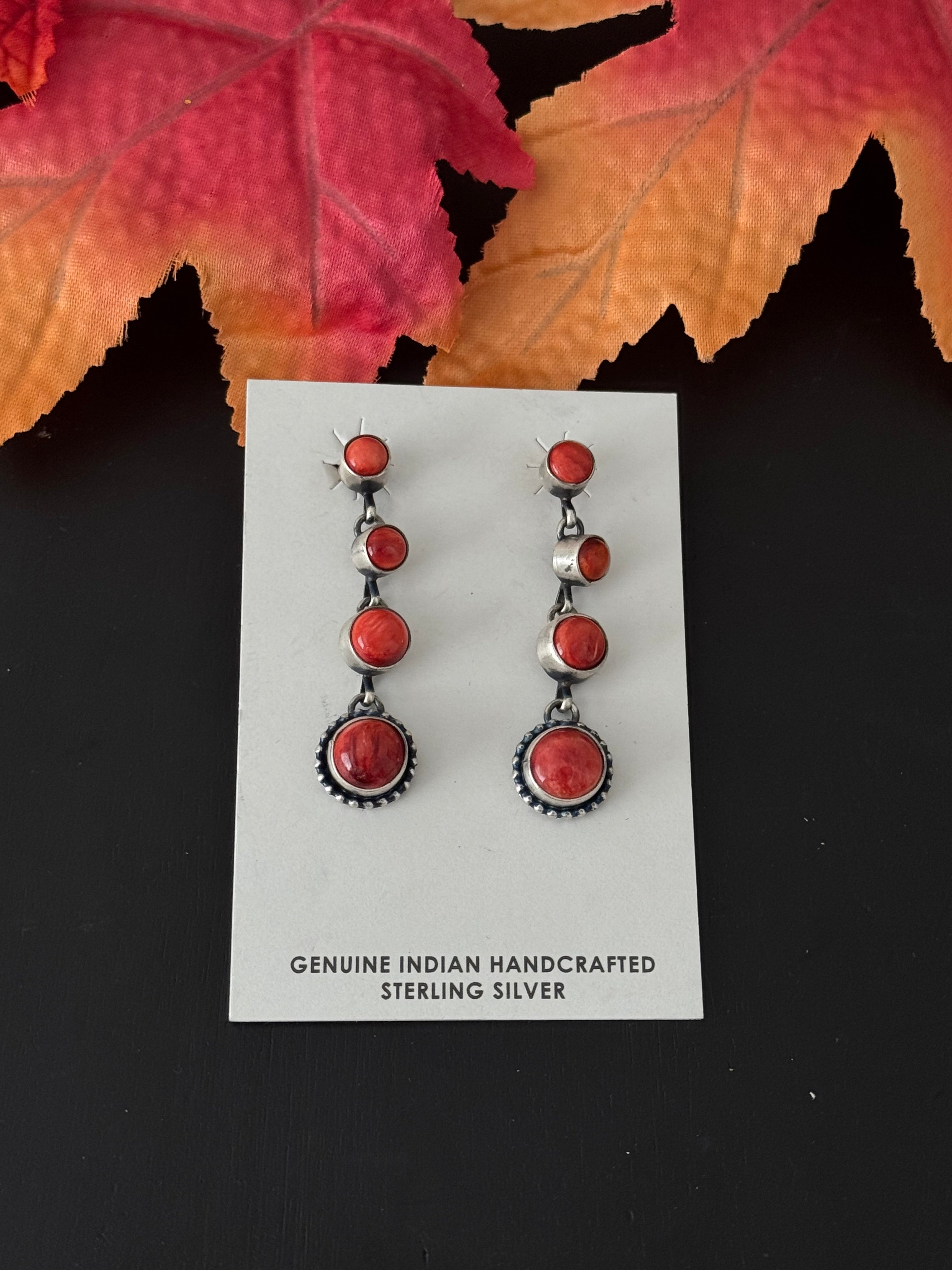 Navajo Made Red Spiny Oyster & Sterling Silver Post Dangle Earrings