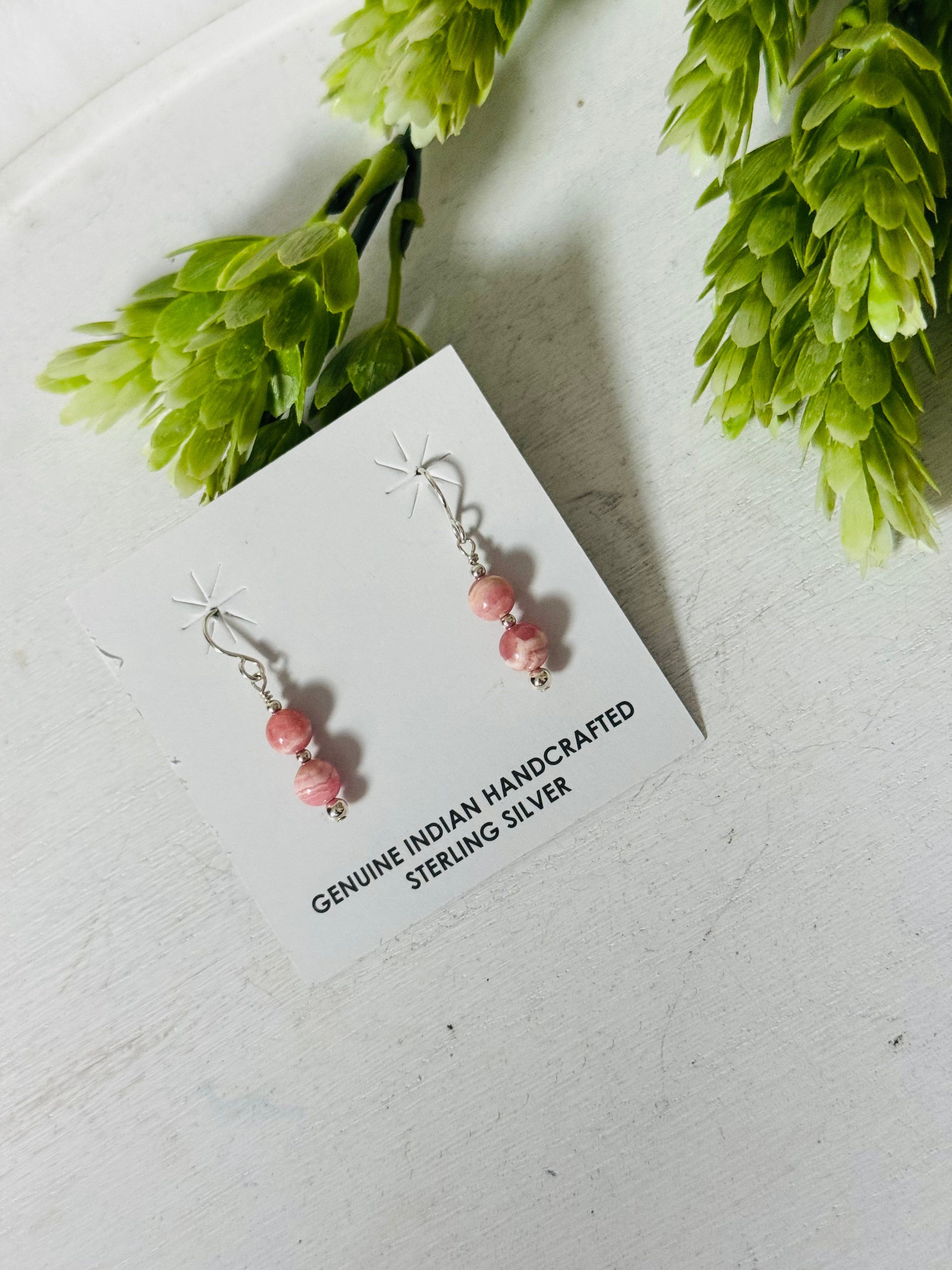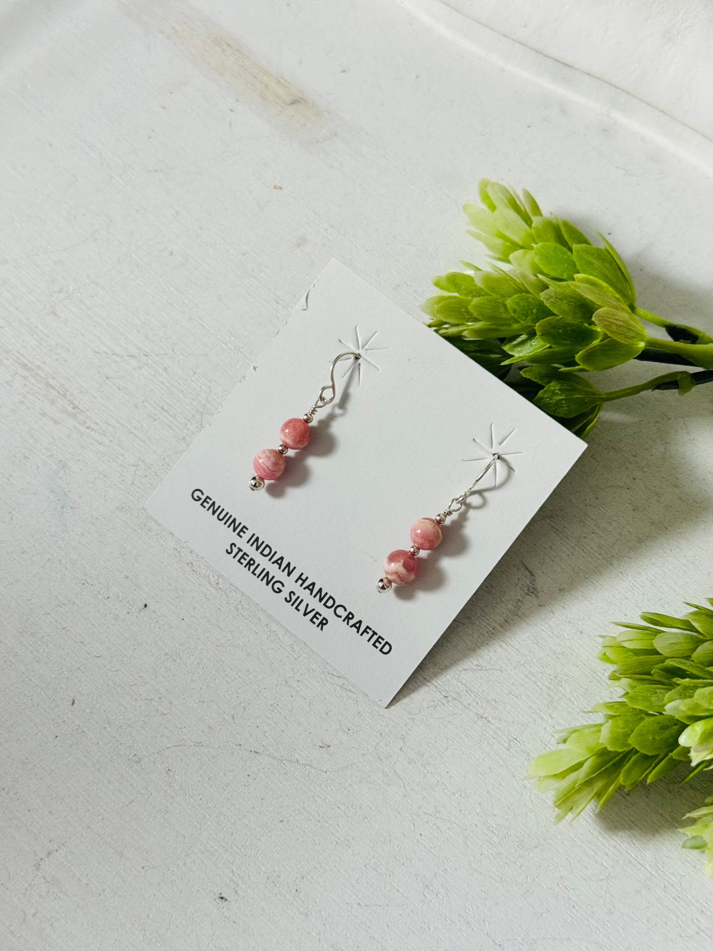 Navajo Made Rhodochrosite & Sterling Silver Dangle Earrings