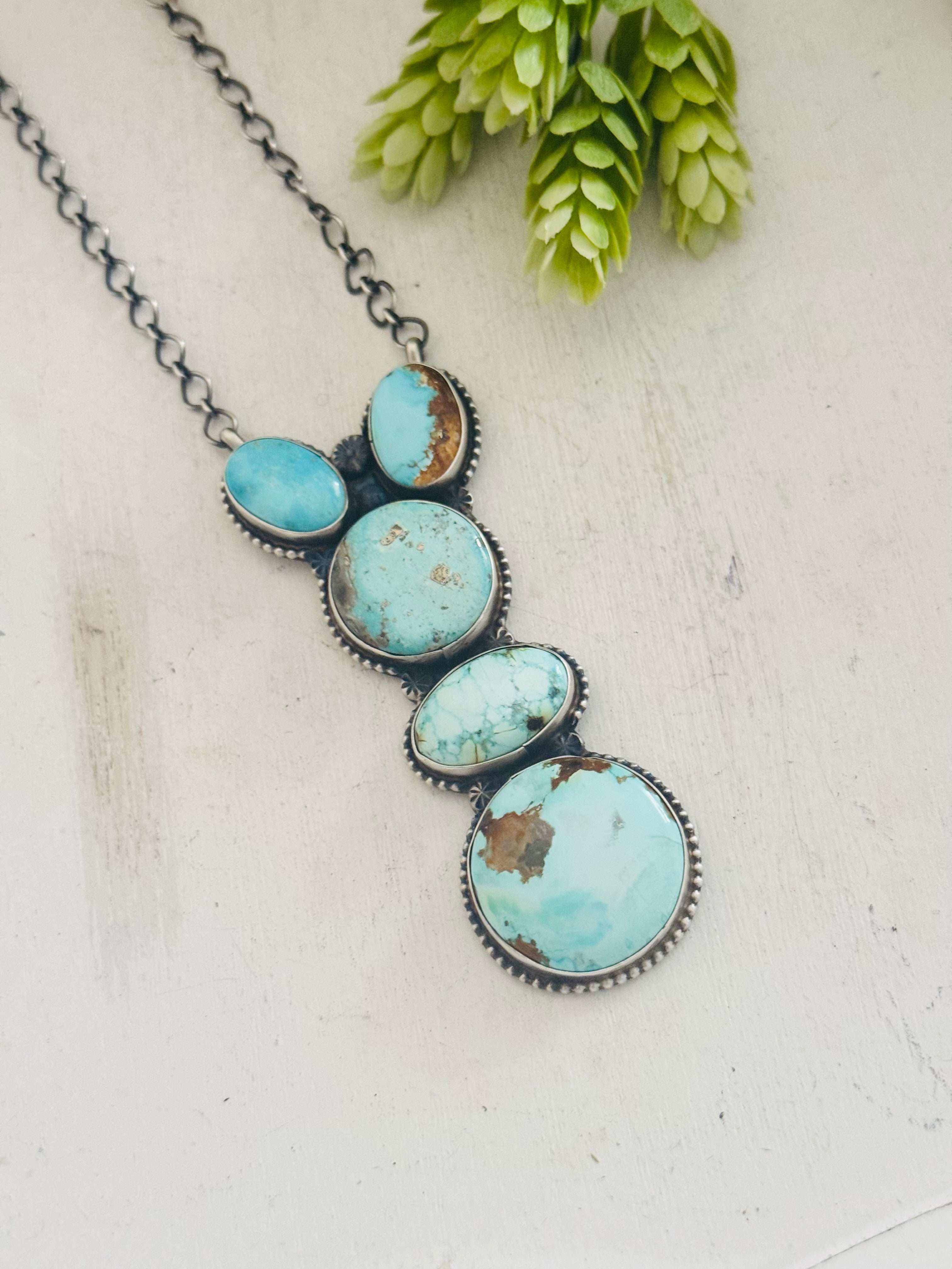 Navajo Made Royston Turquoise & Sterling Silver Cluster Necklace
