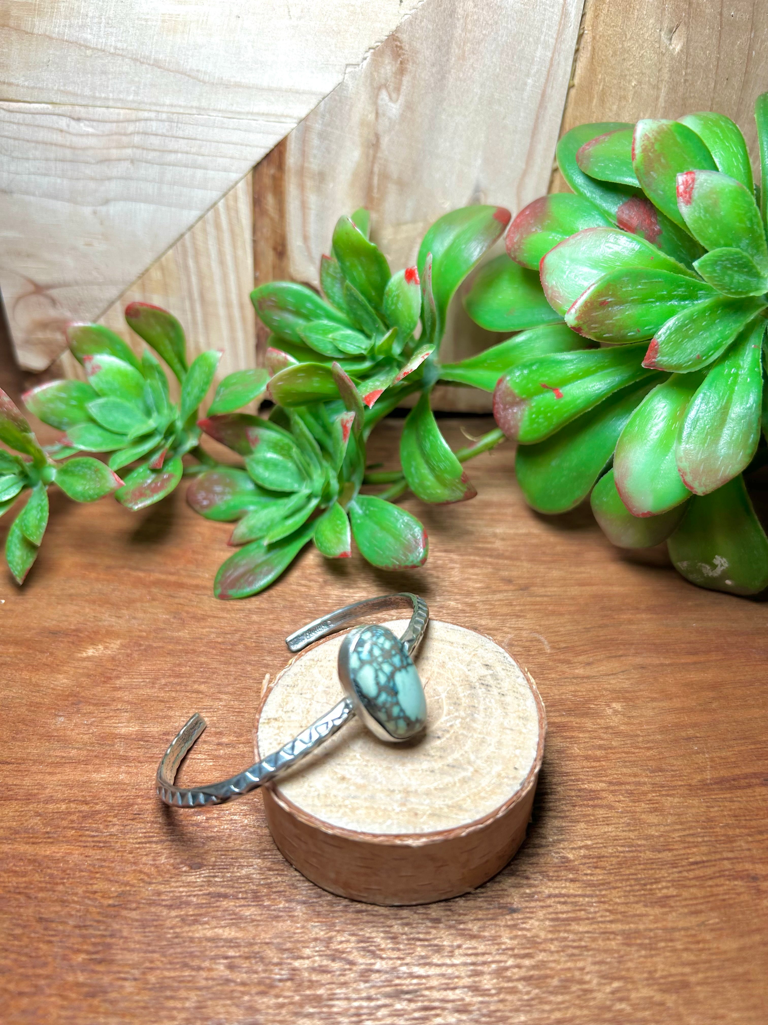 Navajo Made New Lander Varicsite & Sterling Silver Cuff Bracelet