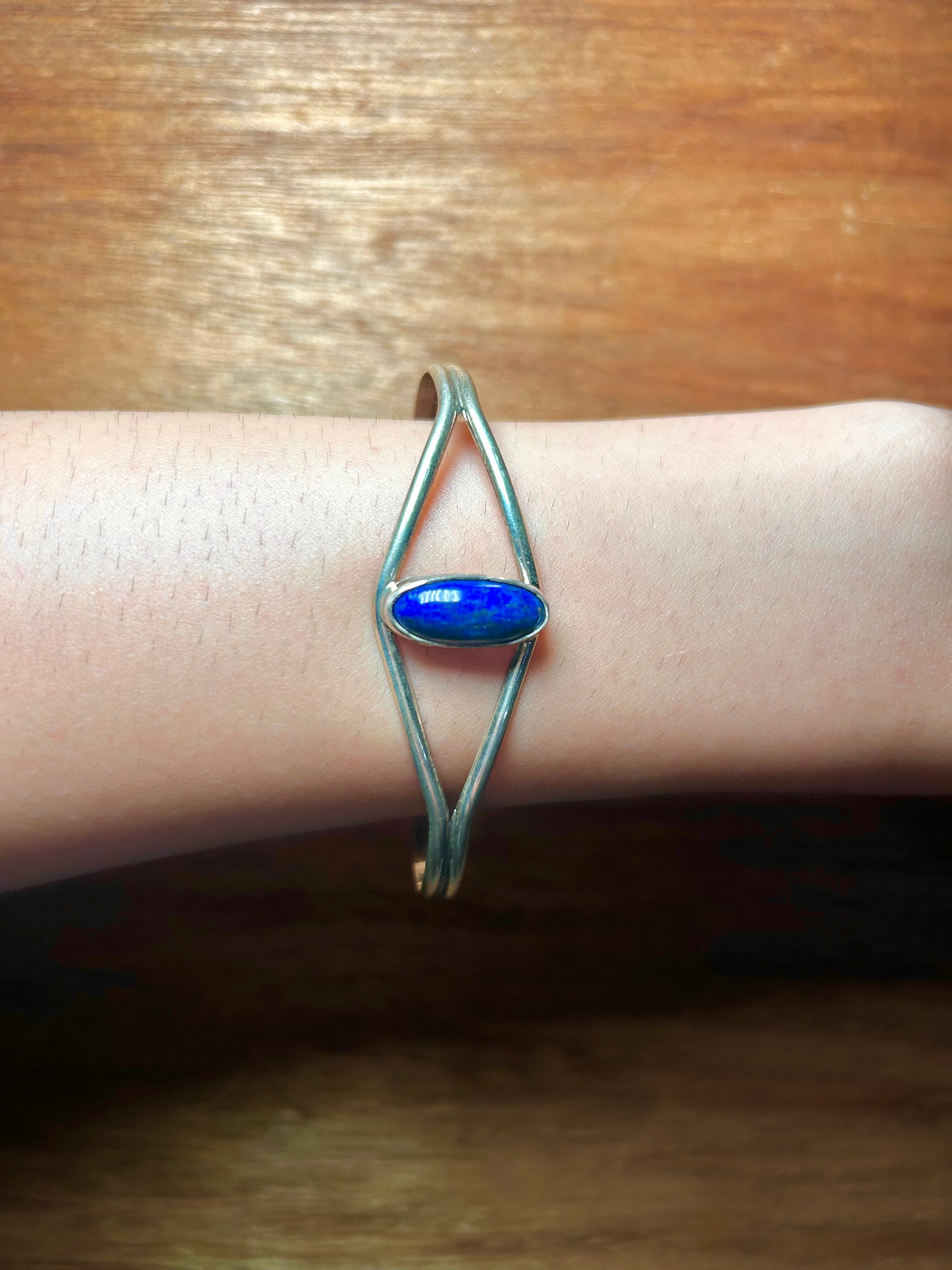 Navajo Made Lapis & Sterling Silver Cuff Bracelet