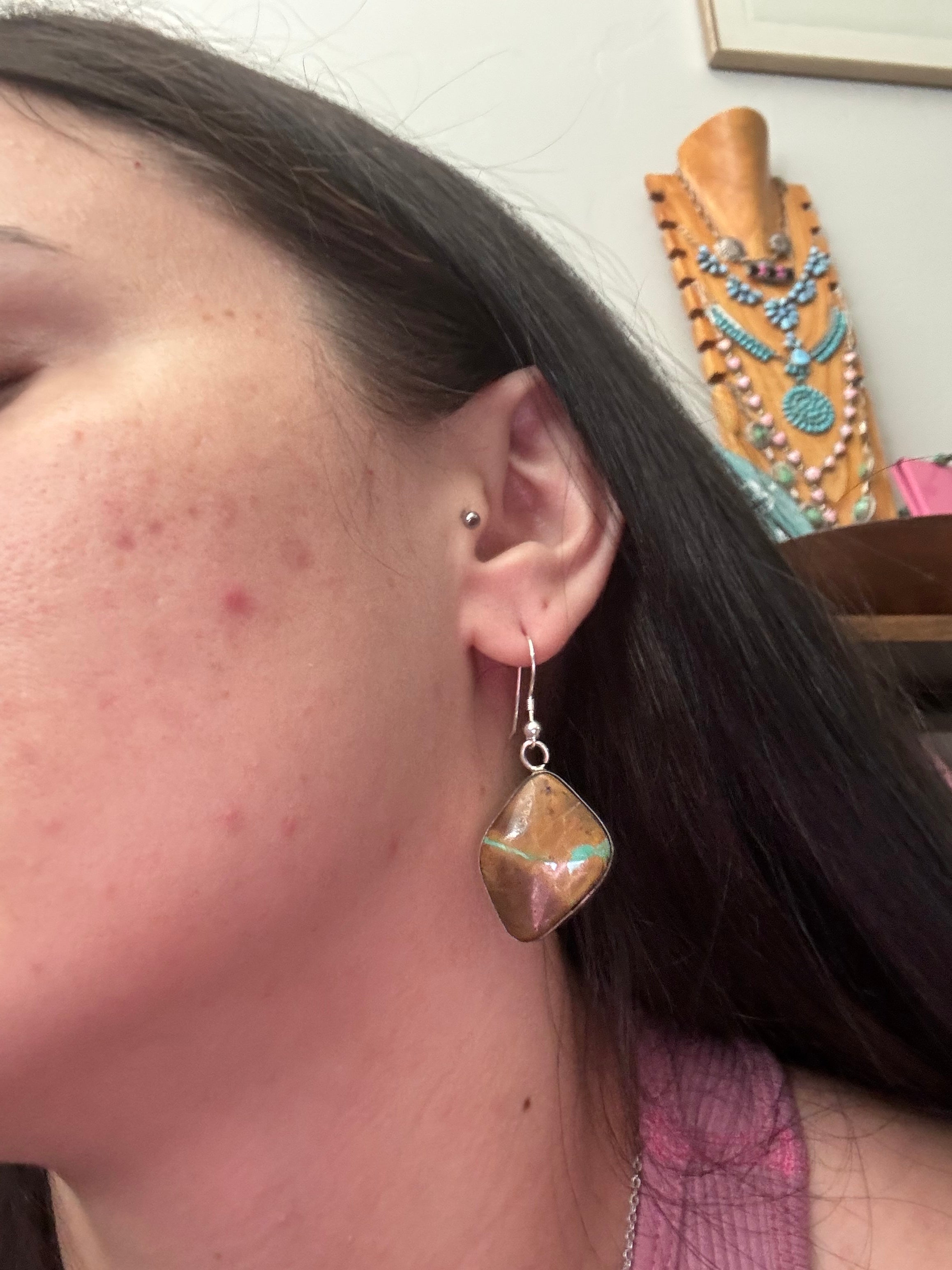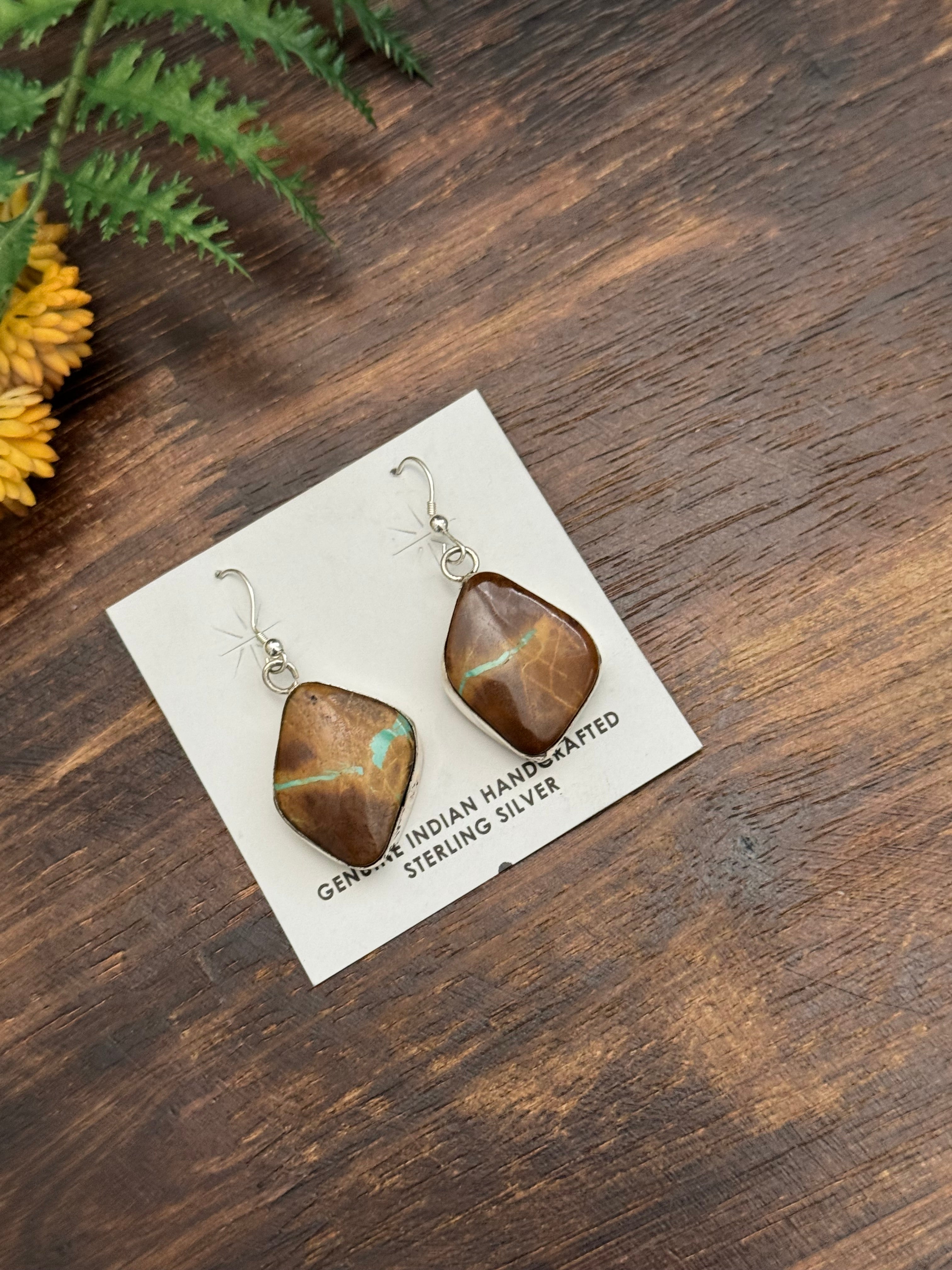 Navajo Made Ribbon Royston Turquoise & Sterling Silver Dangle Earrings