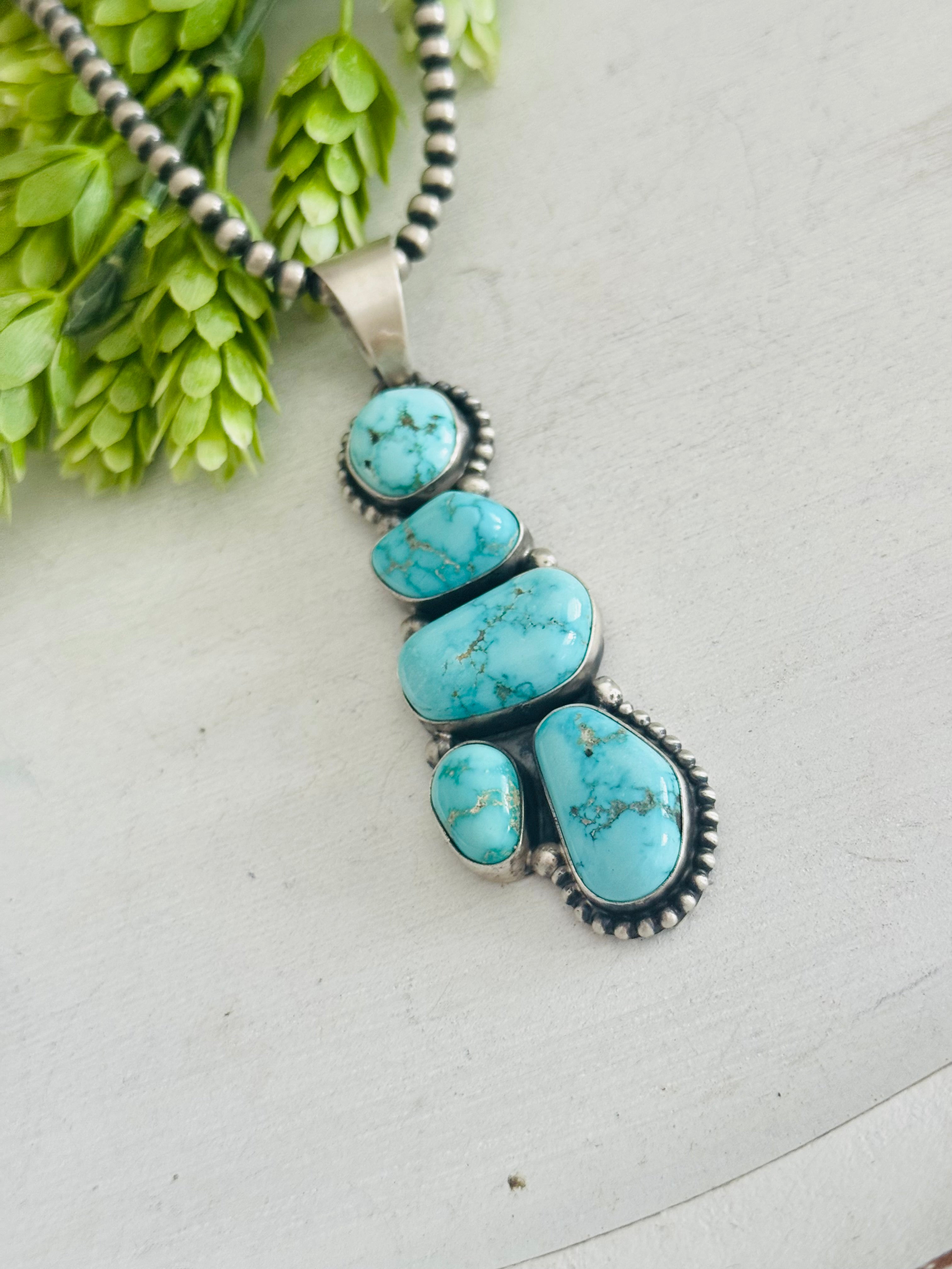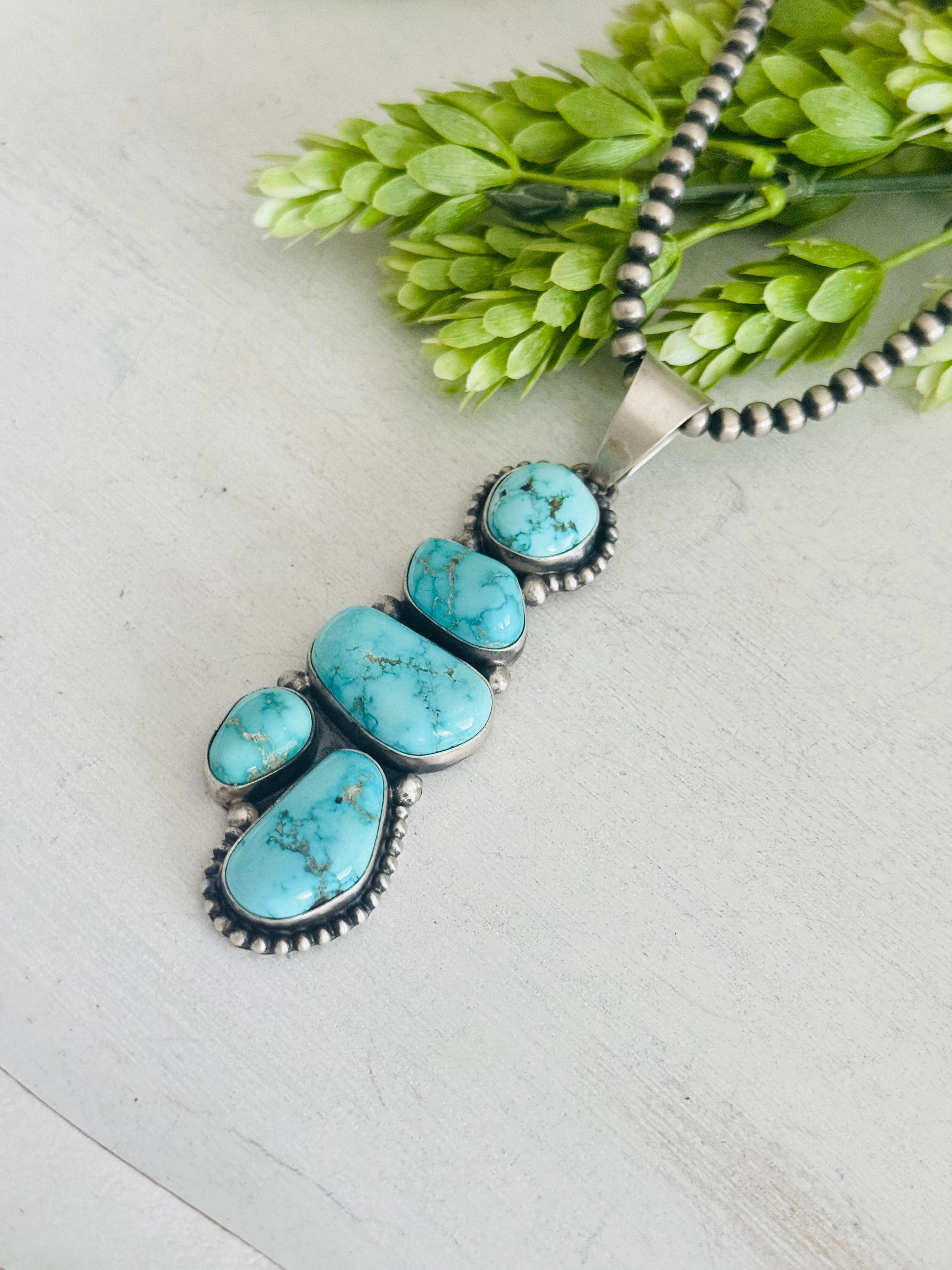 Darrin Livingston Royston Turquoise & Sterling Silver Cluster Pendant. It measures 4 1/8 inches long and 1 1/8 inches wide. Signed by the artist and stamped sterling silver. Pendant only!