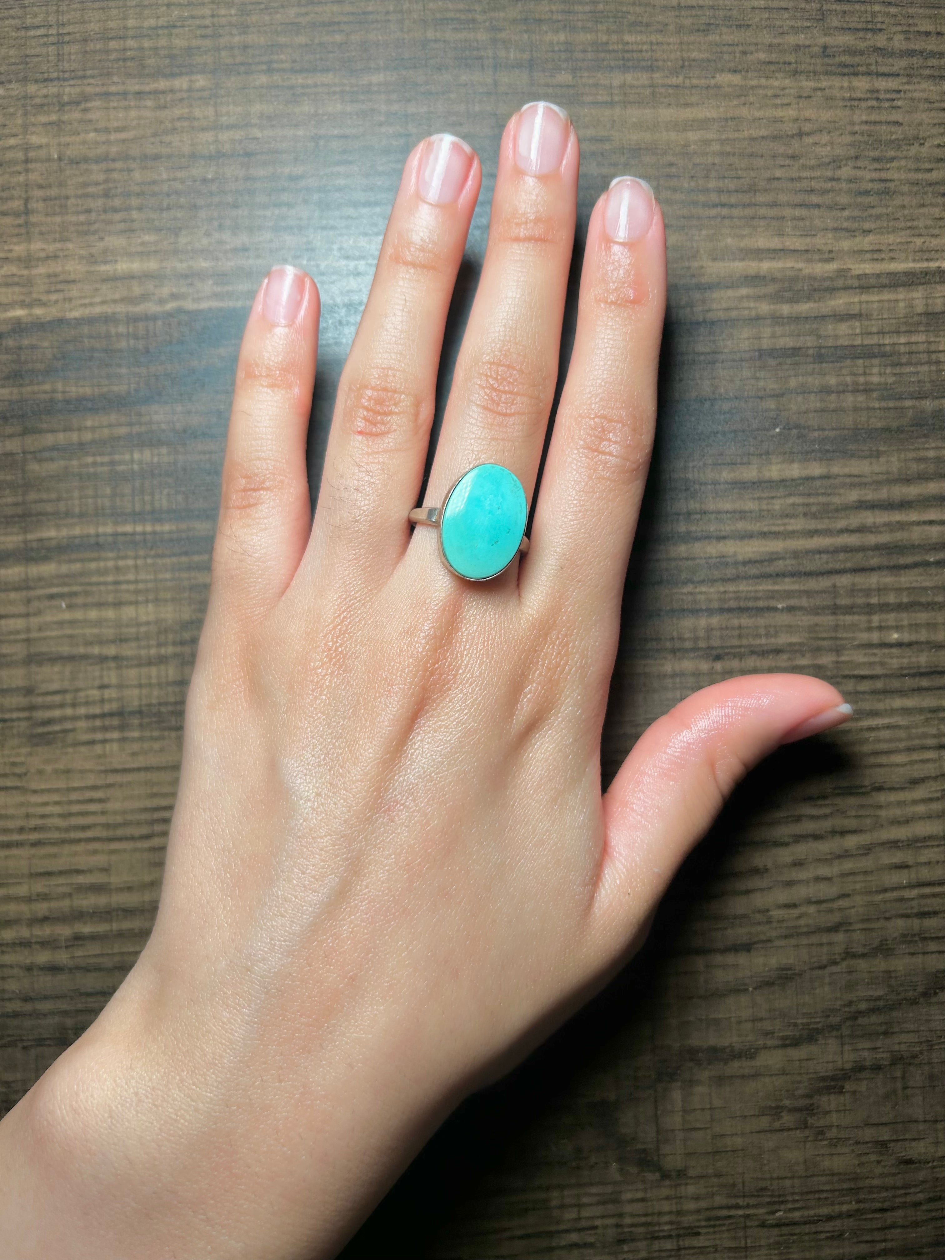 Navajo Made Royston Turquoise & Sterling Silver Ring Size 8.75