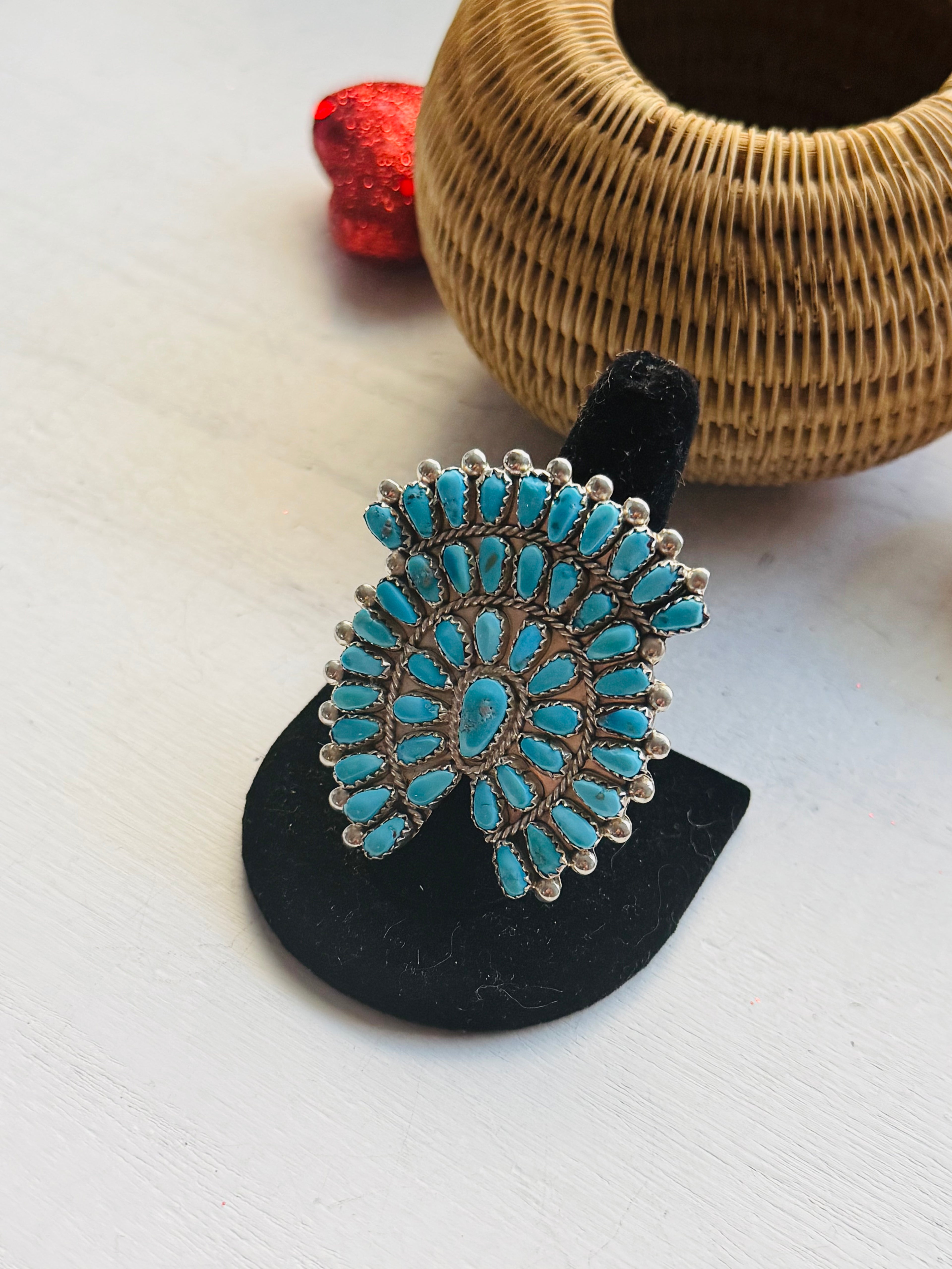 Navajo Made Sleeping Beauty & Sterling Silver Cluster Adjustable Ring