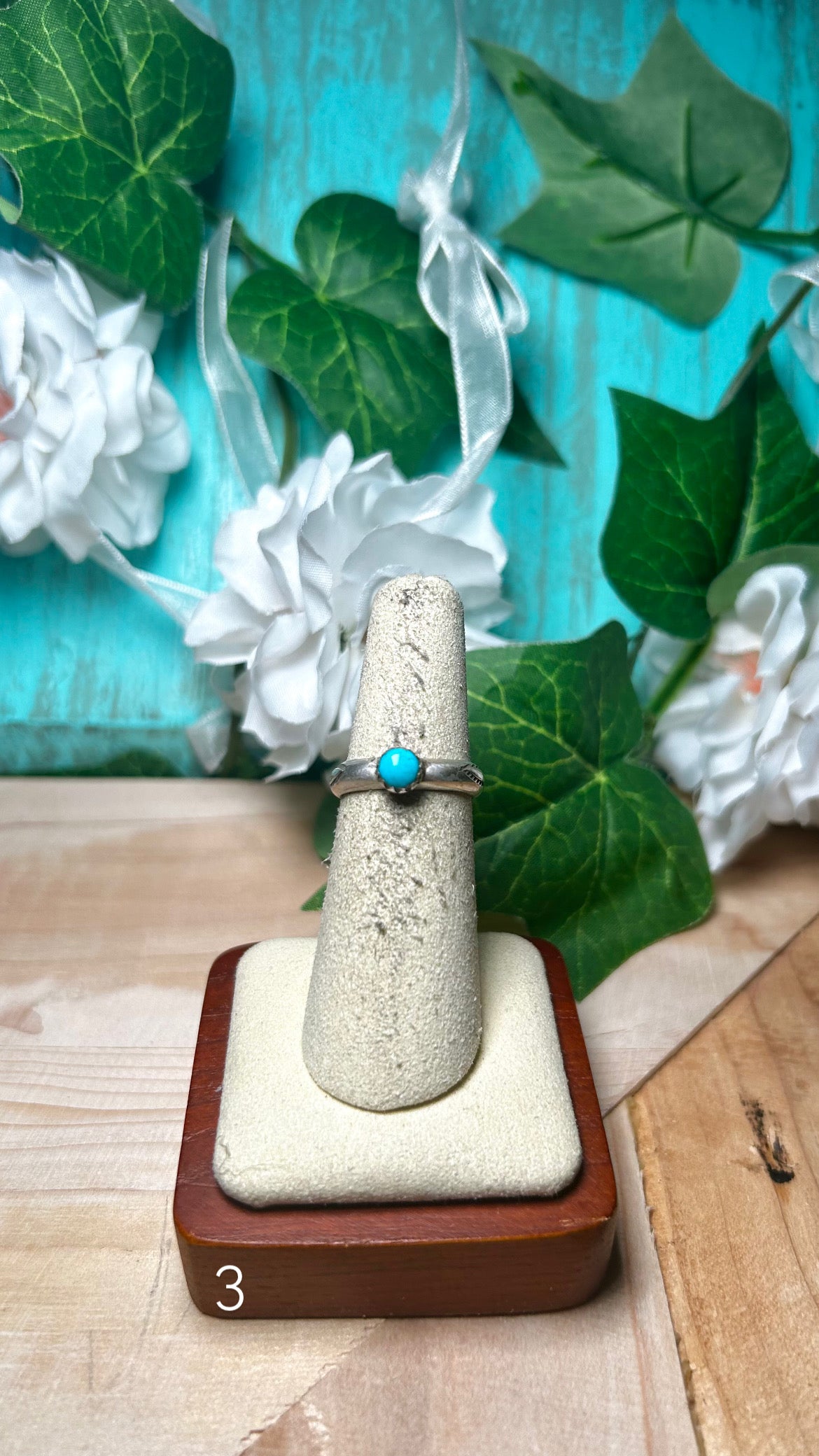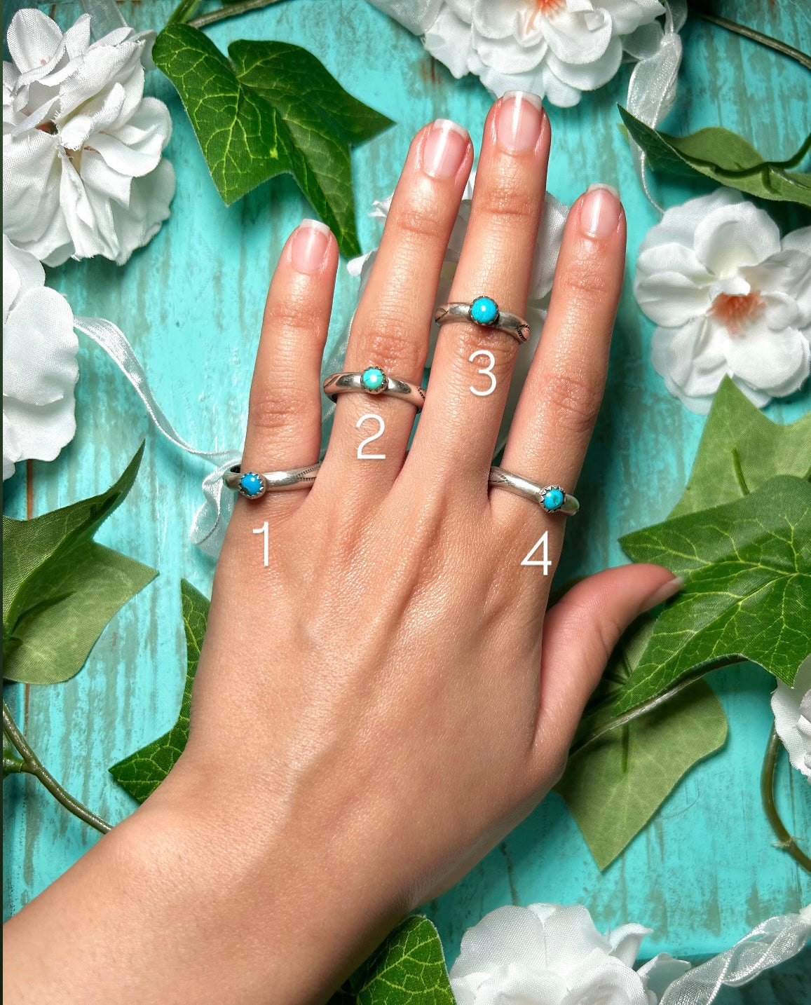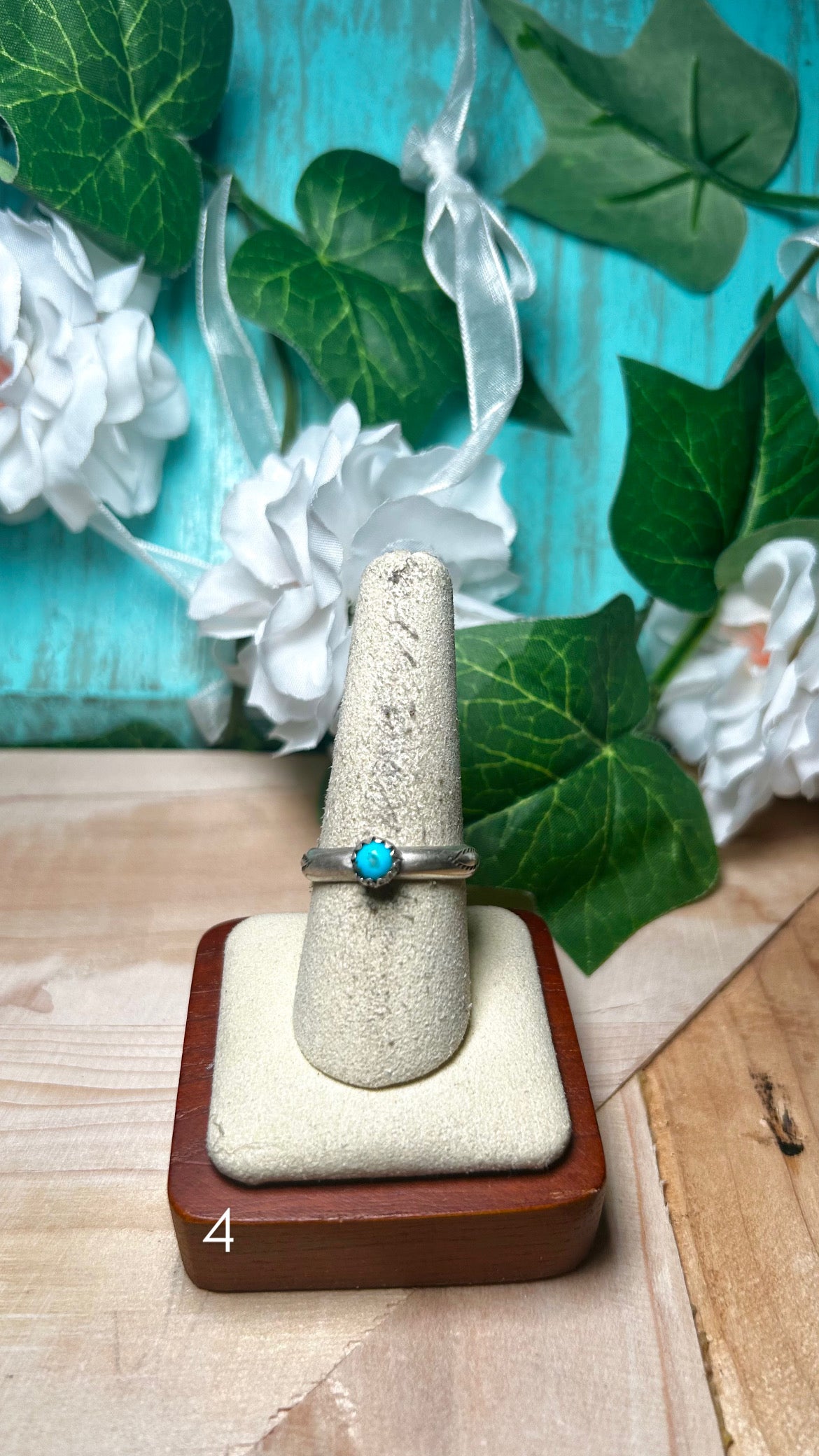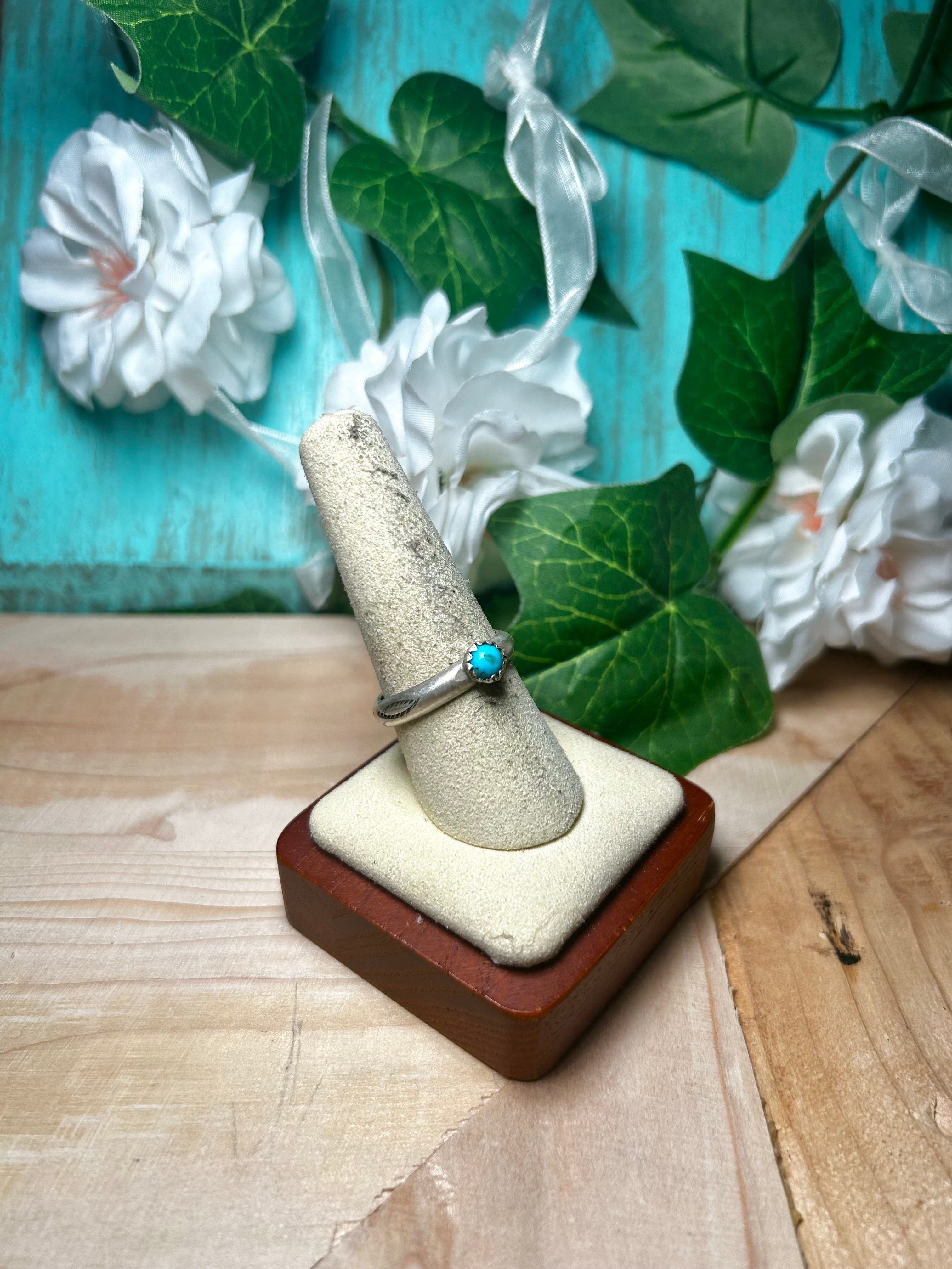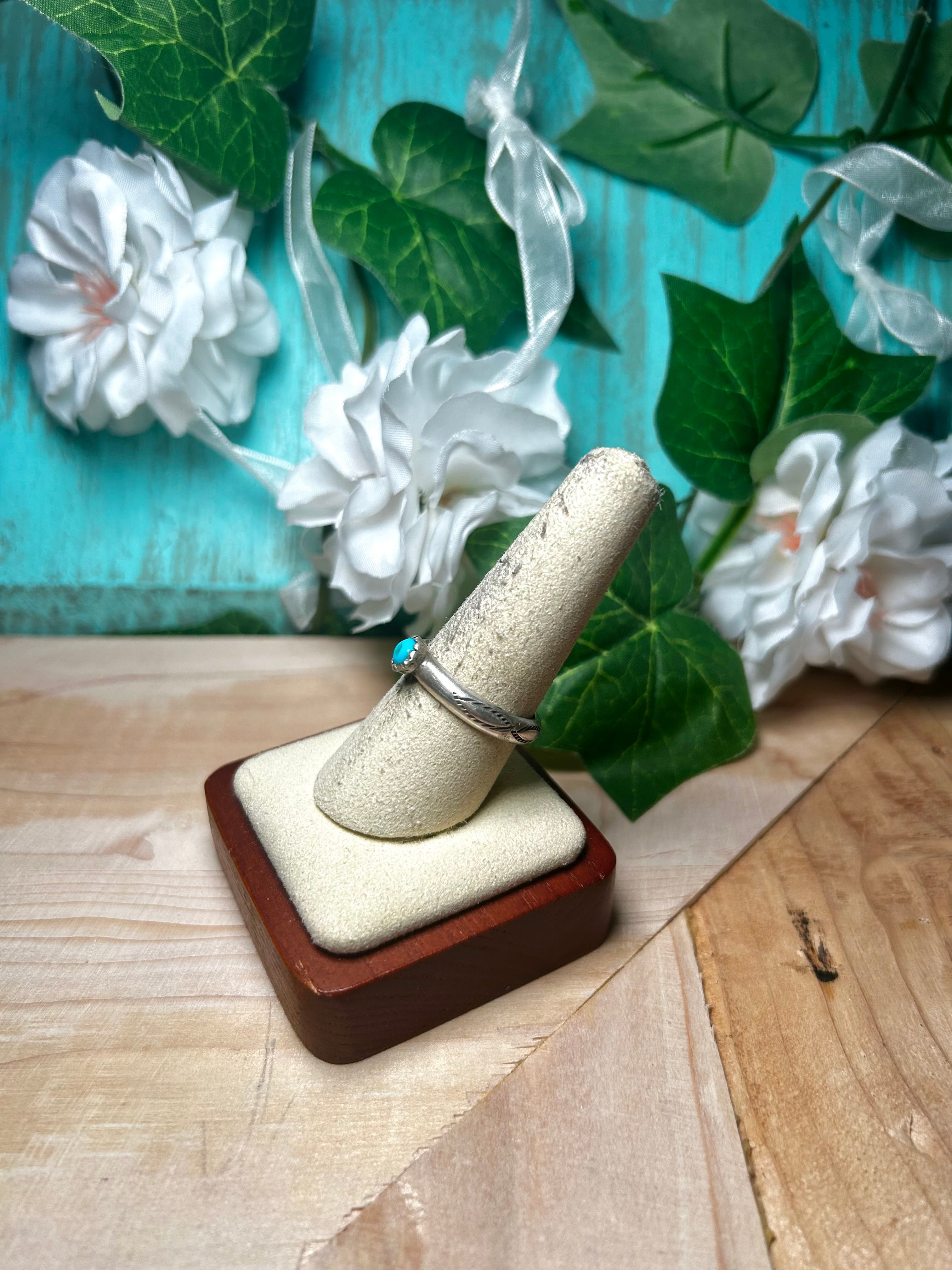 Navajo Made Kingman Turquoise & Sterling Silver Ring. It measures 1/4 of an inch long and 1/4 of an inch wide. Stamped sterling silver and signed. Stones will differ due to natural stones.d