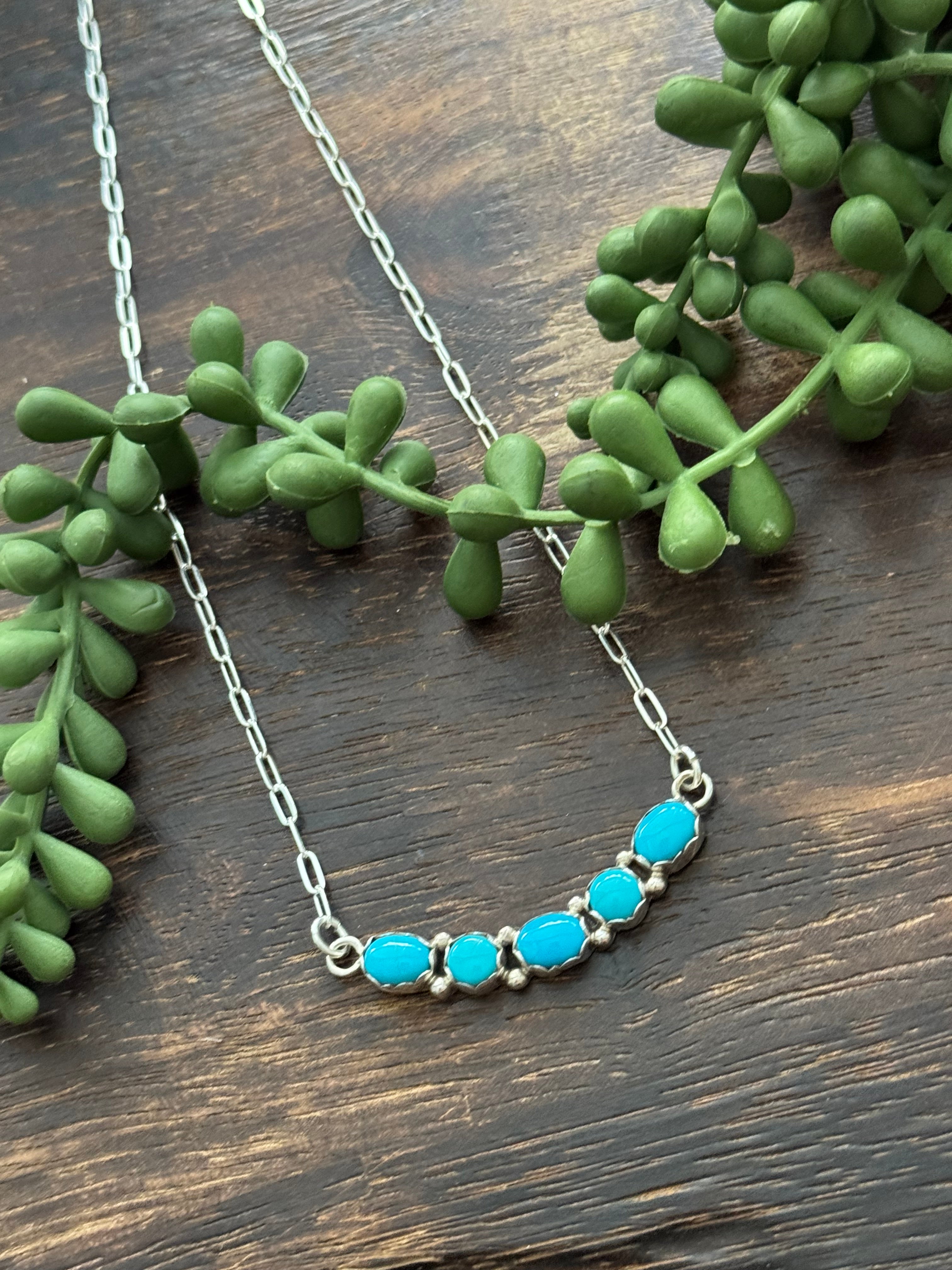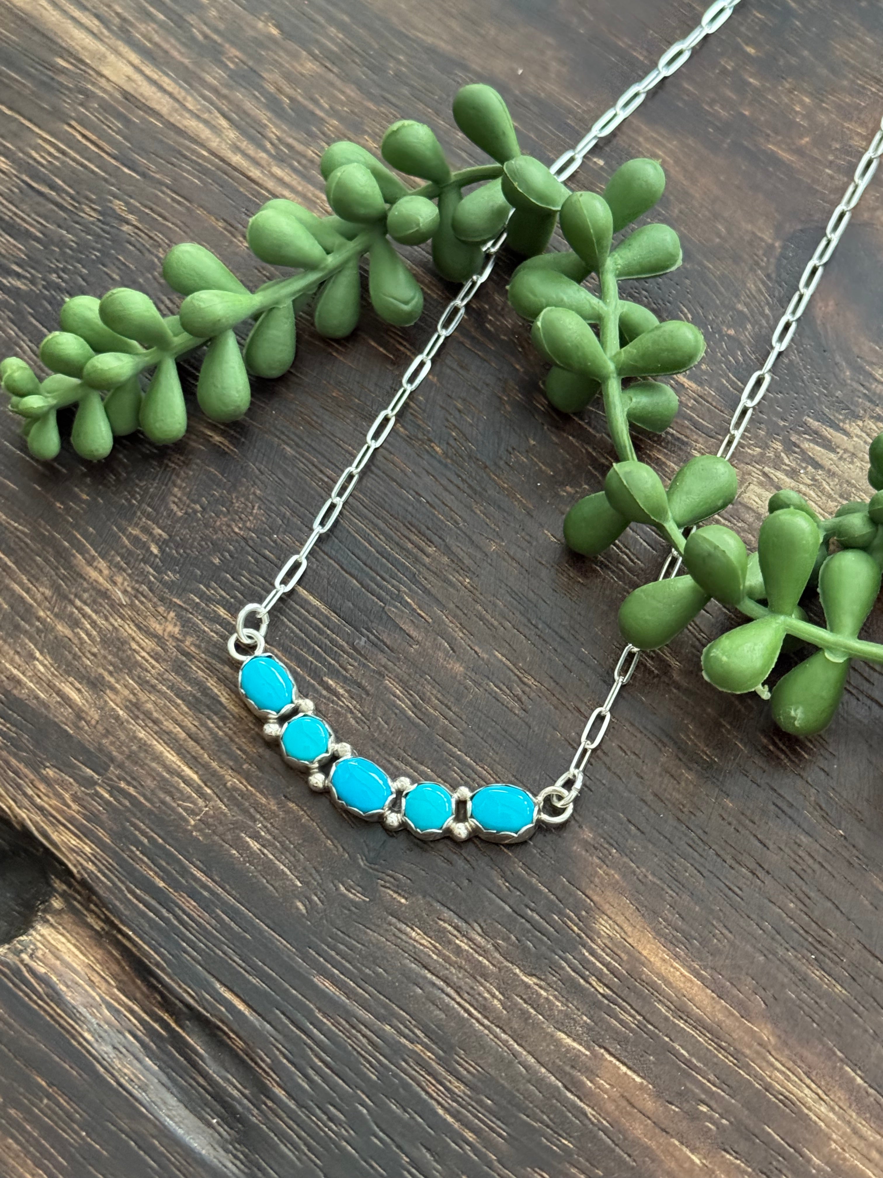 Navajo Made Sleeping Beauty Turquoise & Sterling Sliver Bar Necklace