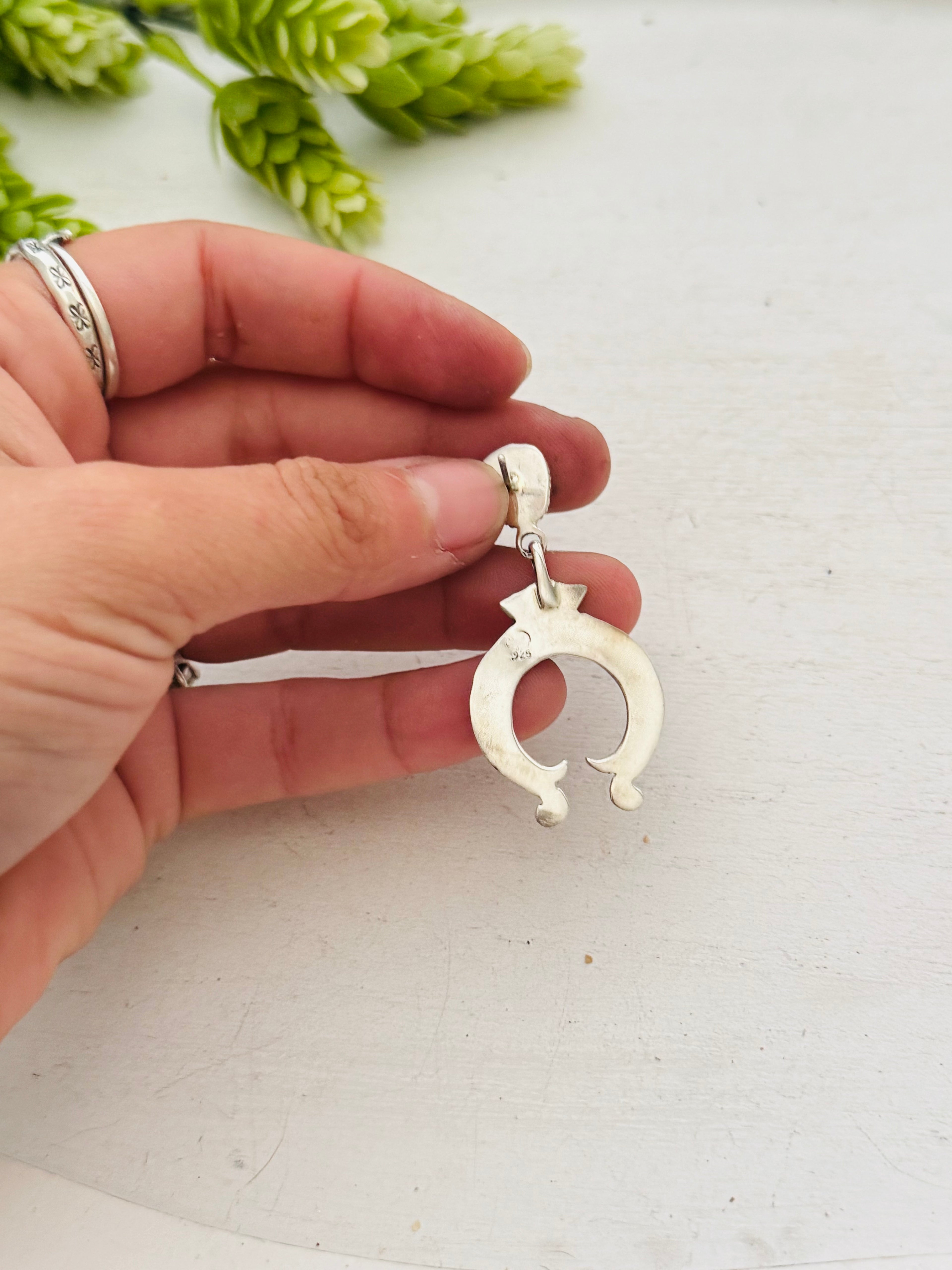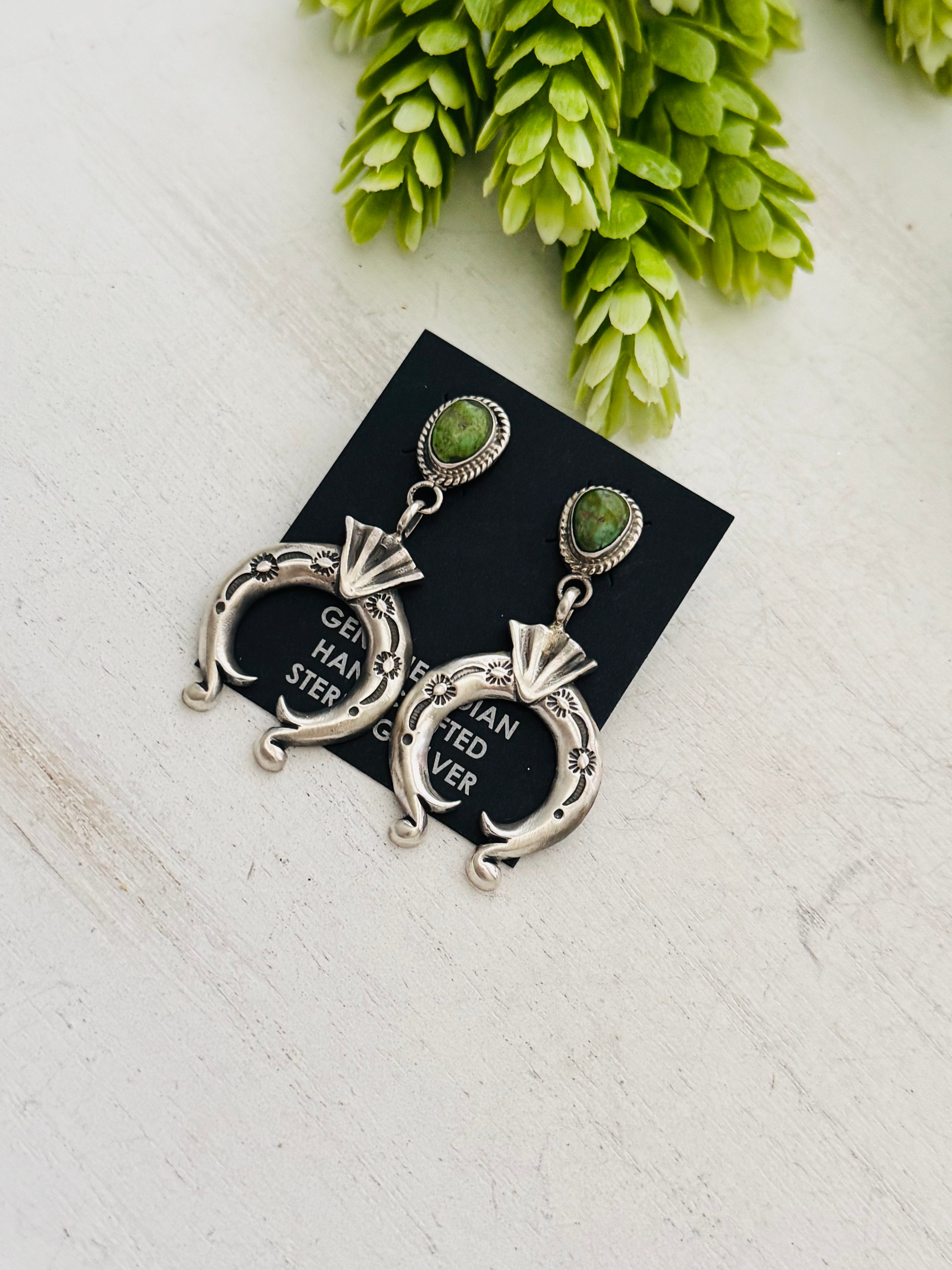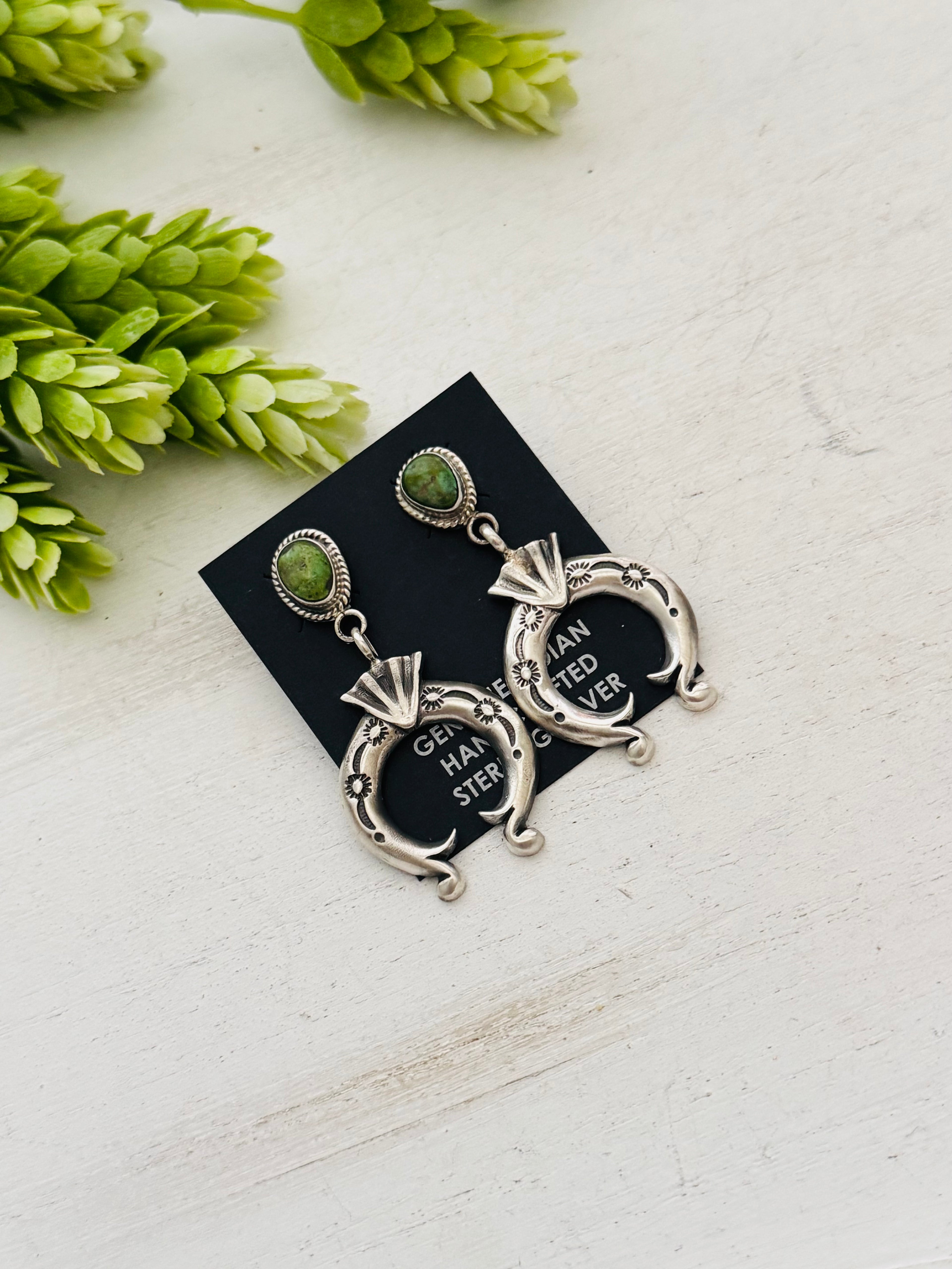 Navajo Made Sonoran Gold & Sterling Silver Post Dangle Earrings. It measures 1 7/8 inches long and just under 1 inch wide. Signed by artist and stamped sterling silver.