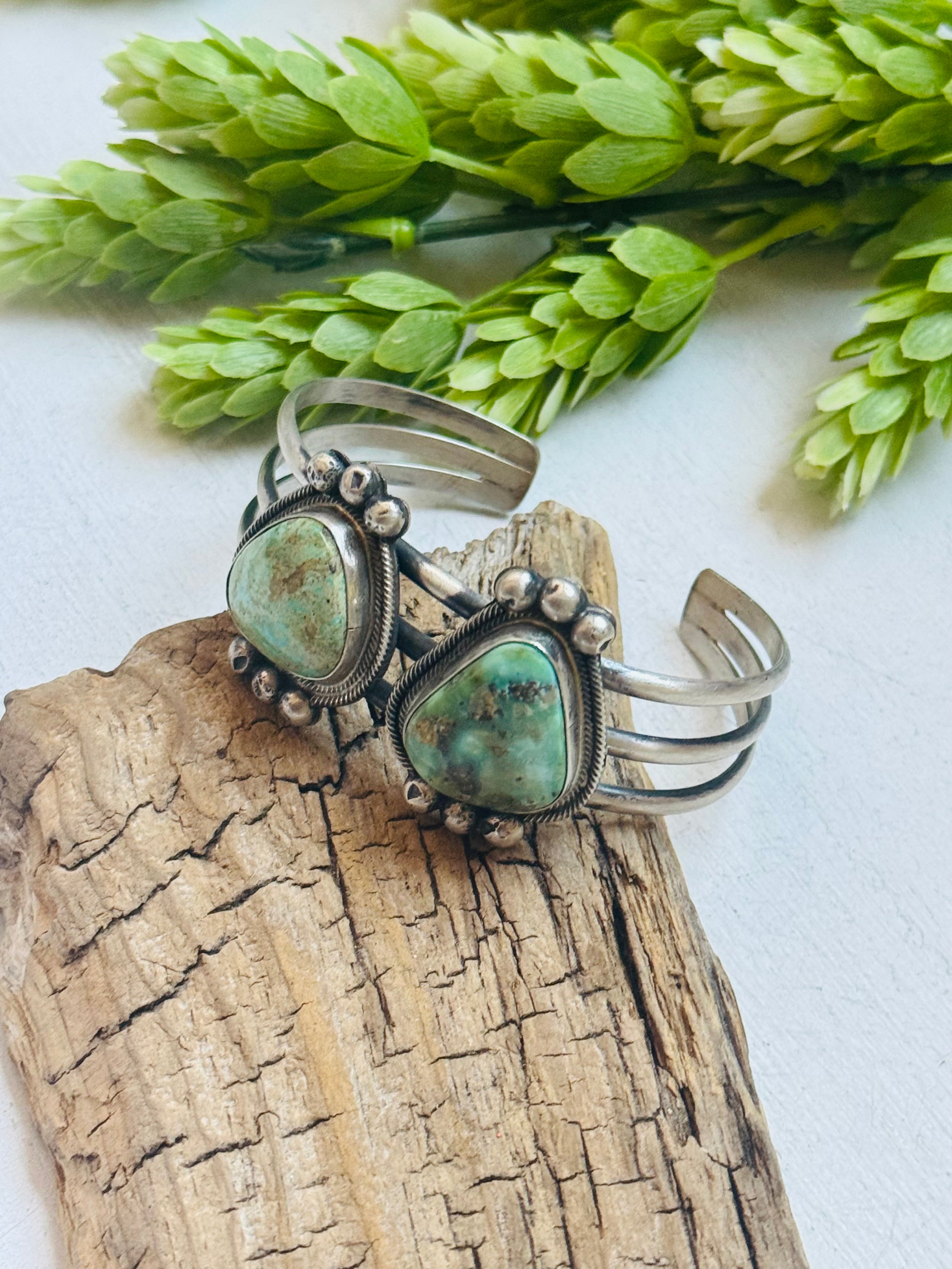 Navajo Made Sonoran Gold Turquoise & Sterling Silver Cuff Bracelet