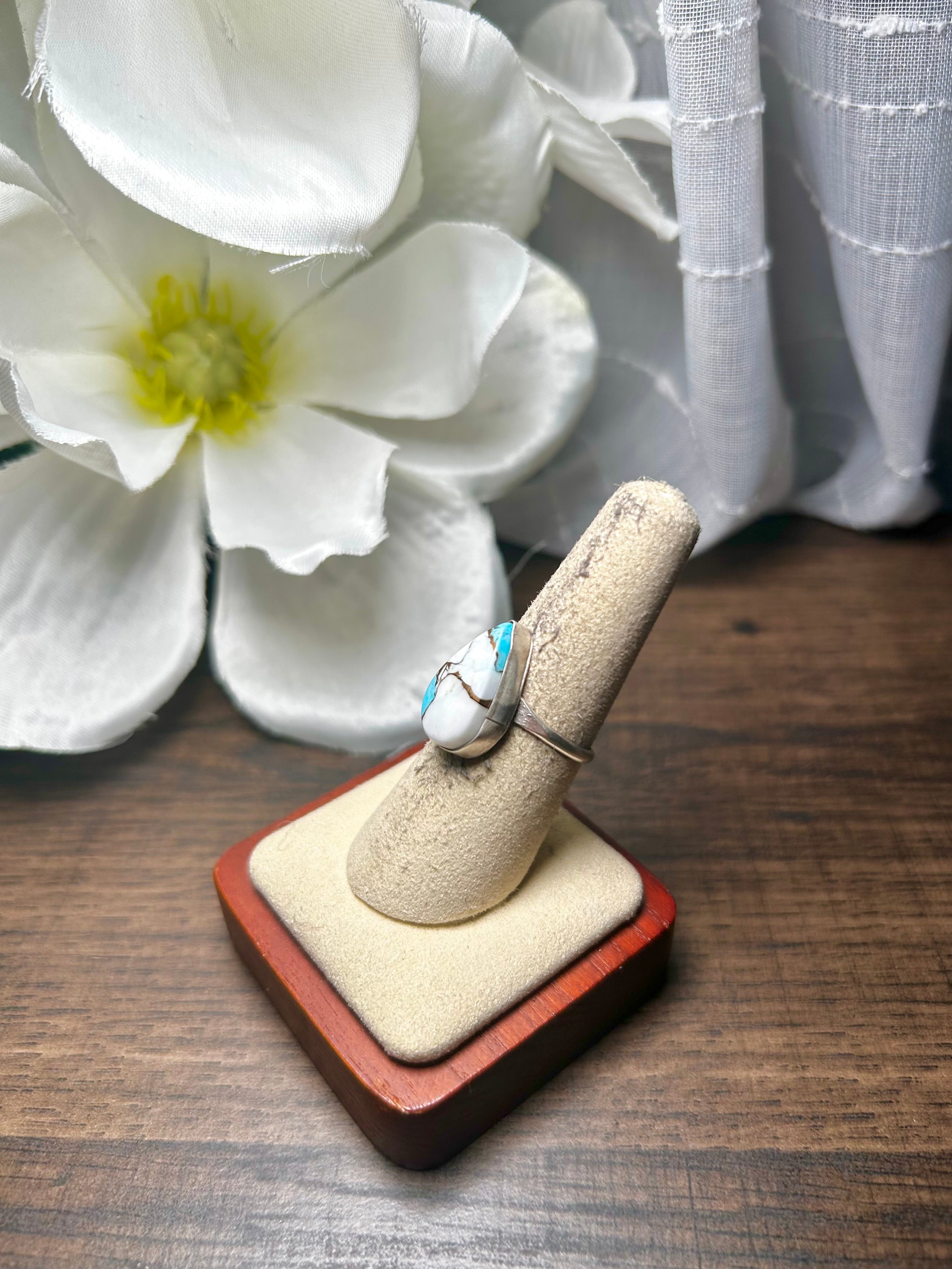 Navajo Made Cotton Candy Dahlia & Sterling Silver Ring Size 7.25