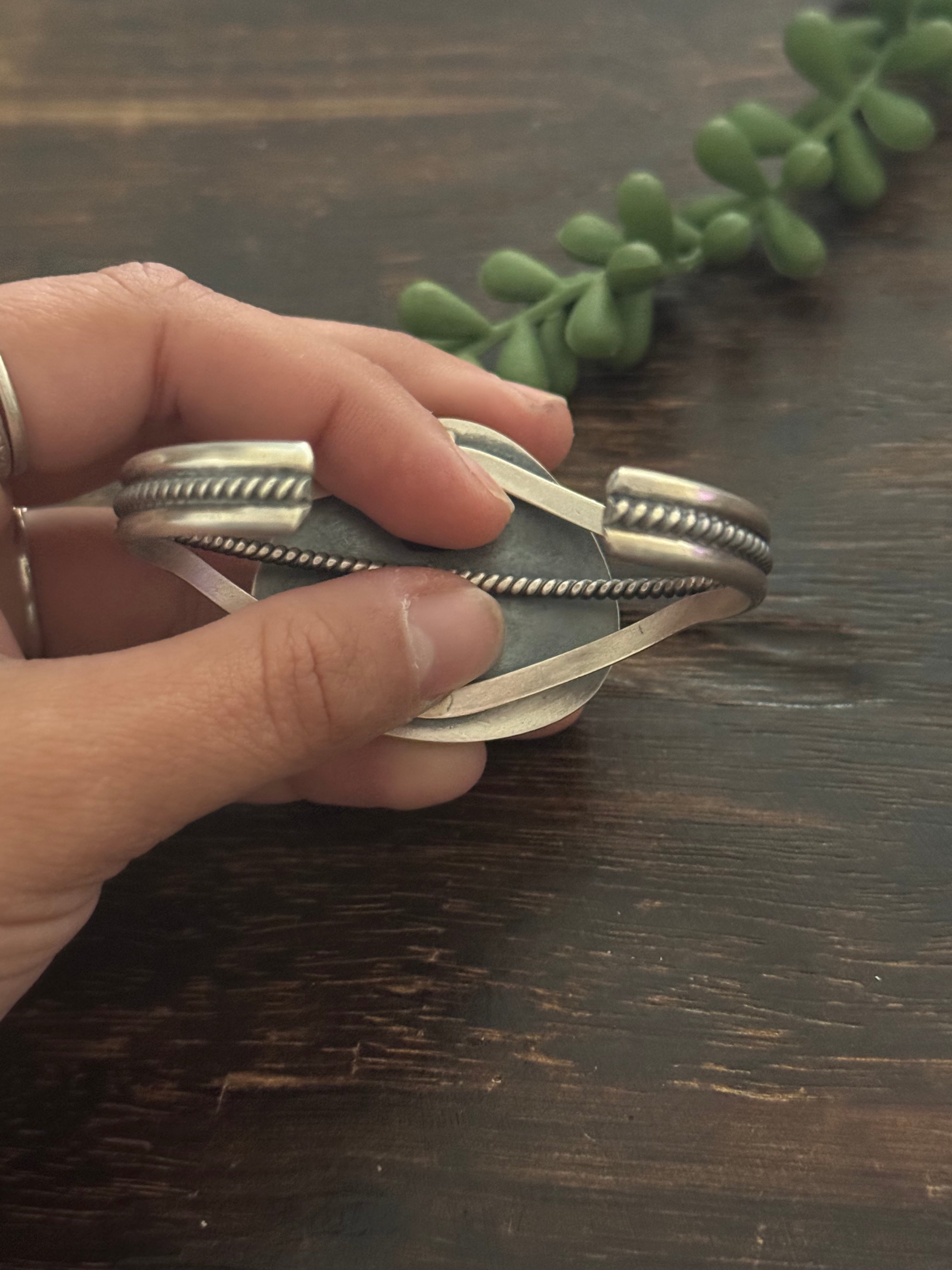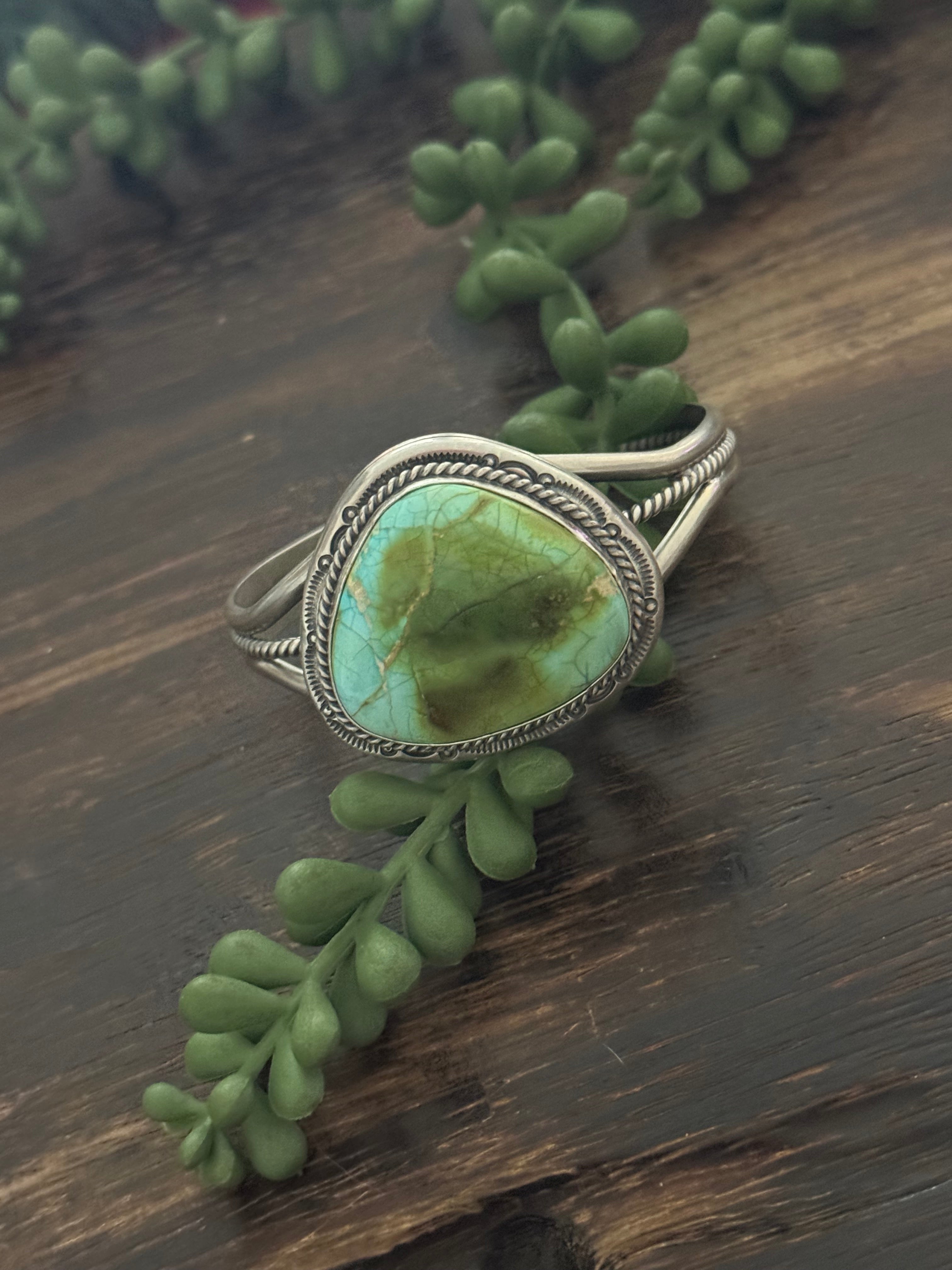 Navajo Made Sonoran Mountain Turquoise & Sterling Silver Cuff Bracelet