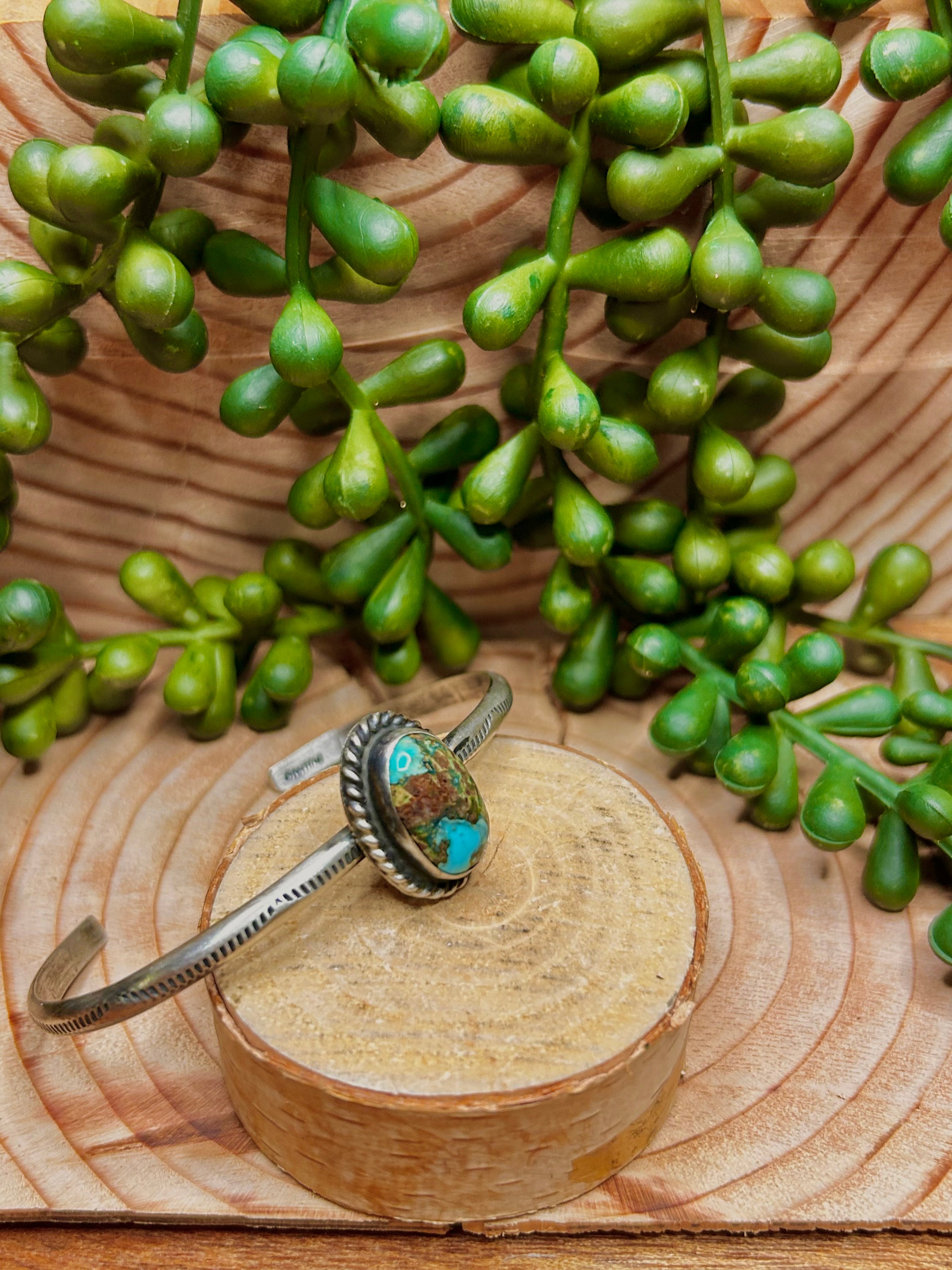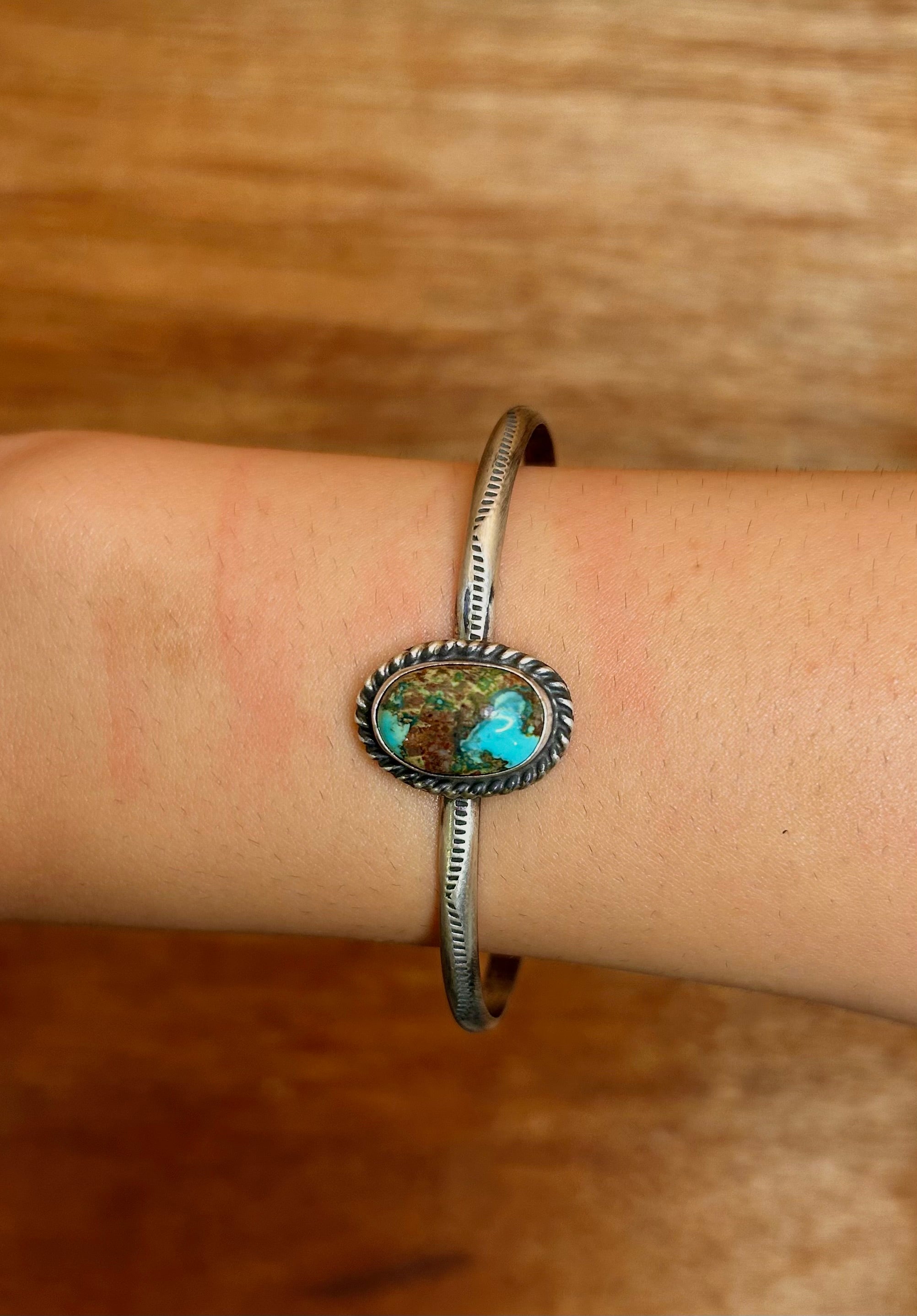 Navajo Made Sonoran Mountain Turquoise & Sterling Silver Cuff Bracelet