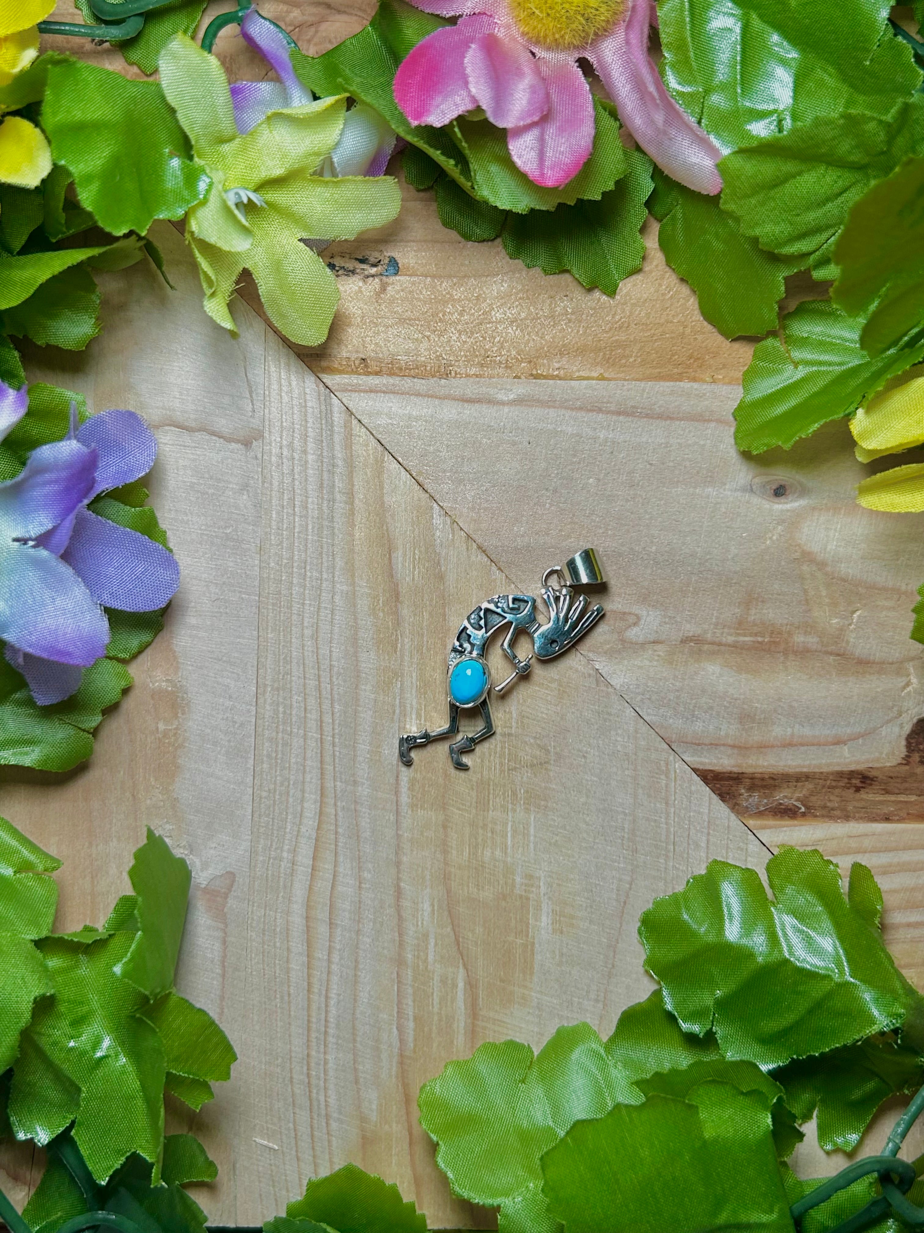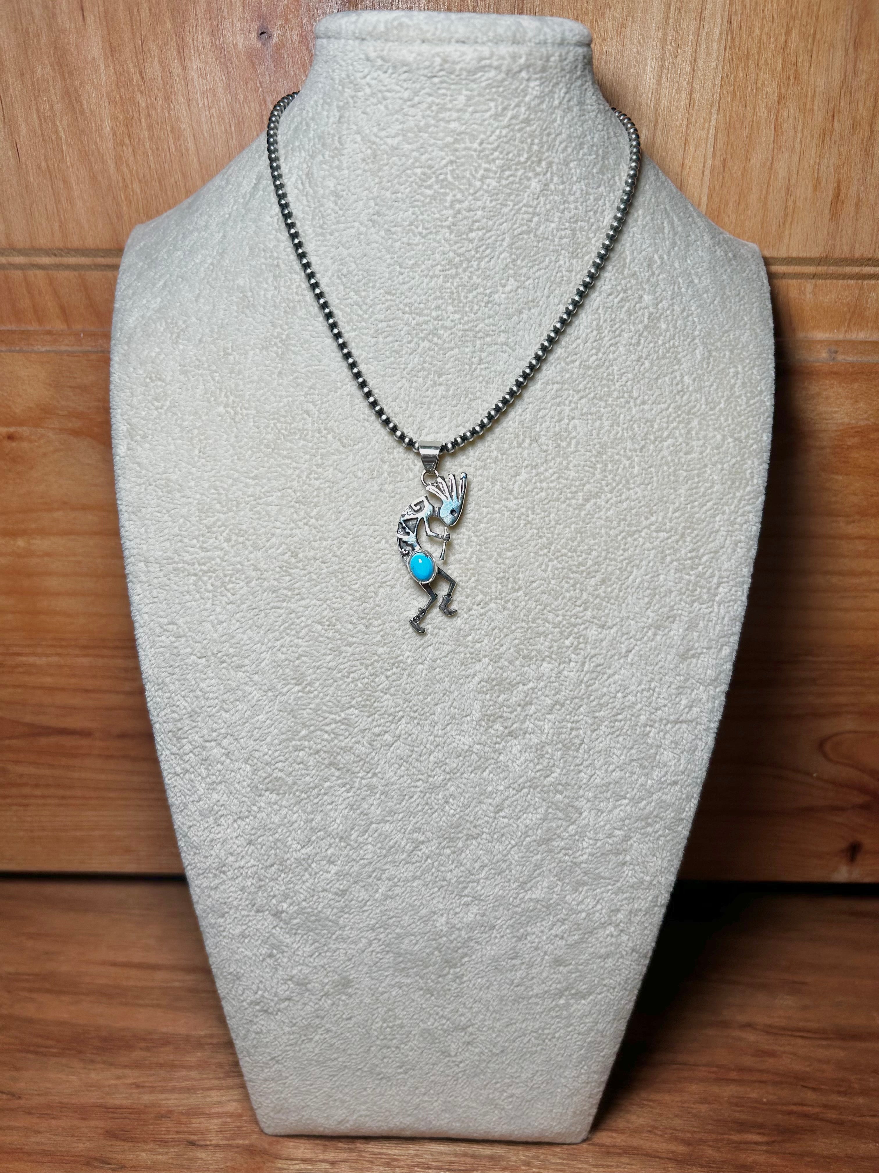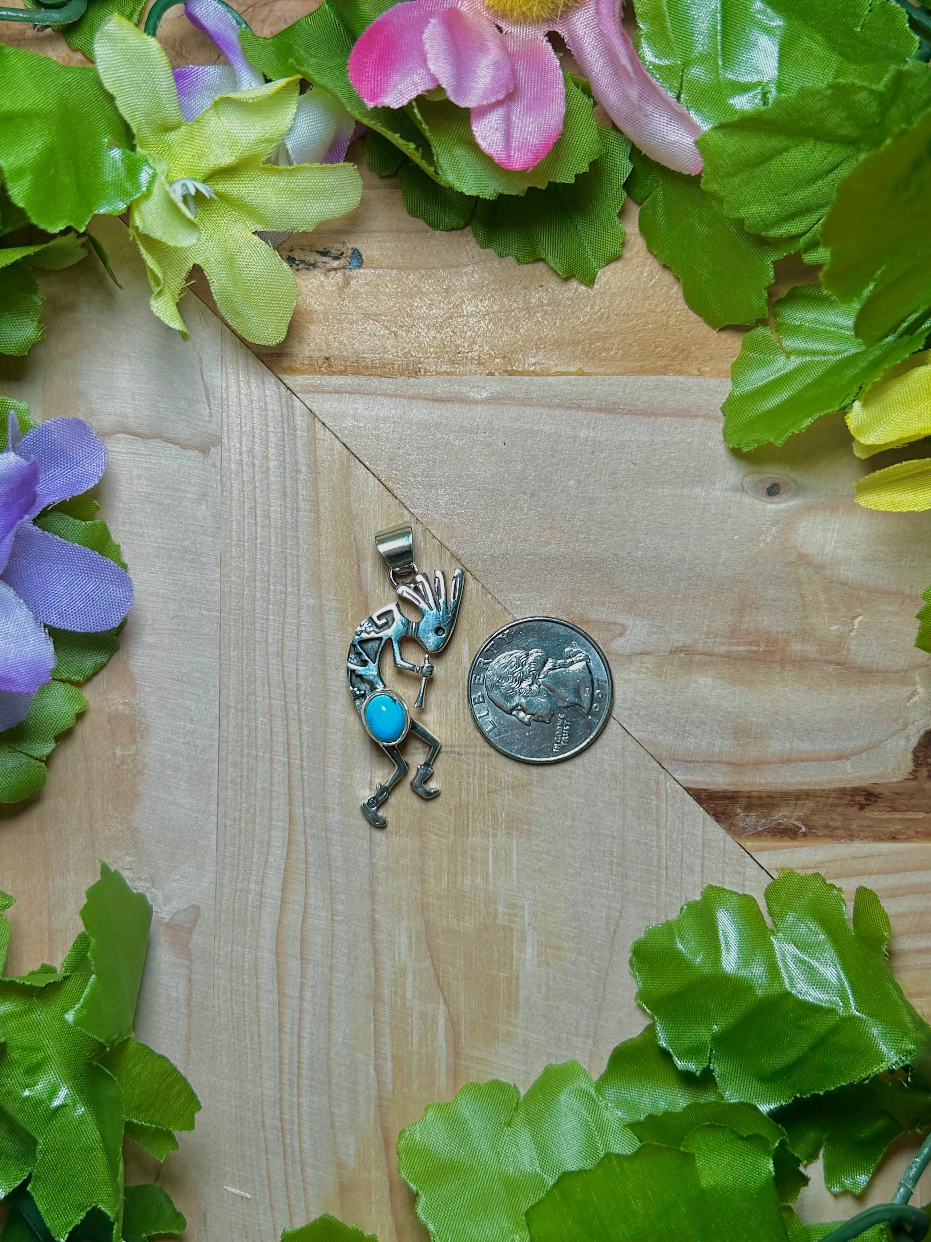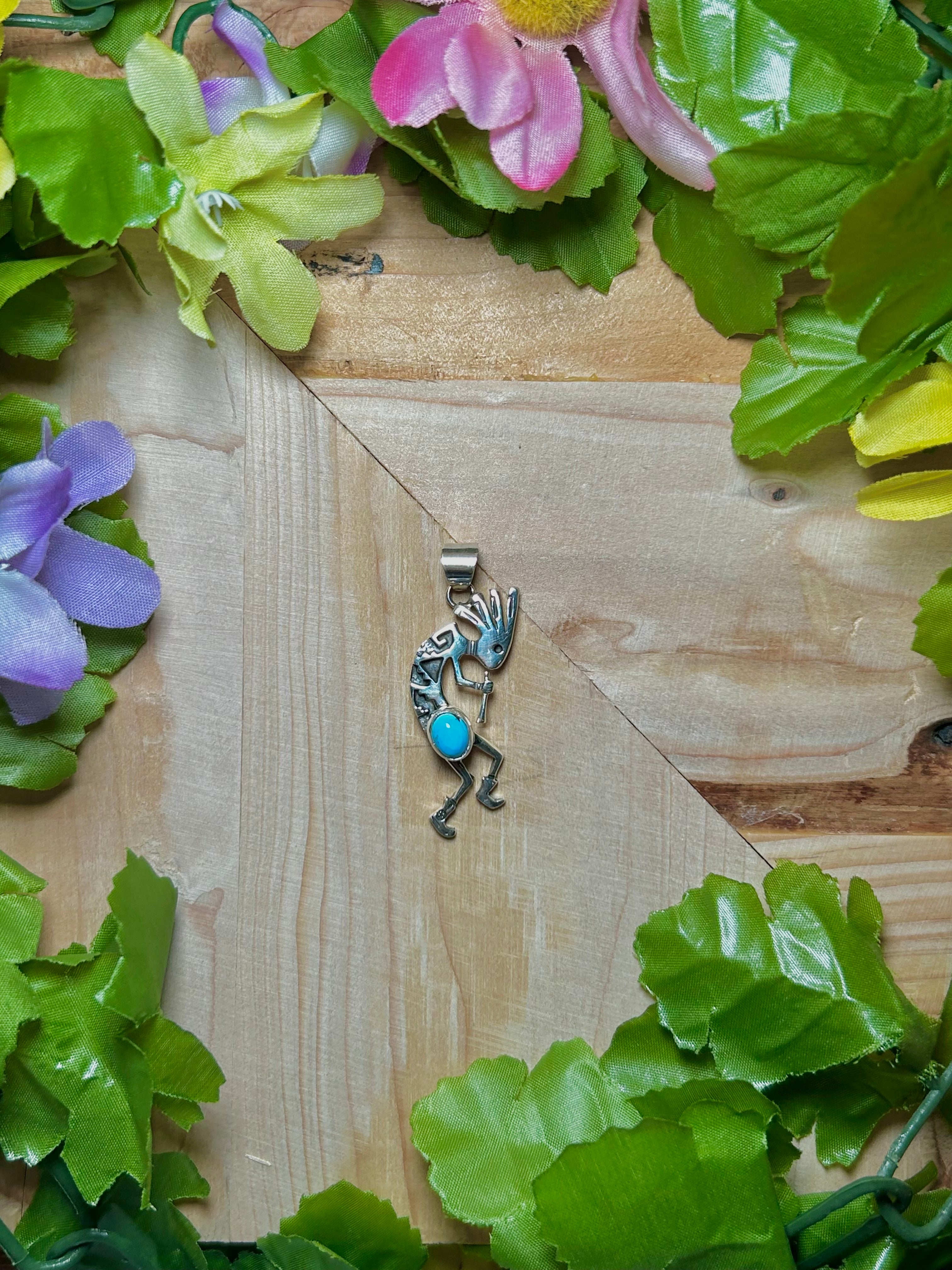 Navajo Made Golden Hill Turquoise & Sterling Silver Pendant. It measures 2 inches long and 1 inch wide. Pendant Only. Signed by the artist and stamped sterling silver.