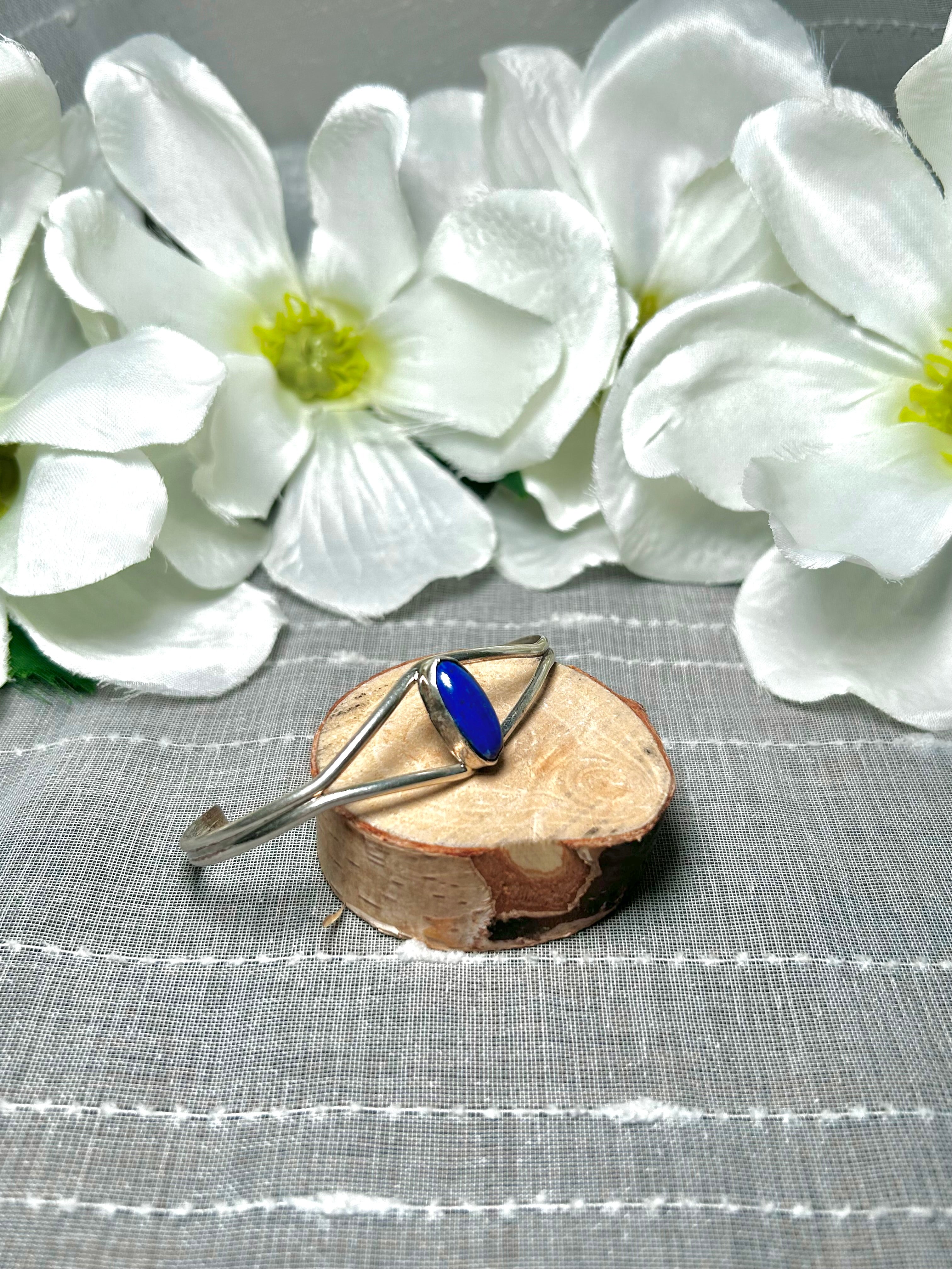 Navajo Made Lapis & Sterling Silver Cuff Bracelet