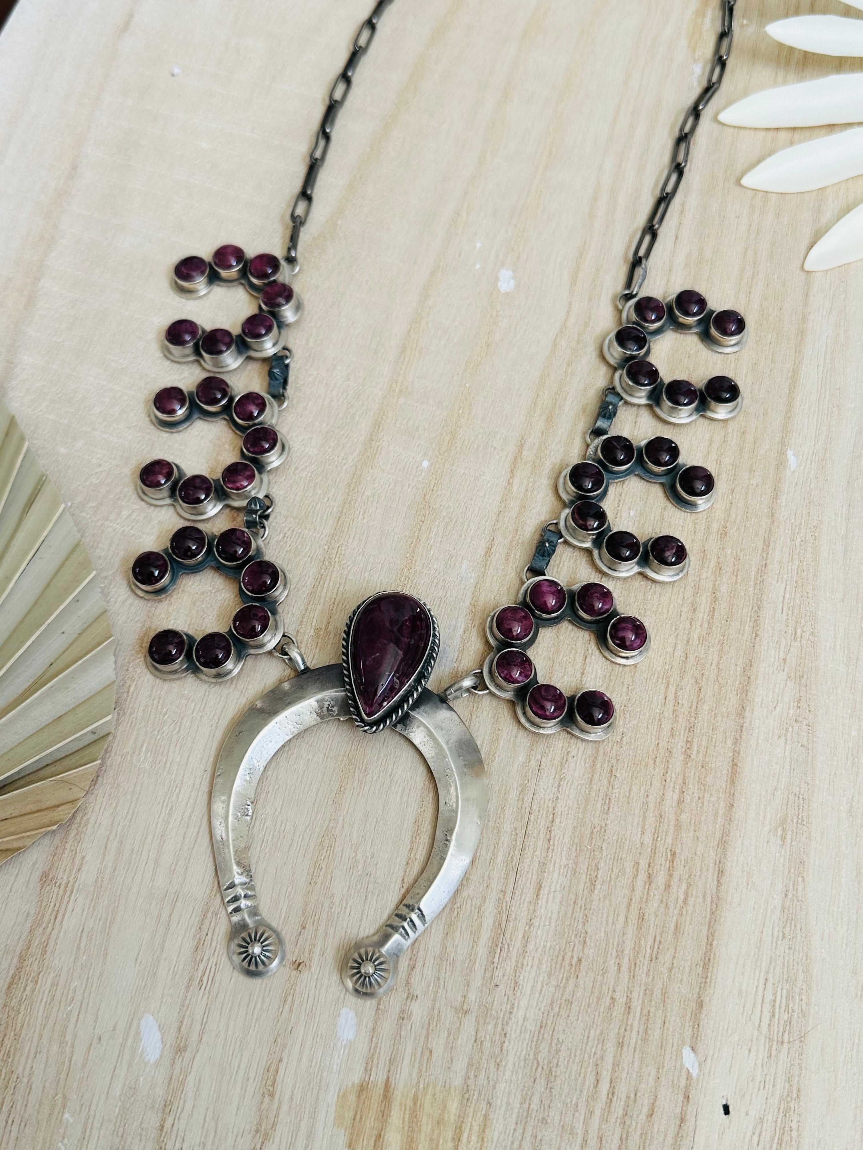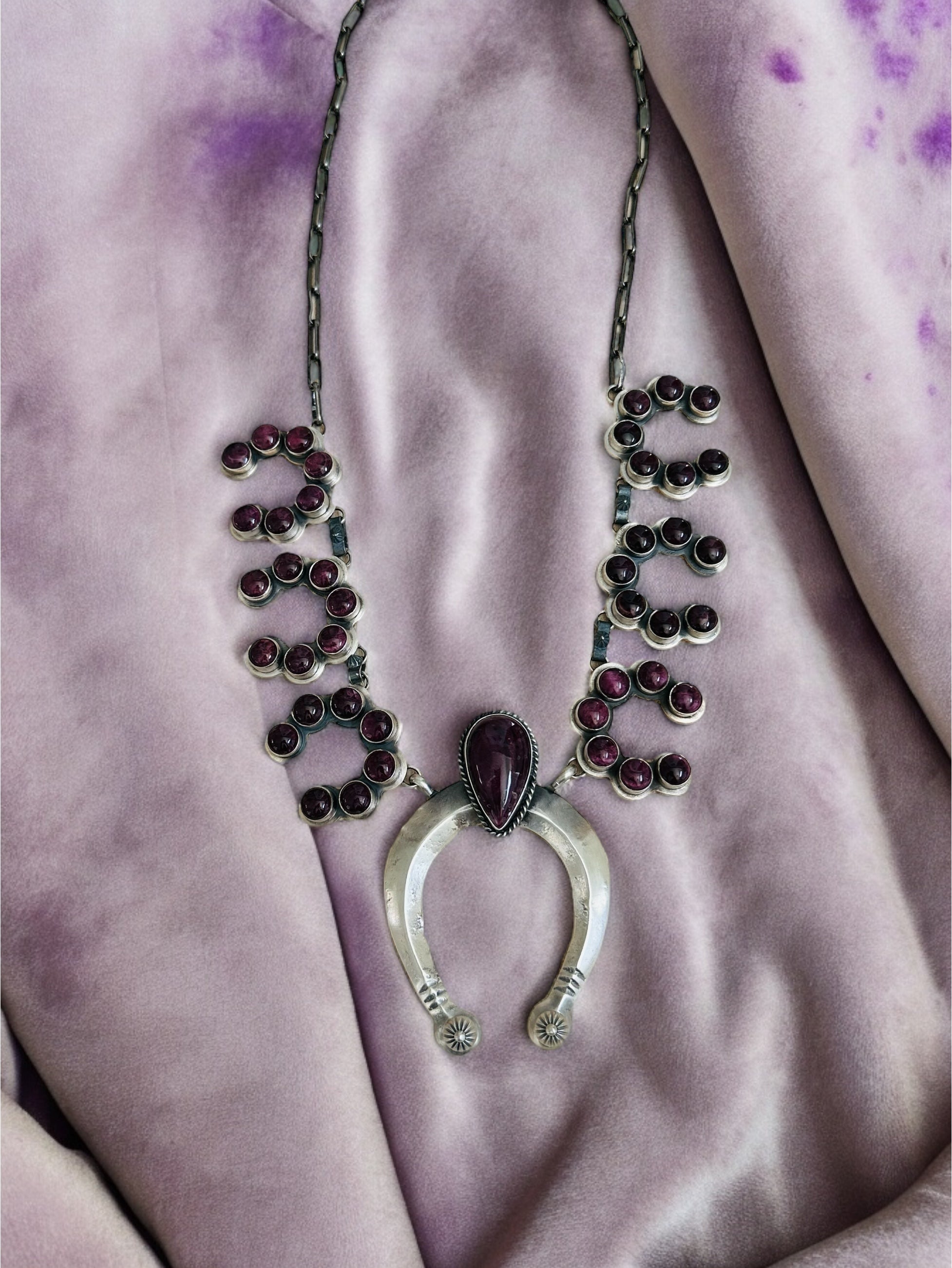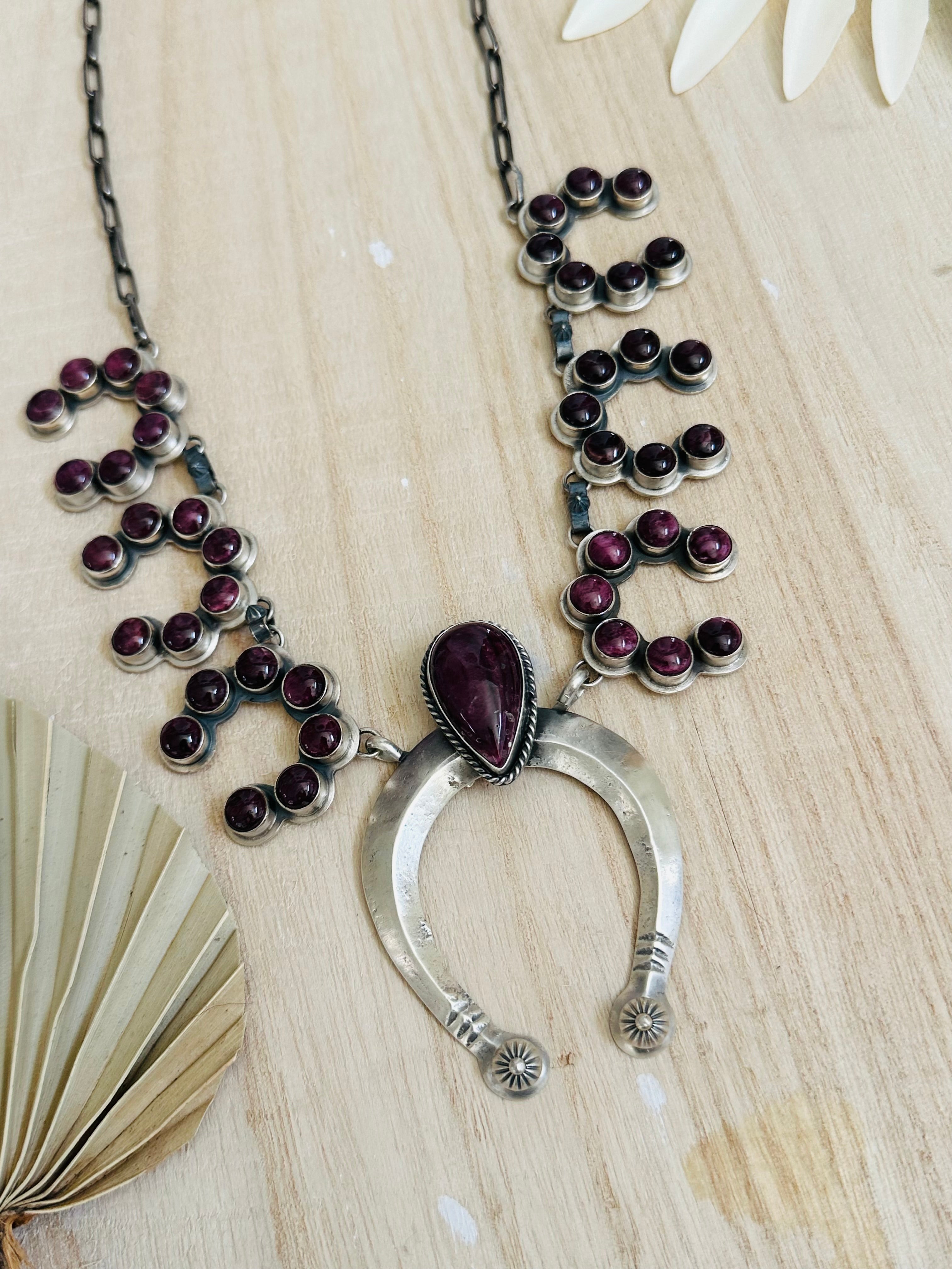 Navajo Made Purple Spiny Oyster & Sterling Silver Naja Necklace