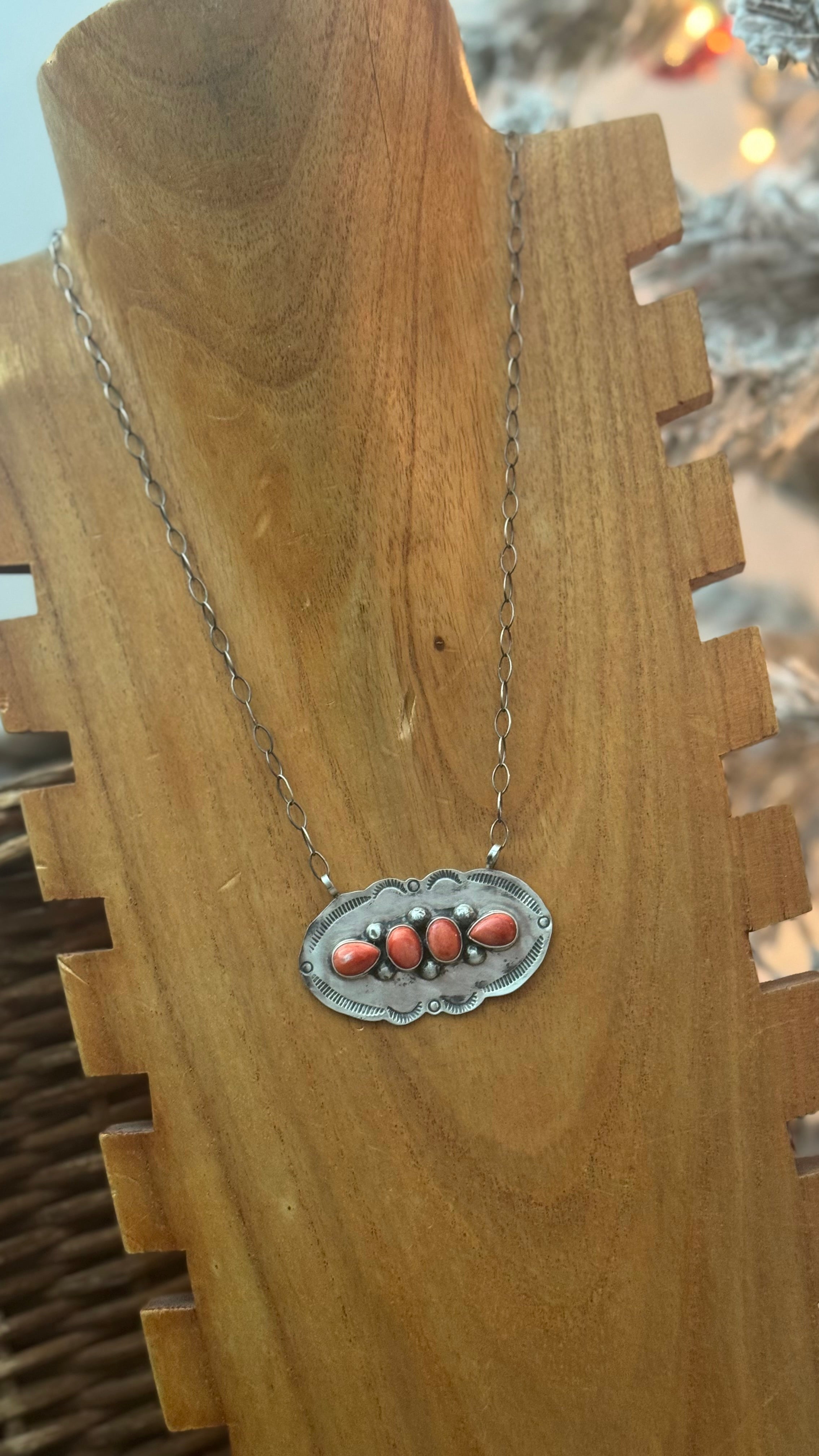 Navajo Made Red Spiny Oyster & Sterling Silver Necklace