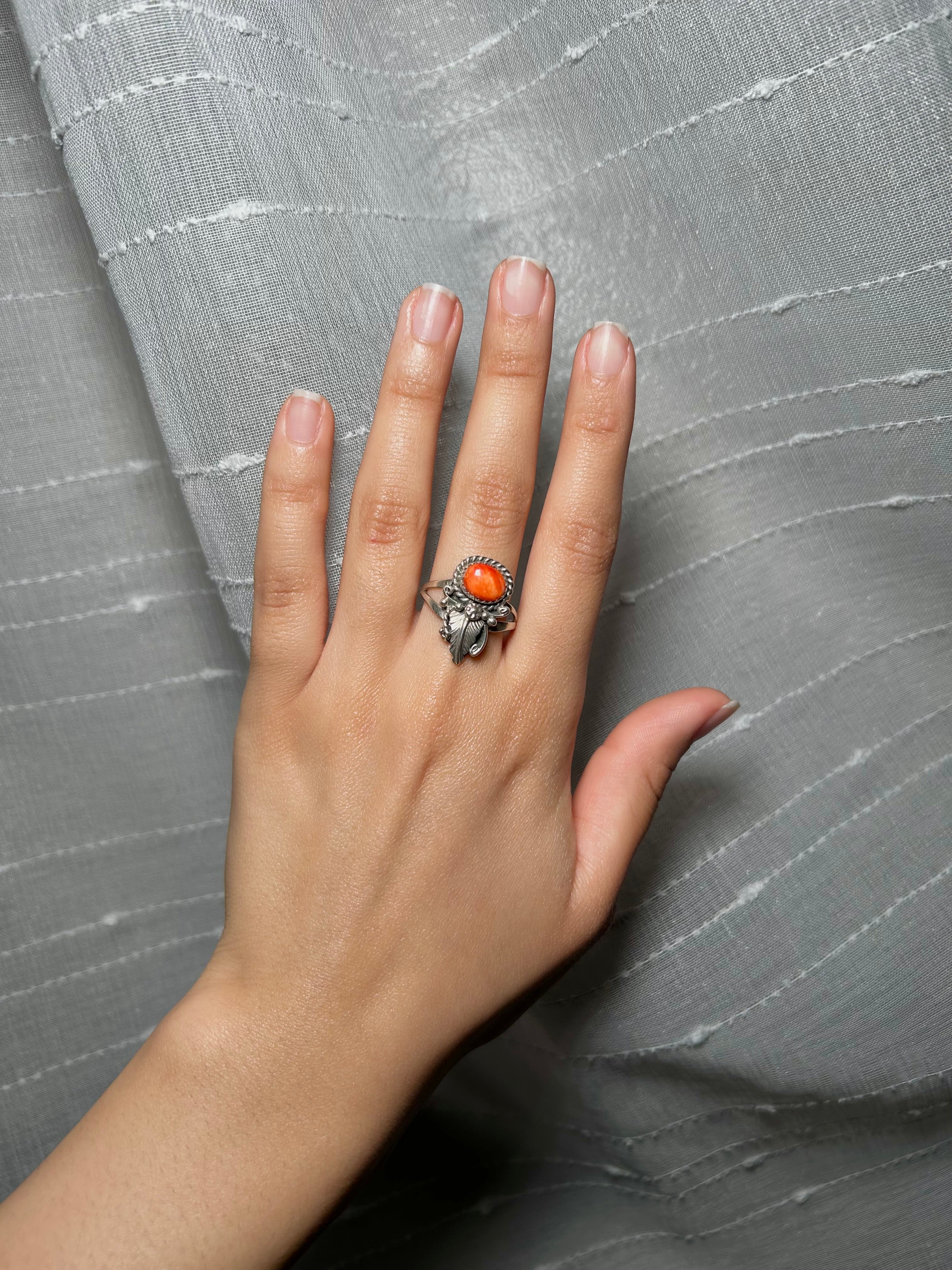 Navajo Made Spiny Oyster & Sterling Sliver Ring Size 8.5