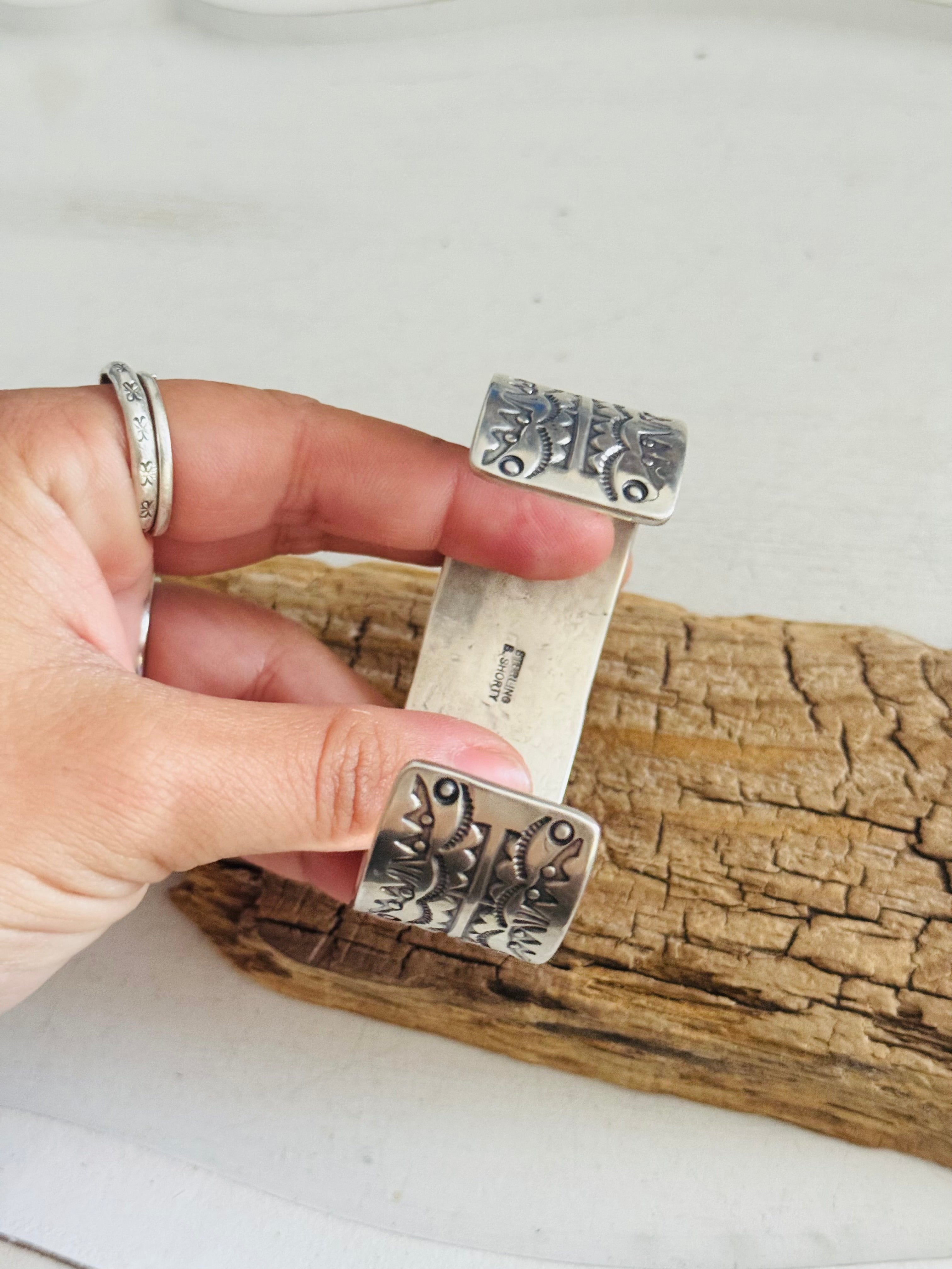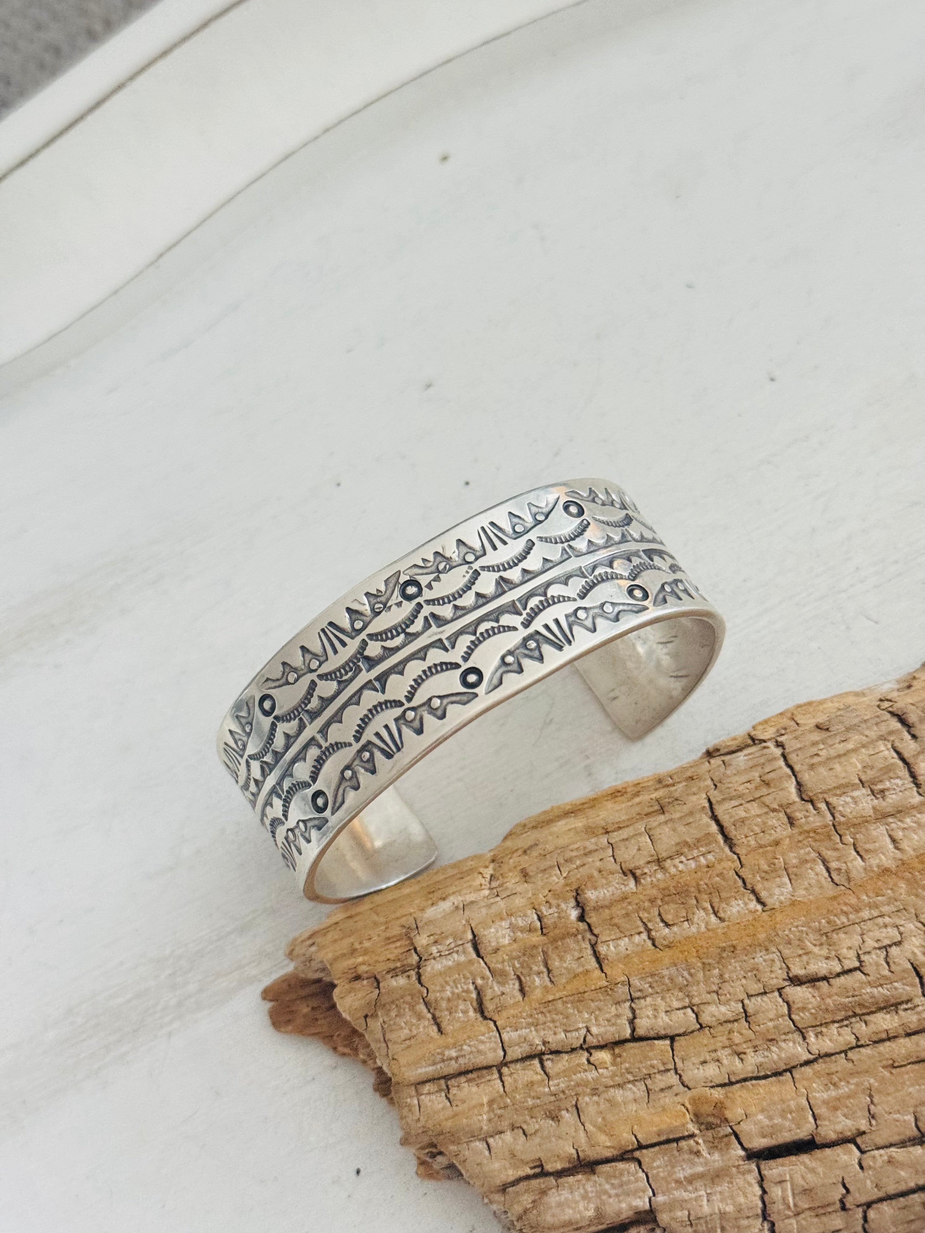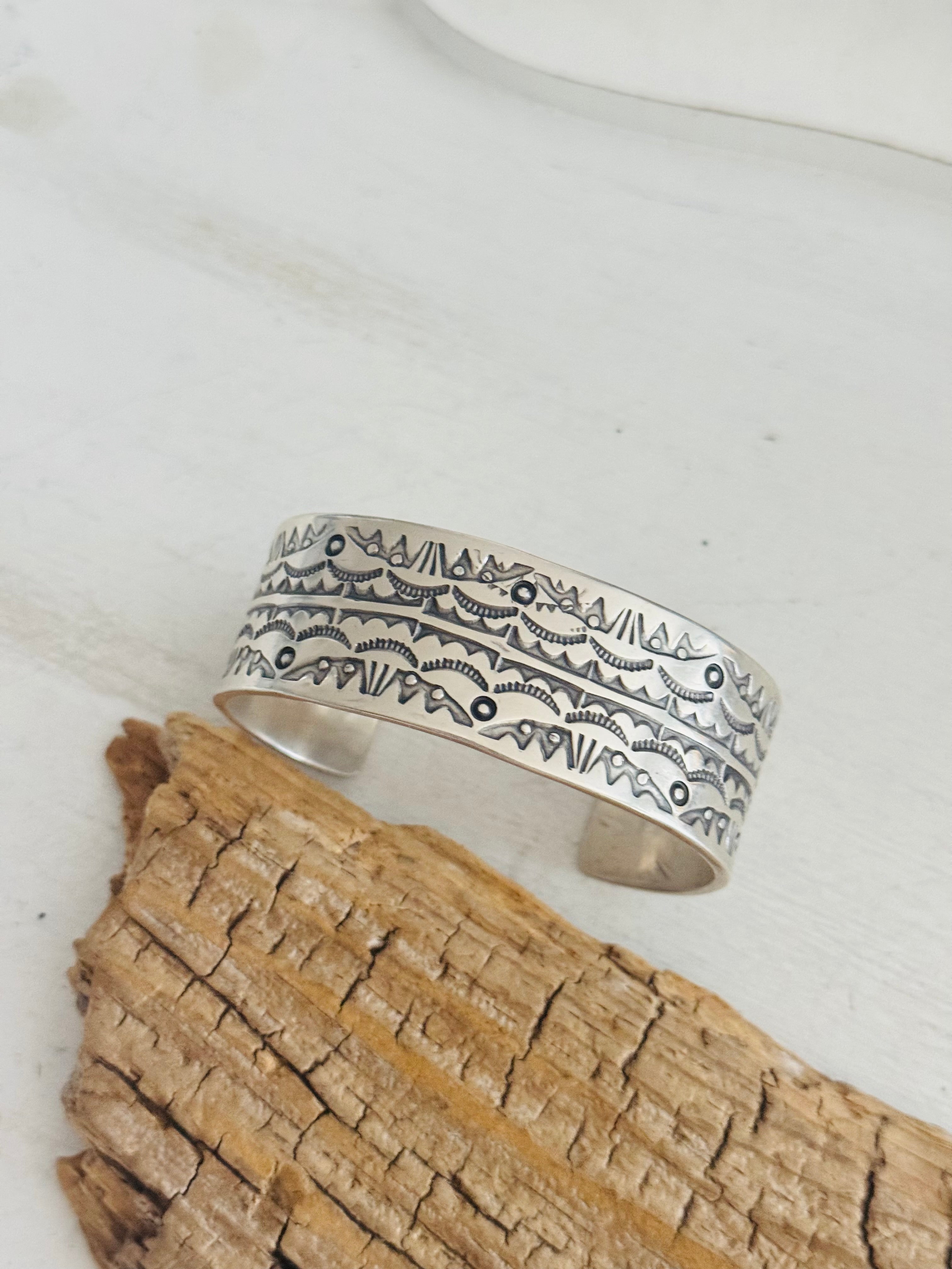 Navajo Made Stamped Sterling Silver Cuff Bracelet