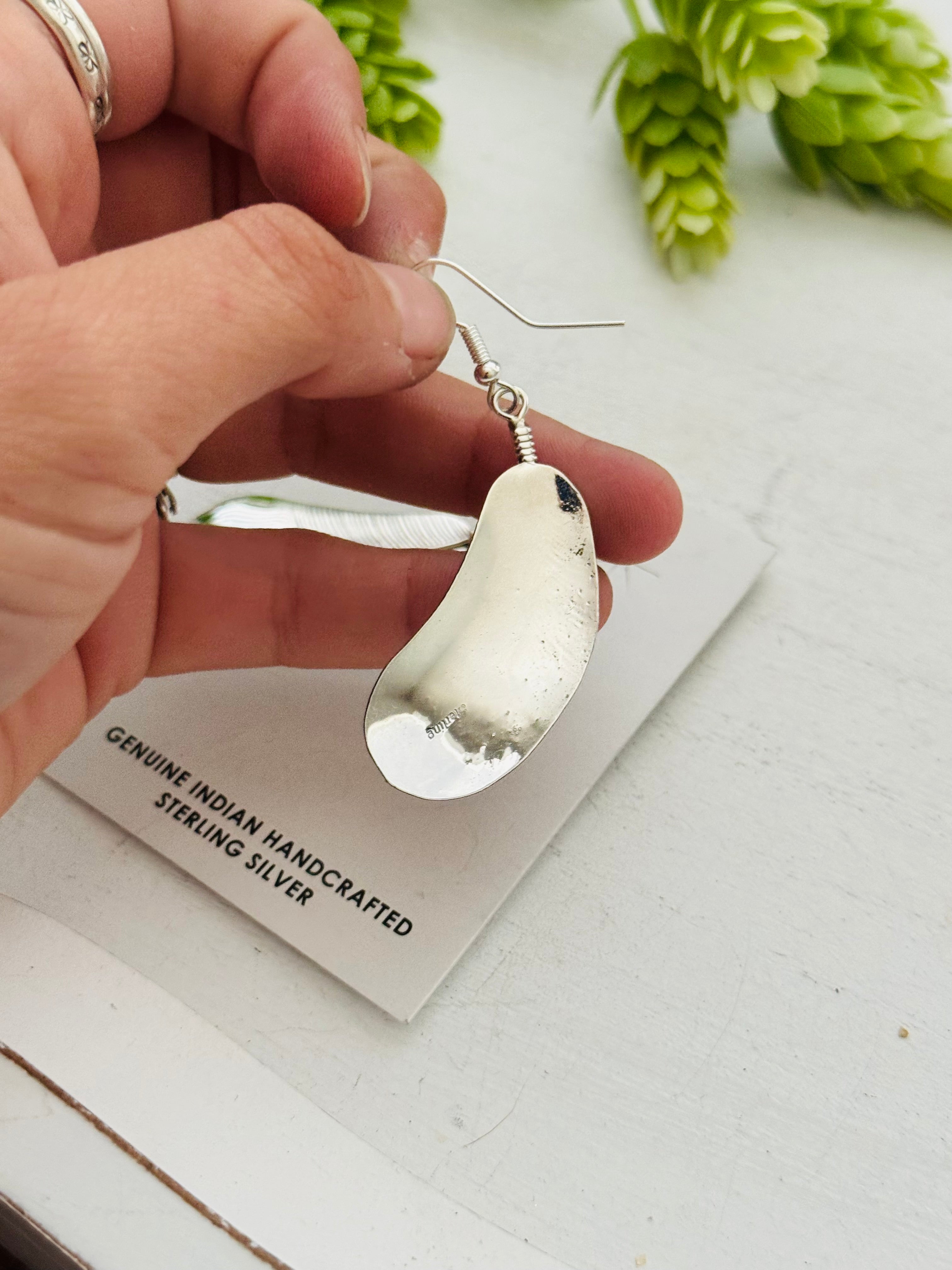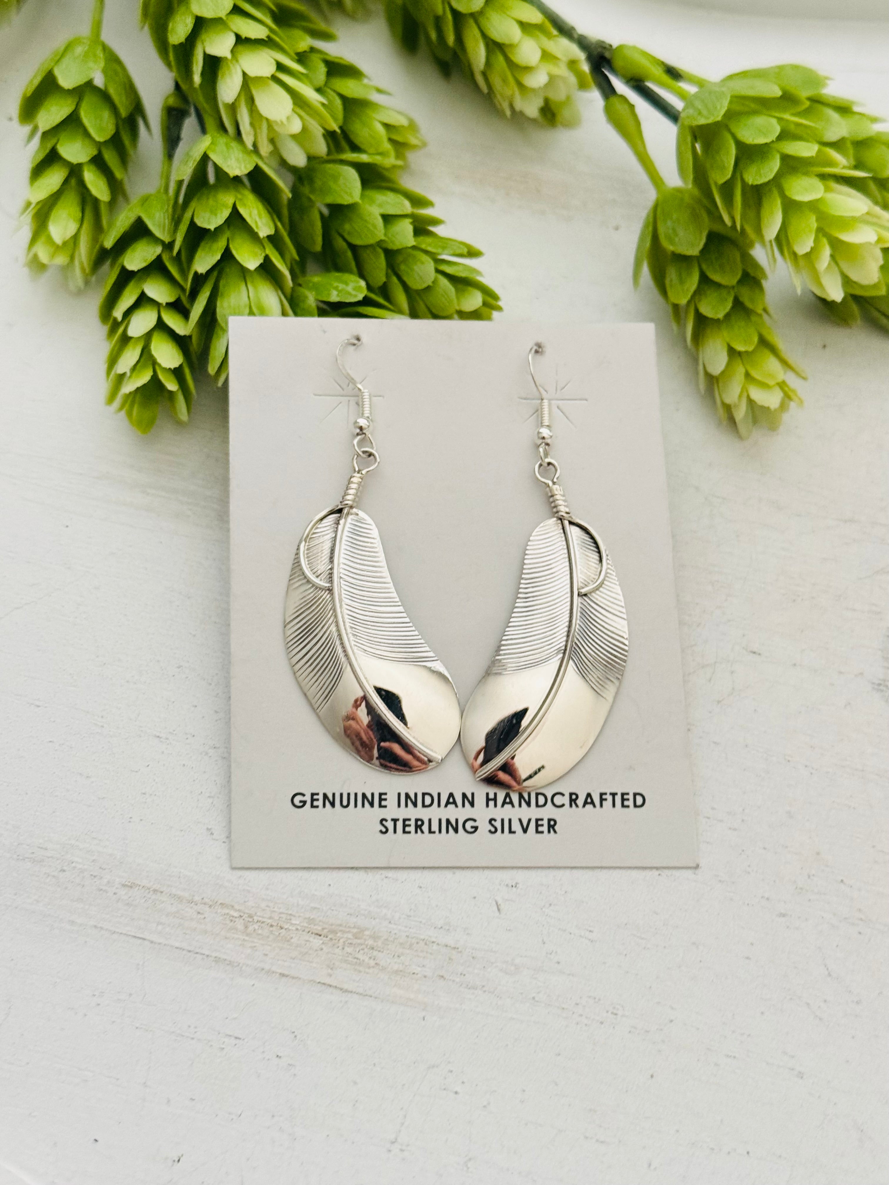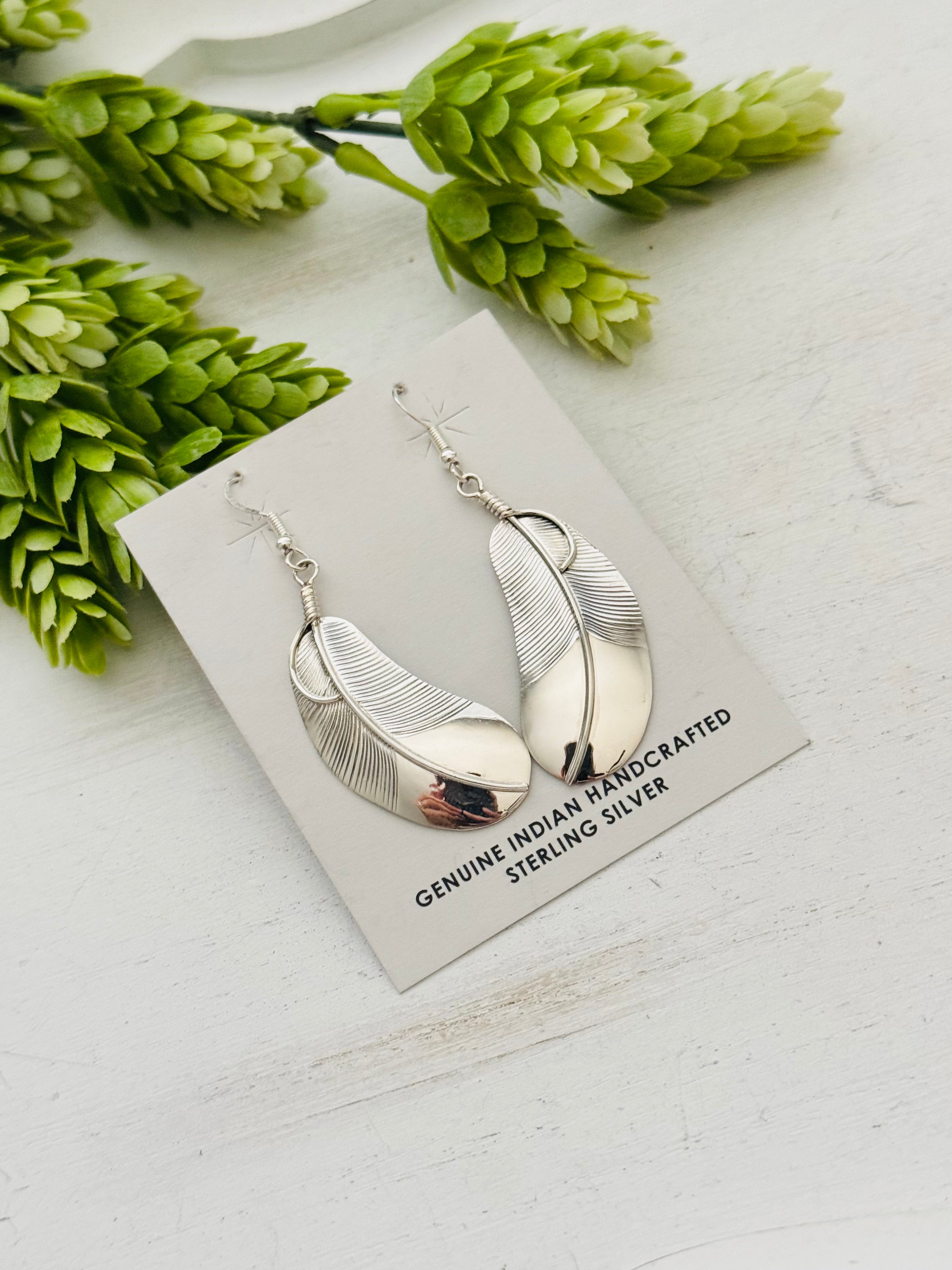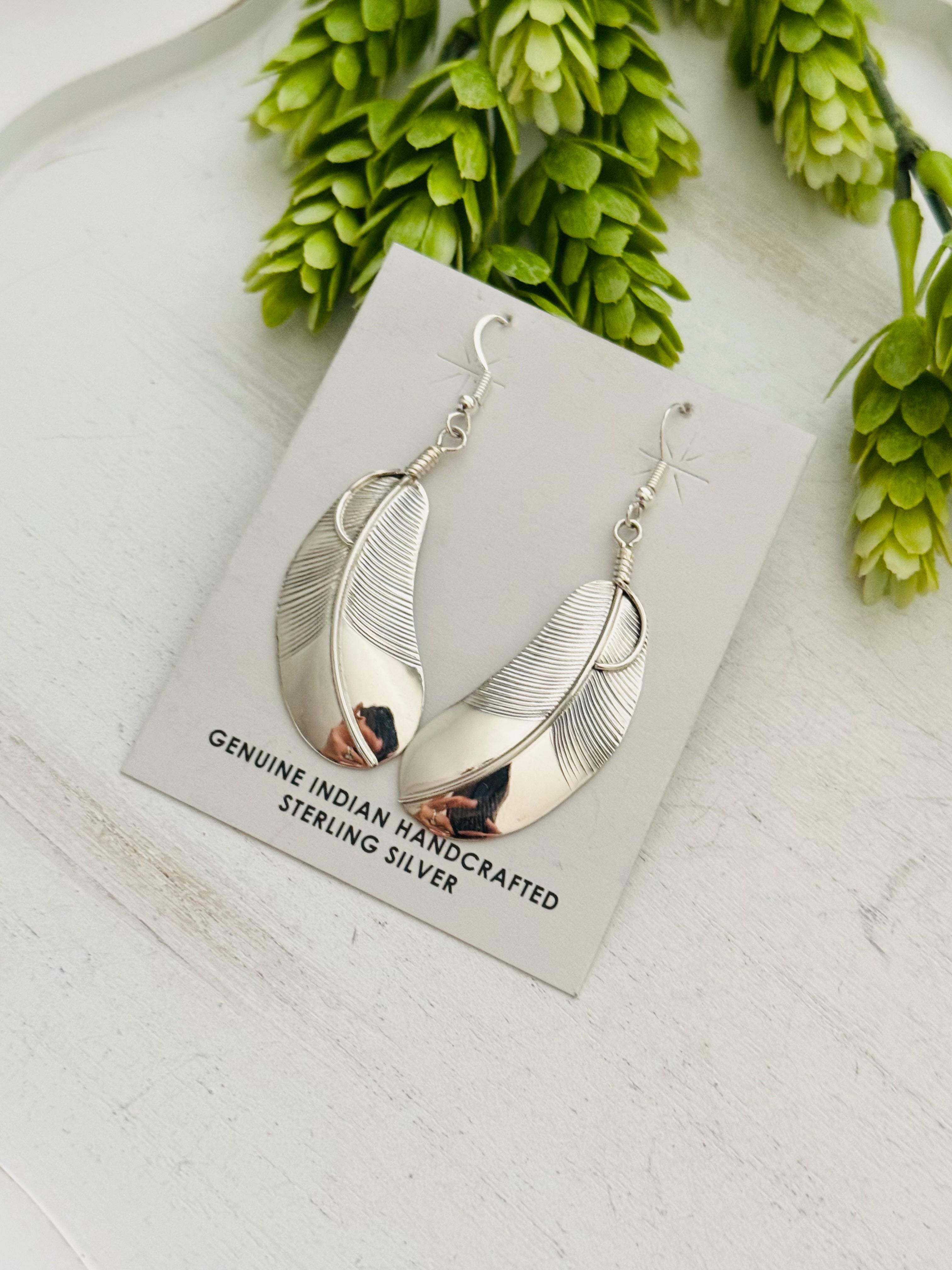 Navajo Made Sterling Silver Feather Dangle Earrings