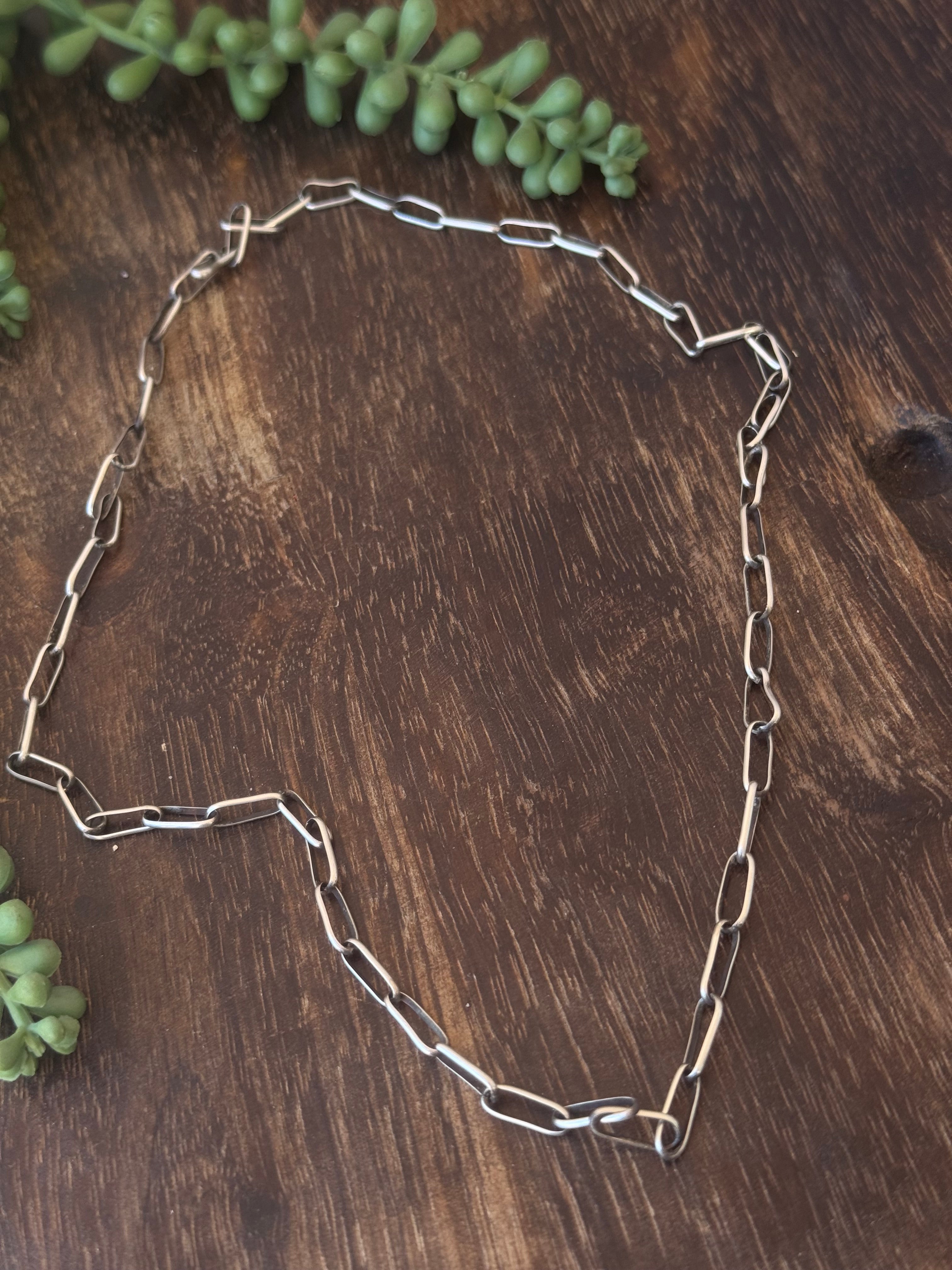 Navajo Made Sterling Silver Paperclip Link Chain Necklace